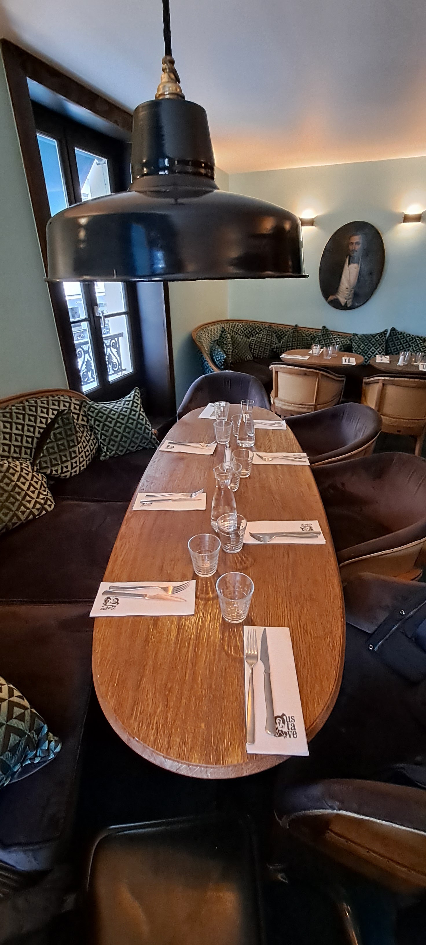 Lors de mon dîner au restaurant Gustave, sur leur agréable terrasse située sur une petite place charmante, j'ai remarqué que les tables étaient un peu serrées. 😅Cependant, cela n'a pas entaché mon expérience gastronomique, car le burger végétarien était copieux et délicieux, avec des ingrédients frais, et le service était attentionné. Je le recommande vivement pour un dîner agréable.👍😃