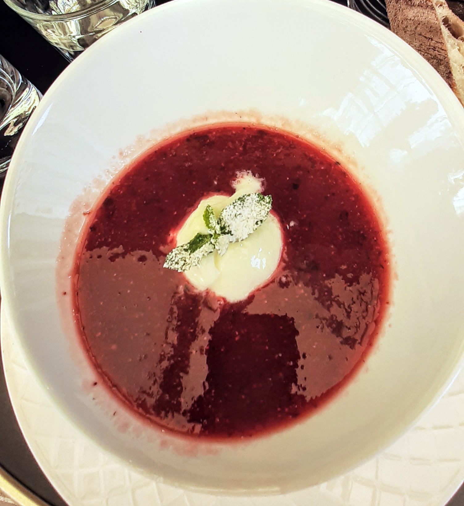 Une mousseline de fromage et ses croutons, servis avec le verre commandé pour l'Apéro : on adore la touche d 'originalité