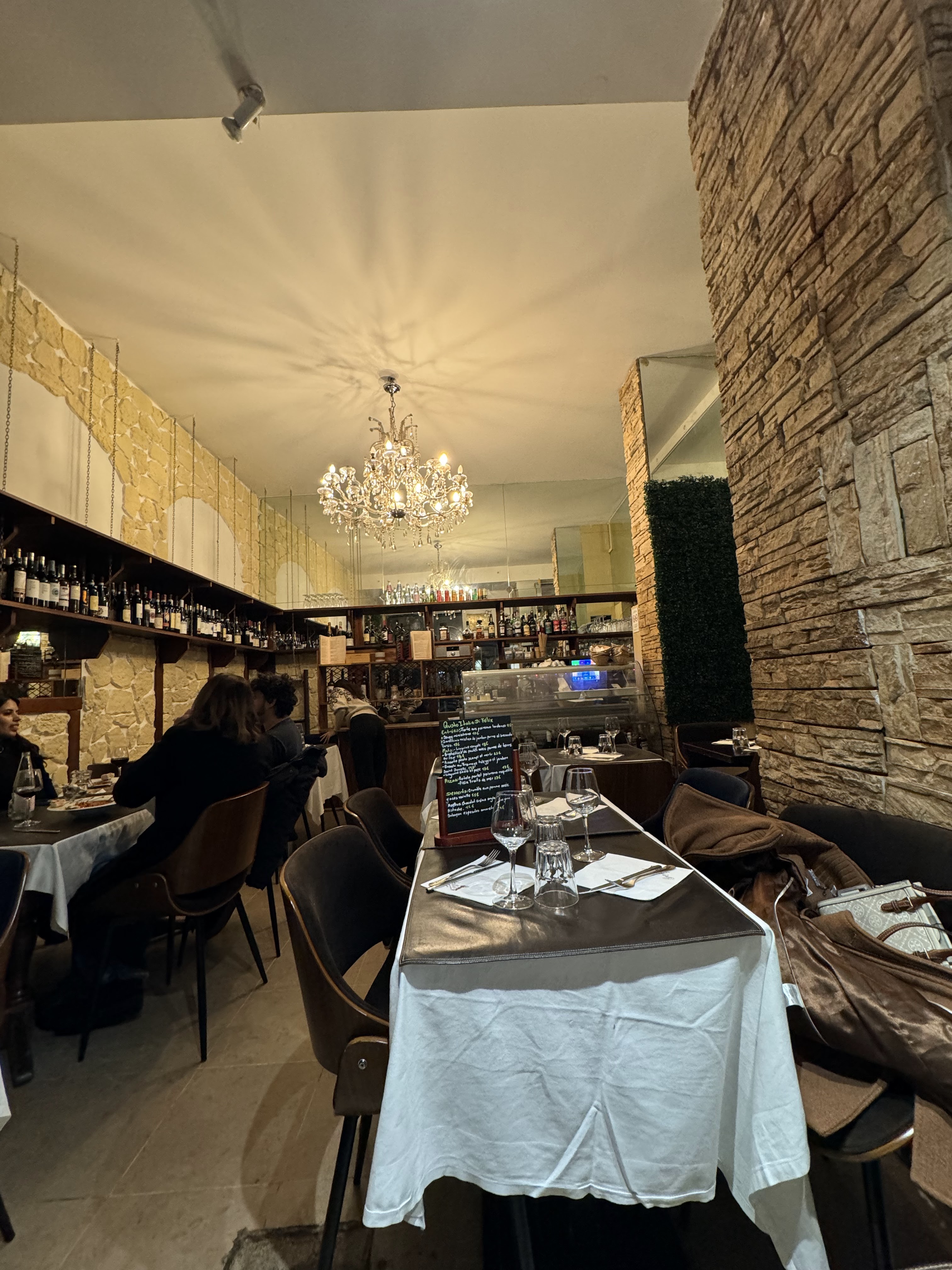 Pizza correctes mais vins bien trop chers ! Le côté chaleureux m a paru surjoué de la part des serveurs qui répètent à l infini les 3 mêmes mots italiens... Les toilettes ne sont pas dans le restaurant et sont situées dans un réduit de l'immeuble voisin.