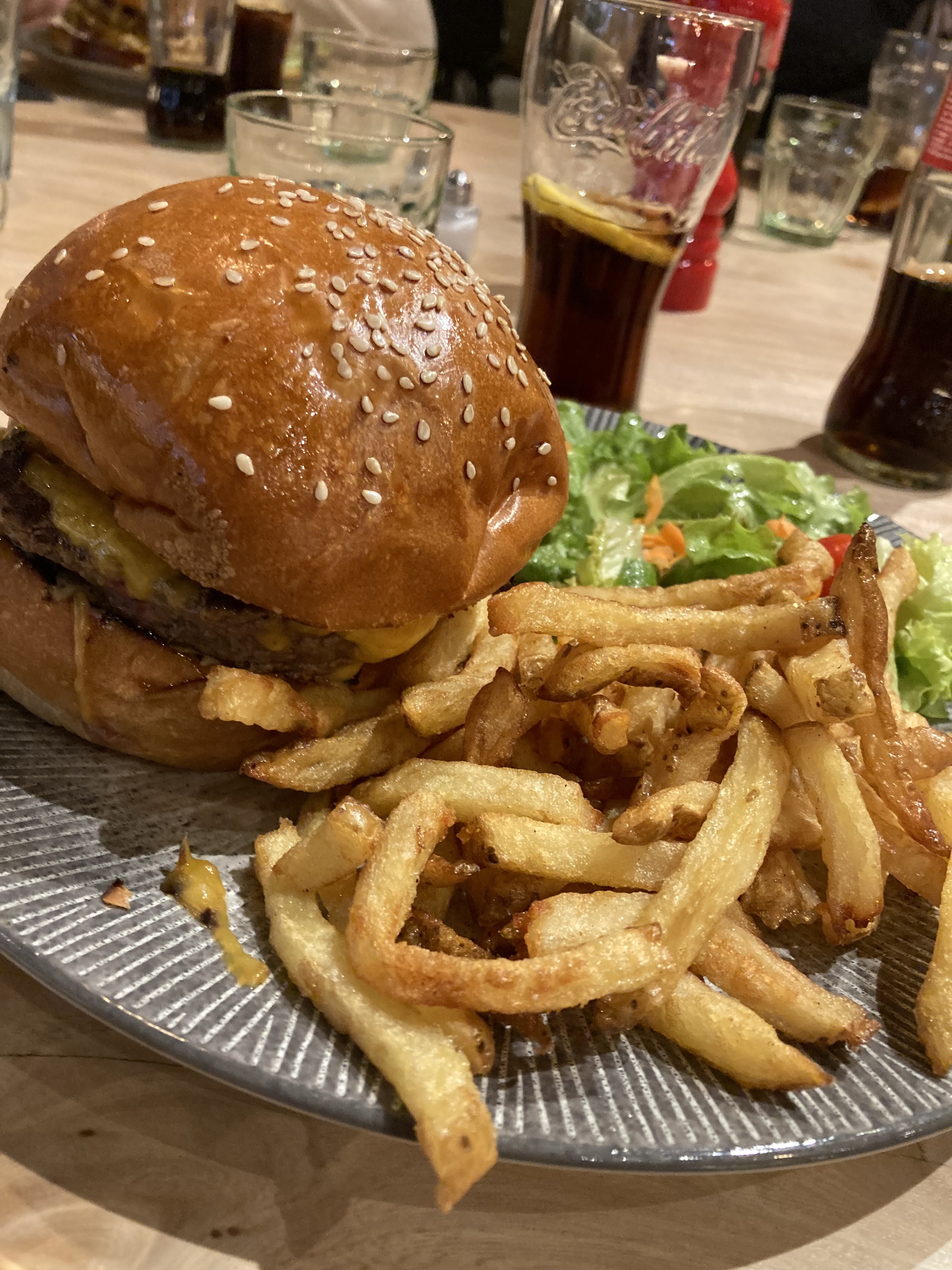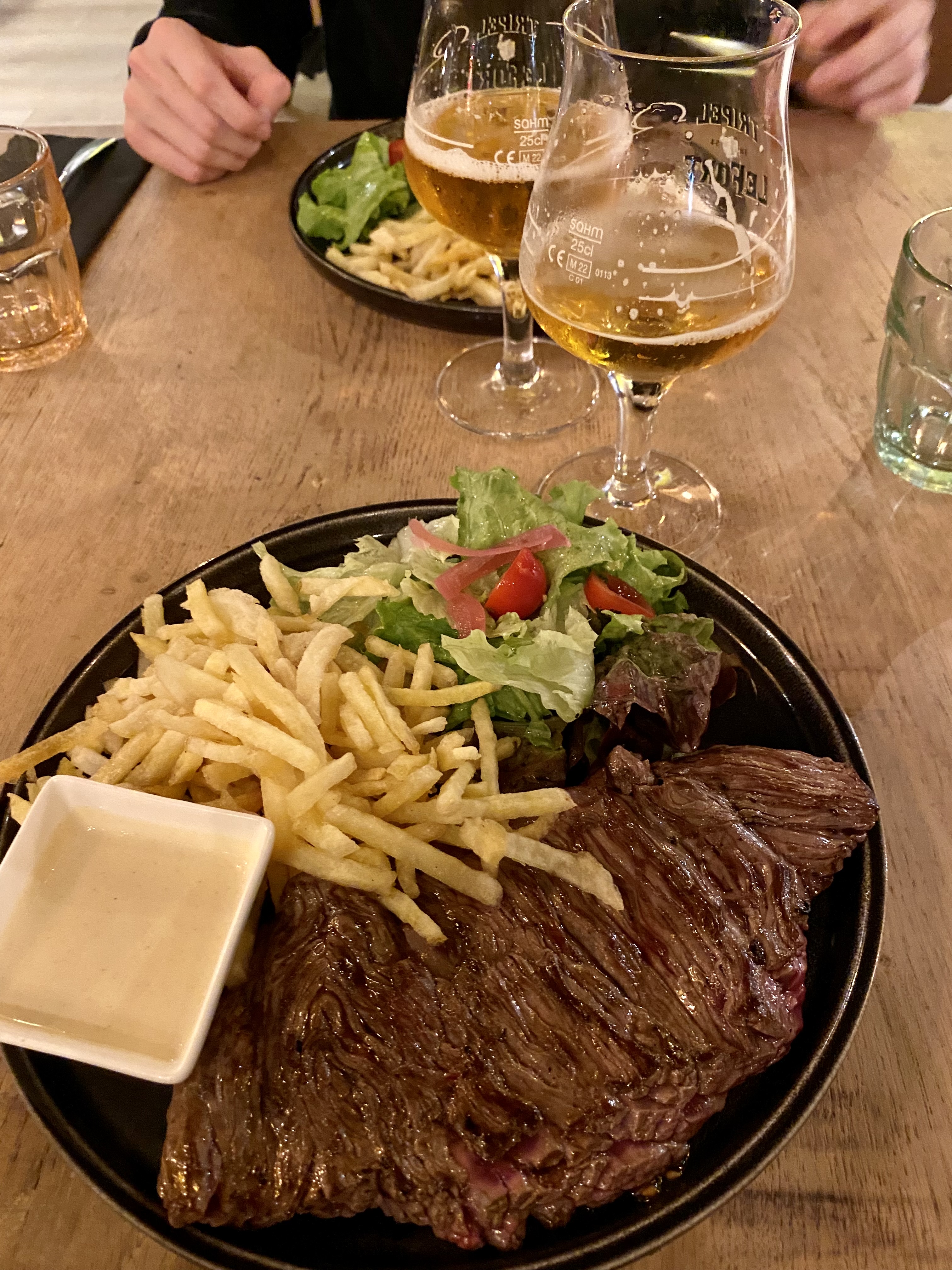 Nous nous sommes régalés de l'apéritif au dessert ! Les frites sont delicieuses, la cuisson de la viande parfaite, les sauces excellentes, le service agréable