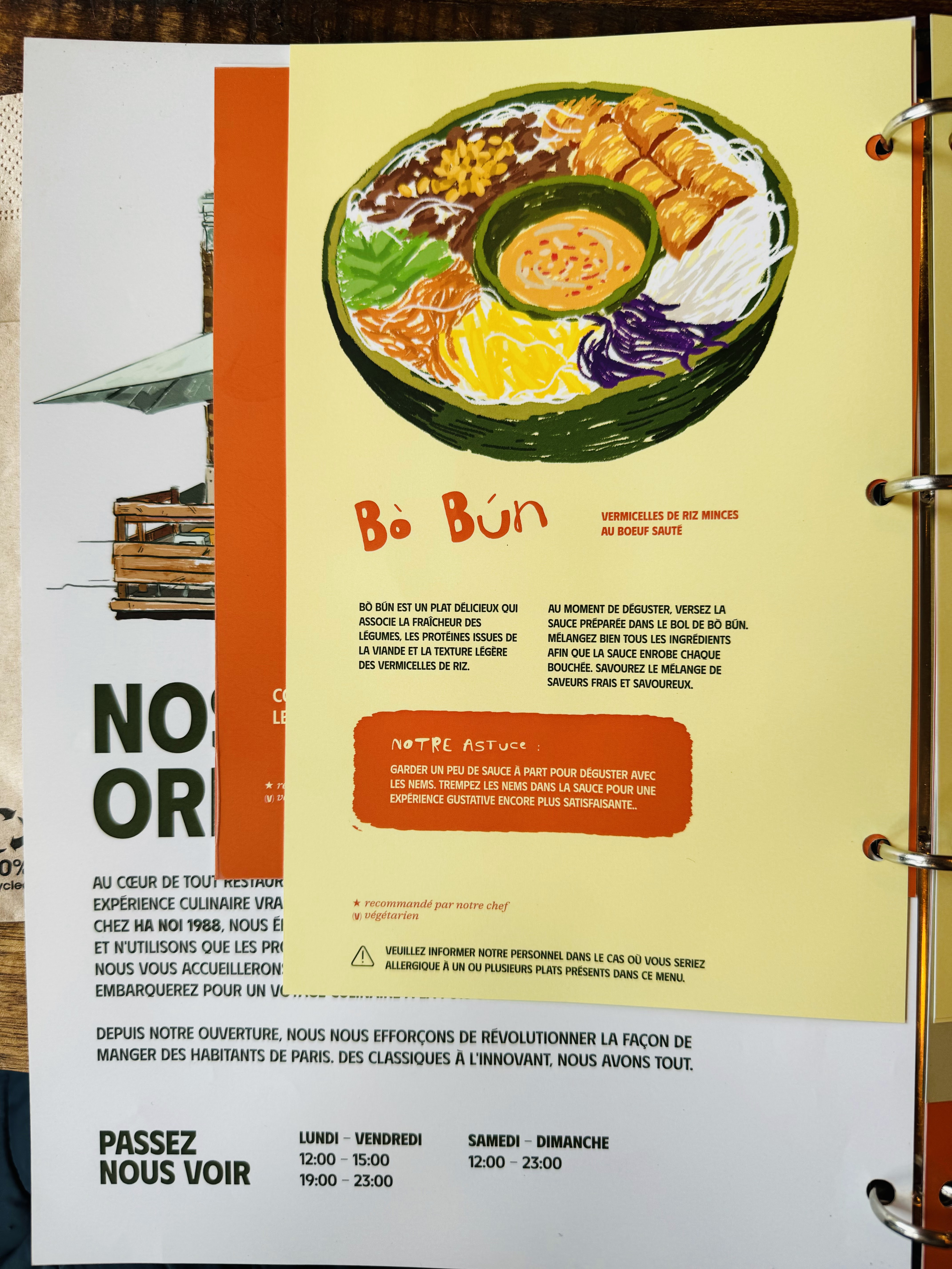 Un tout petit resto au bord de la Seine! L'équipe était sympa et efficace. Par contre en tant que Hanoïen je dirai pas ici un vrai goût de la capitale vietnamienne à Paris. Mais si vous cherchez un resto vietnamien dans le quartier, n'hésitez pas à venir goûter du riz au boeuf sauté du poivre noir ou au poulet au curry
