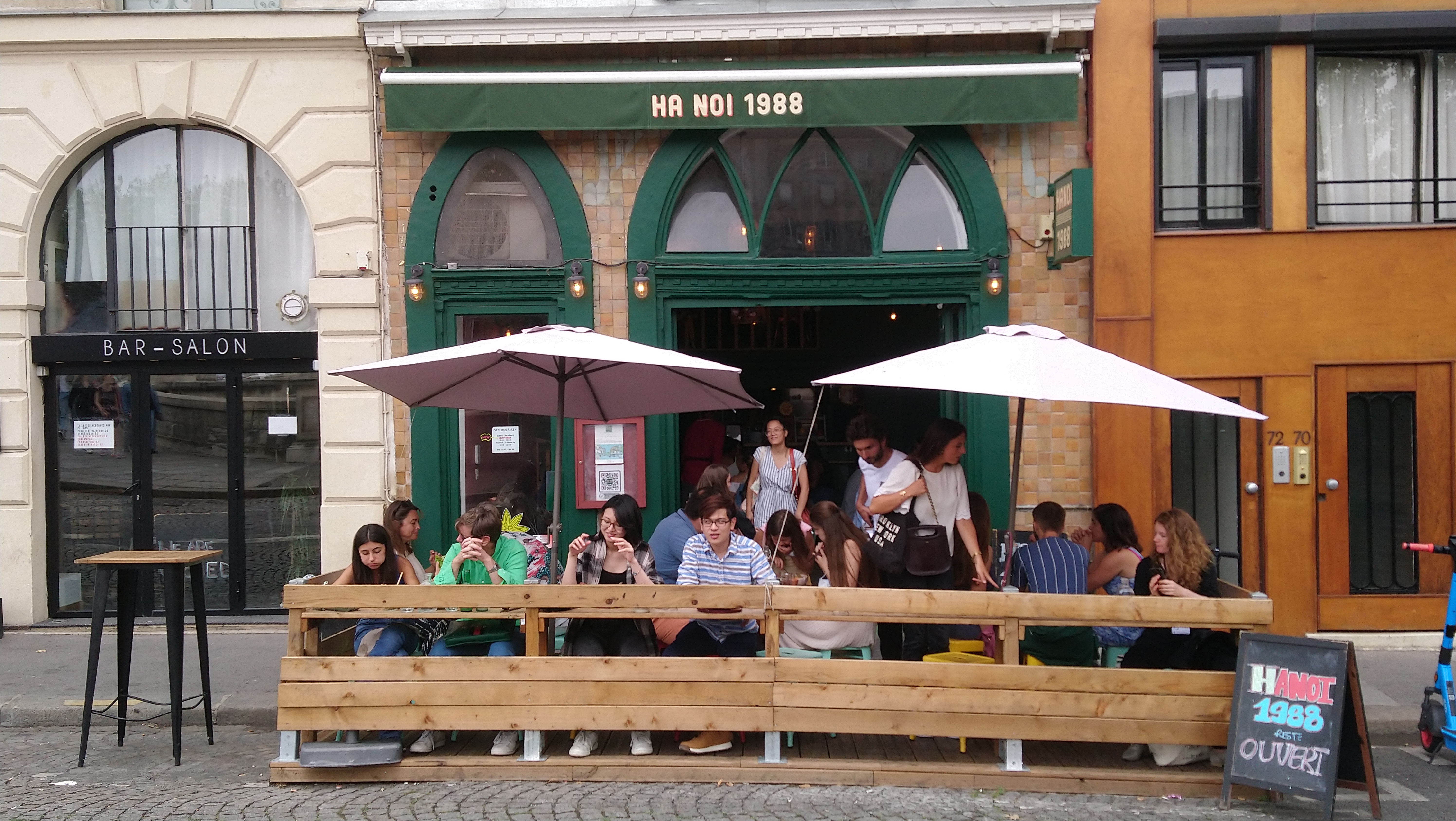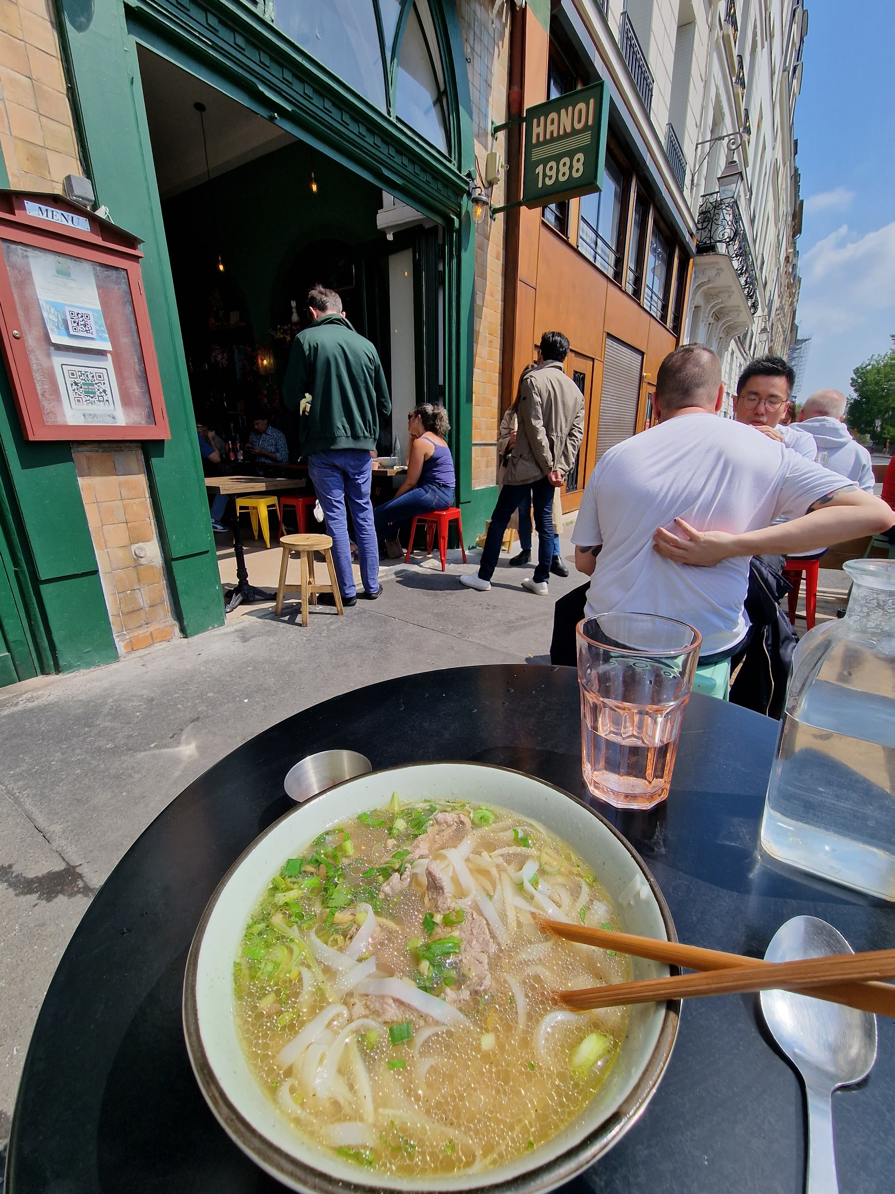 Cantine Vietnamienne au milieu du Pont-Neuf, ici on vient manger le Phở, soupe typique du Viet Nâm, version indochinoise du Pot-au-Feu. Un délice!