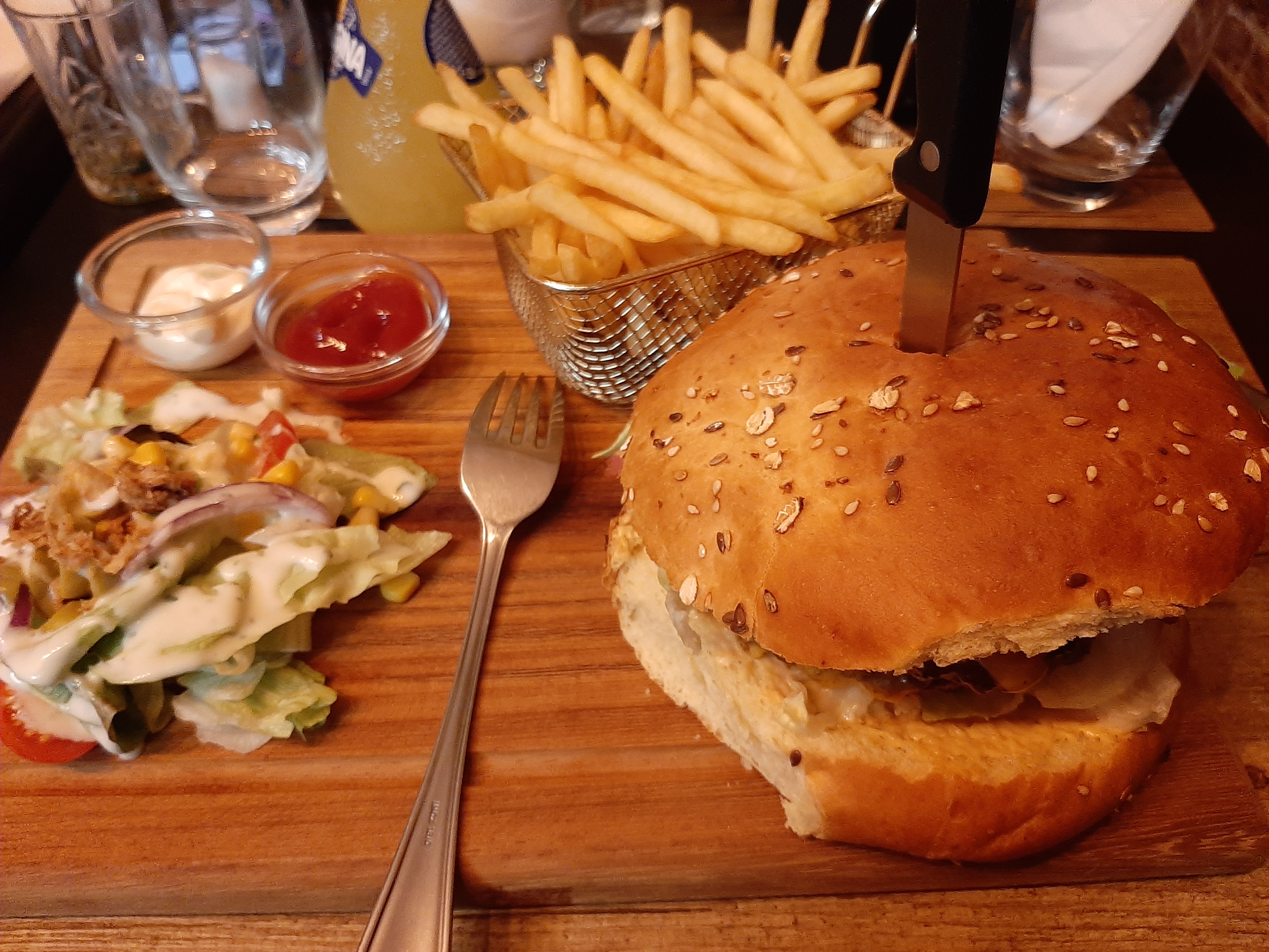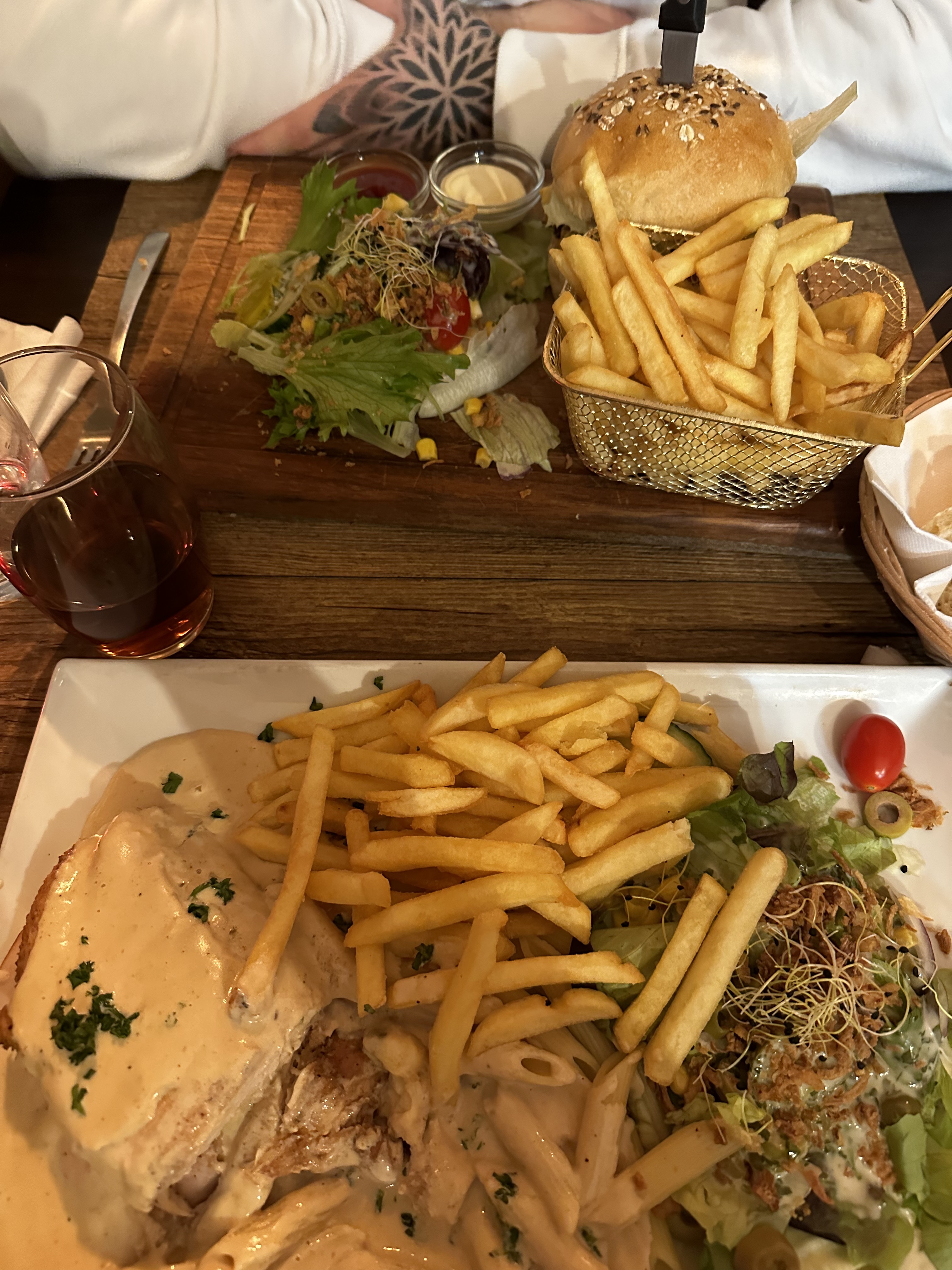 Deuxième passage dans ce restaurant en ayant réservé et sans doute pas le dernier. Dîner en famille : Menu Burger Le Hadiqa, menu Burger Le Coq et menu Burger enfant (avec des jouets dans une box Pirates). Les trois Burgers étaient bons, bien assaisonnés et frites croustillantes 👍🏼. La tranche de concombre au centre du burger apporte une touche de fraîcheur. Personnellement, une julienne de concombre dans le burger serait plus judicieuse selon moi. Très satisfait de l'accueil, du service, du personnel attentionné et du repas bien sûr. Merci et à bientôt.