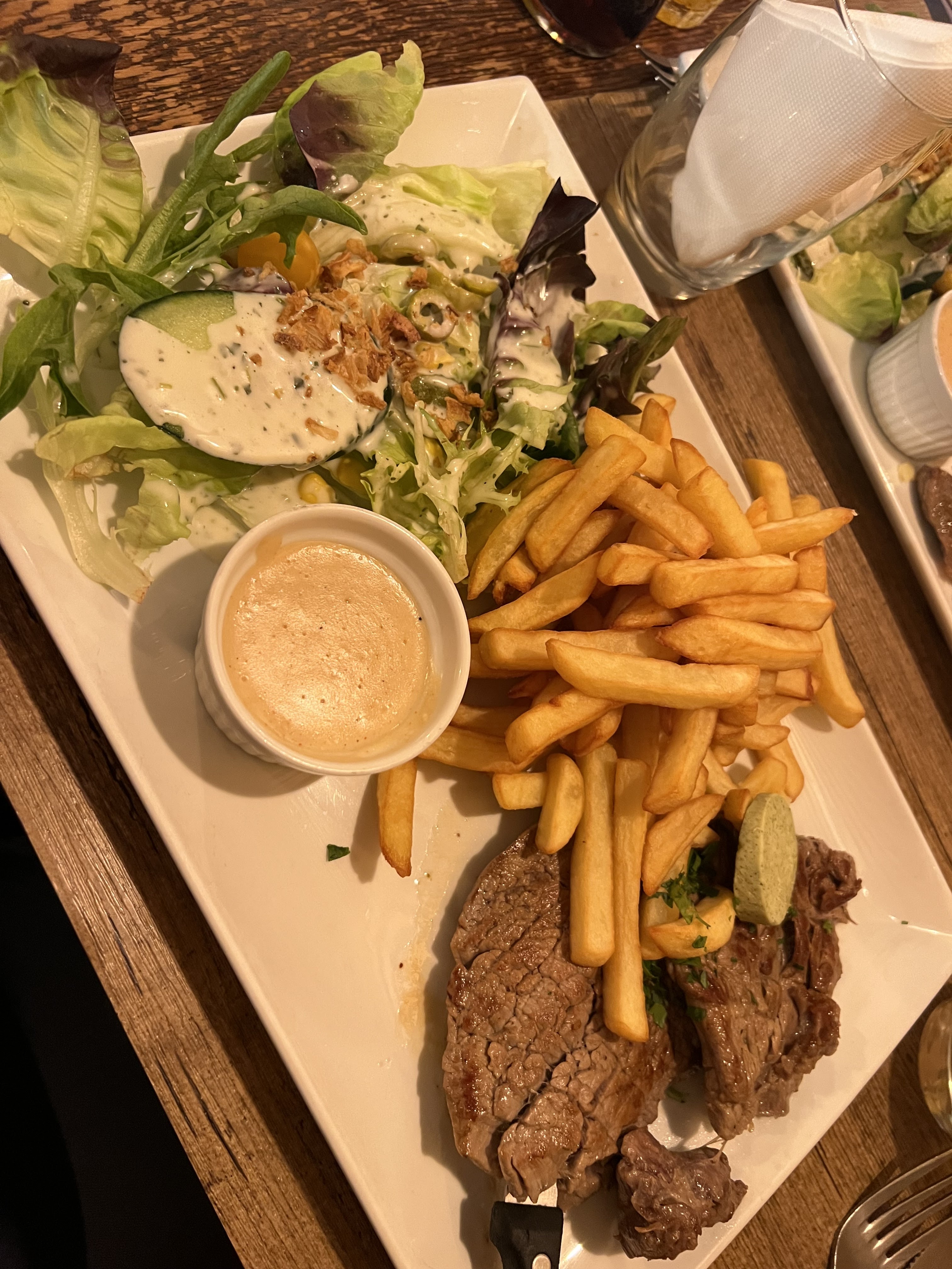 Un beau et bon restaurant sur Strasbourg centre. J’ai pris un faux filet/frite. Et un tiramisu. Parfait ! Cuisson de la viande respectée. Des produits de qualité. Par contre, penser à réserver, j’y étais un jeudi midi, c’était Full. Je recommande