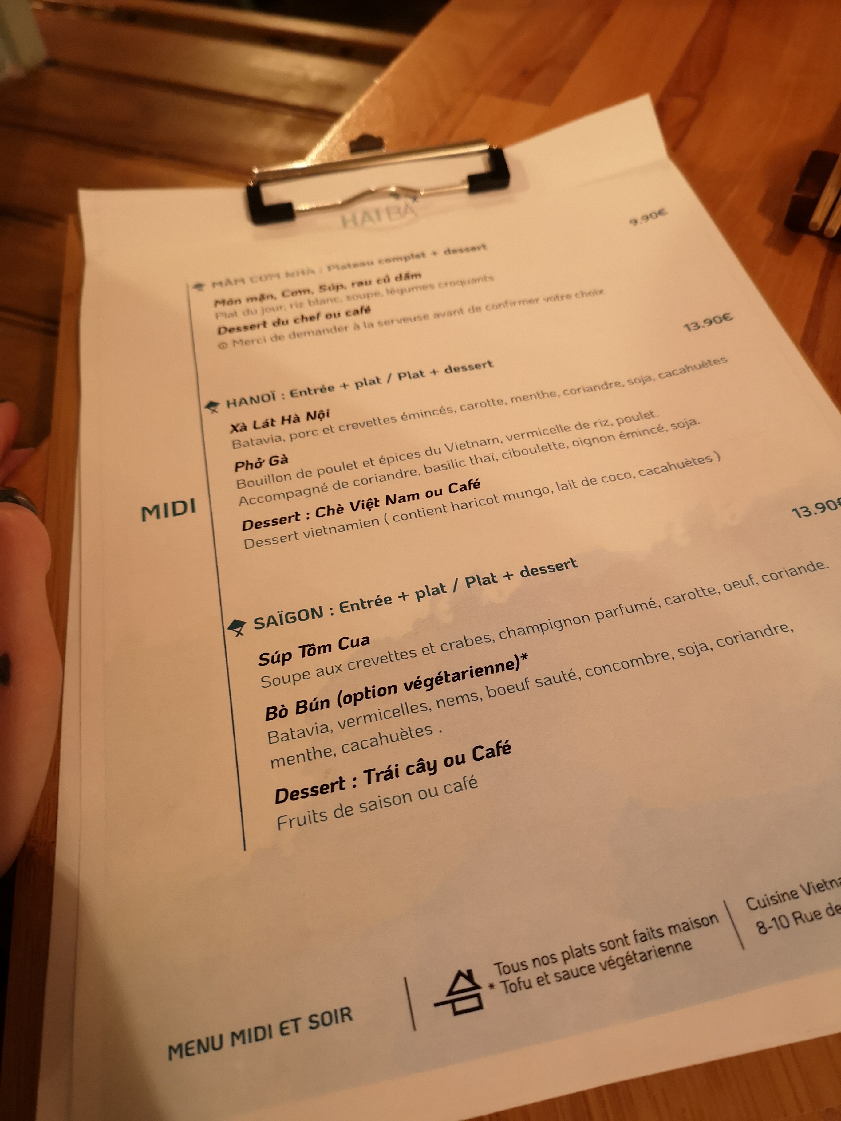 Nous sommes venus passer un très bon moment de partage entre amis chez Hai Ba. On recommande le plateau à partager qui fait découvrir un bel assortiment de spécialités vietnamiennes : nems, rouleaux de printemps, crêpes croustillantes et autres. La soupe de vermicelles Pho du chef est un vrai délice!