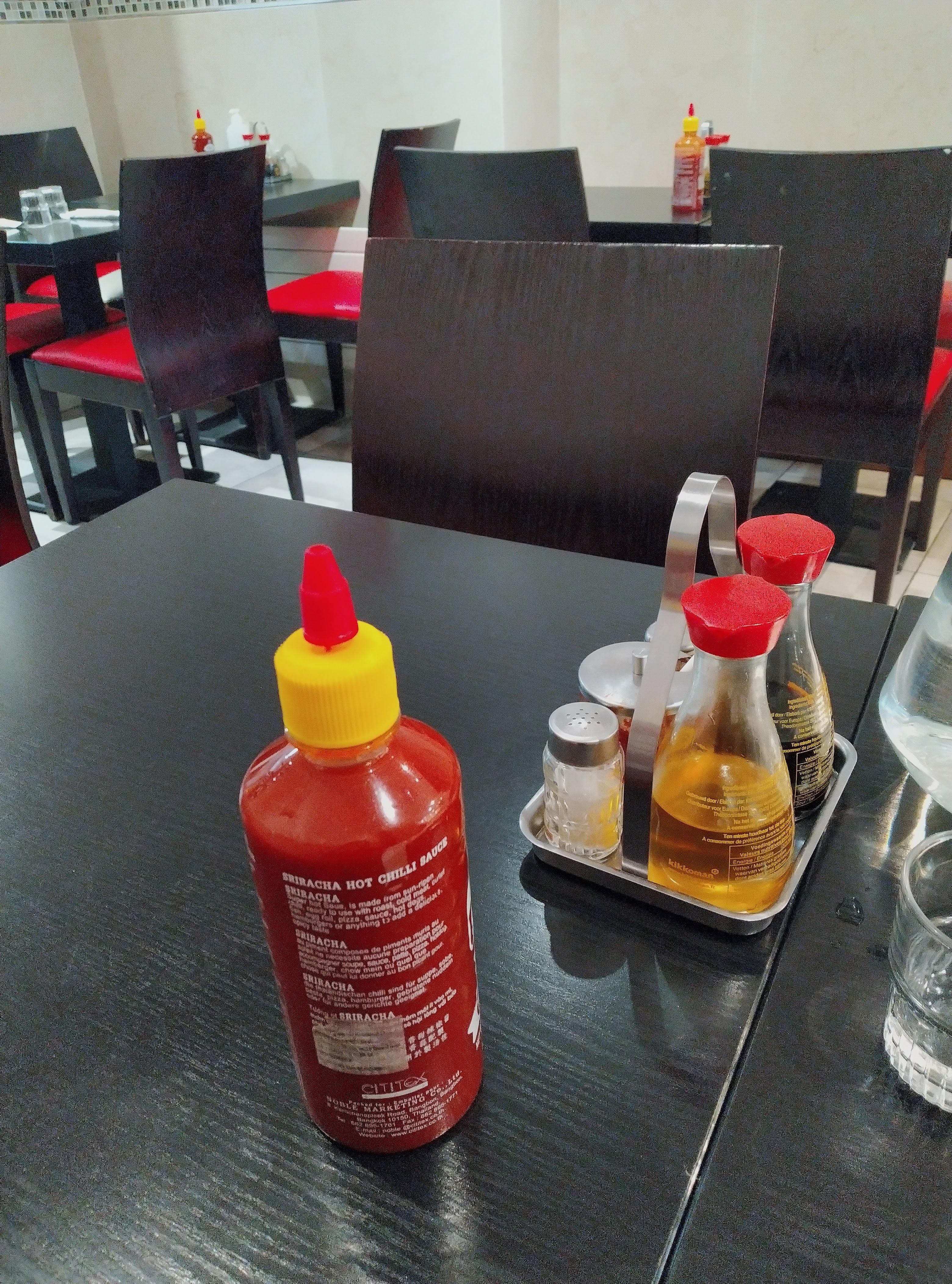 La nourriture était délicieuse. Certainement mieux que l'épicerie asiatique de l'autre côté de la rue. C'était propre. Il y a plusieurs sauces parmi lesquelles choisir sur la table. (En face il n'y a qu'une sauce piquante). Beaucoup d'espace pour s'asseoir !