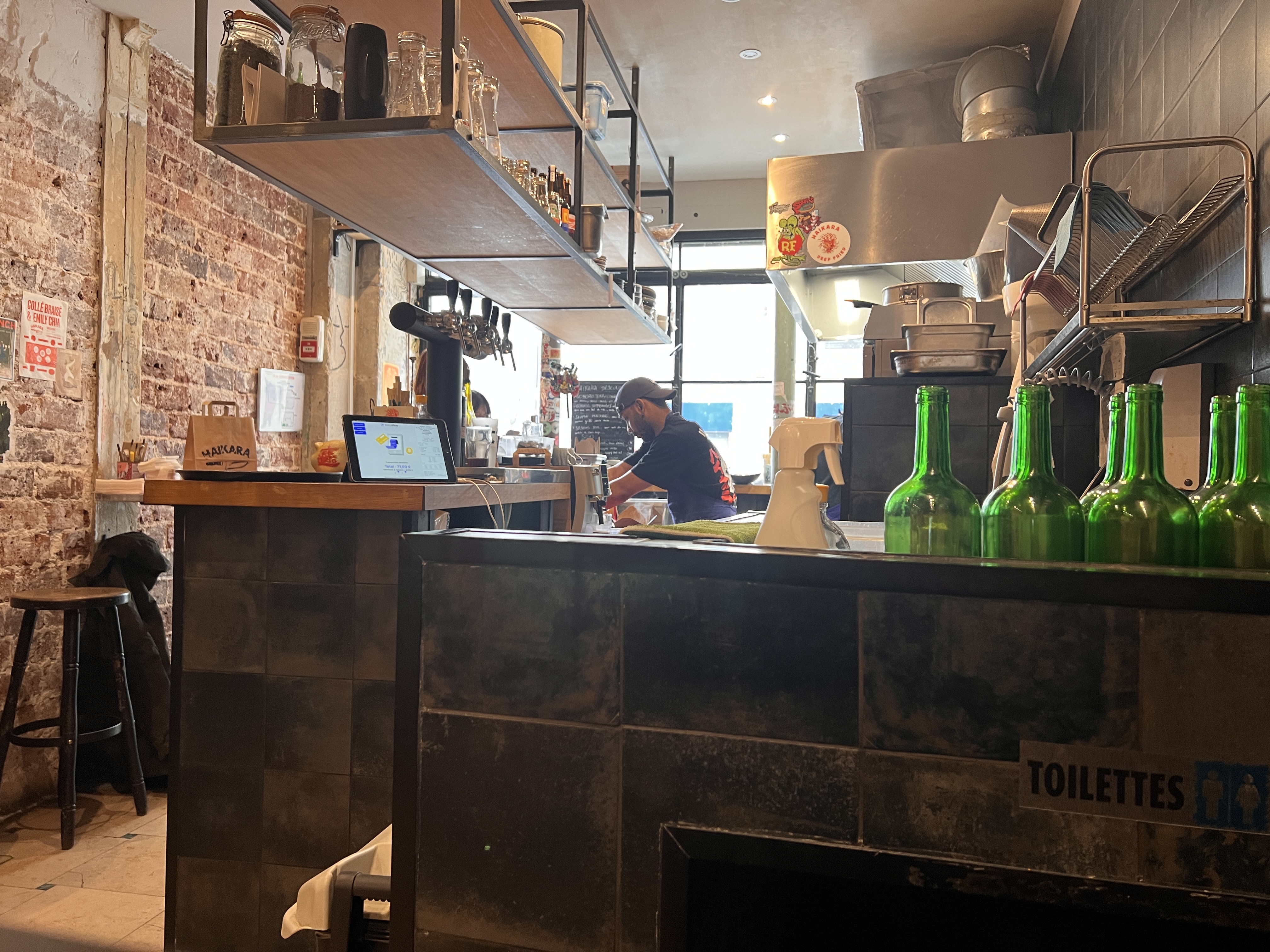 Tout y est ! Ce petit spot sait accueillir, faire du bien aux papilles et aux oreilles. Aux commandes il y a le chef japonais discret, cool et souriant qui ne rigole pourtant pas sur la qualité ni sur la quantité ( l’ okonomyiaki claque en générosité et en saveur). Les plats sont extrêmement fins, certains agréablement surprenants et tous impeccablement relevés. Les plus chanceux tenteront un bœuf….dont je ne dirais pas plus ; renseignez-vous vous sur place, votre palais vous dira merci. Pour parfaire le truc, son binôme et acolyte vous proposera une sélection de vins qui vaut le détour, qu’ils soient naturels ou plus tradi, le choix est trié sur le volet. D’ailleurs la cave devant laquelle on passe en sous-sol contribue à l’envie de revenir. L’ambiance conviviale avec un fond de hip-hop alternatif pousse à s’attarder un peu, on repart avec le smile et l’envie d’y retourner !