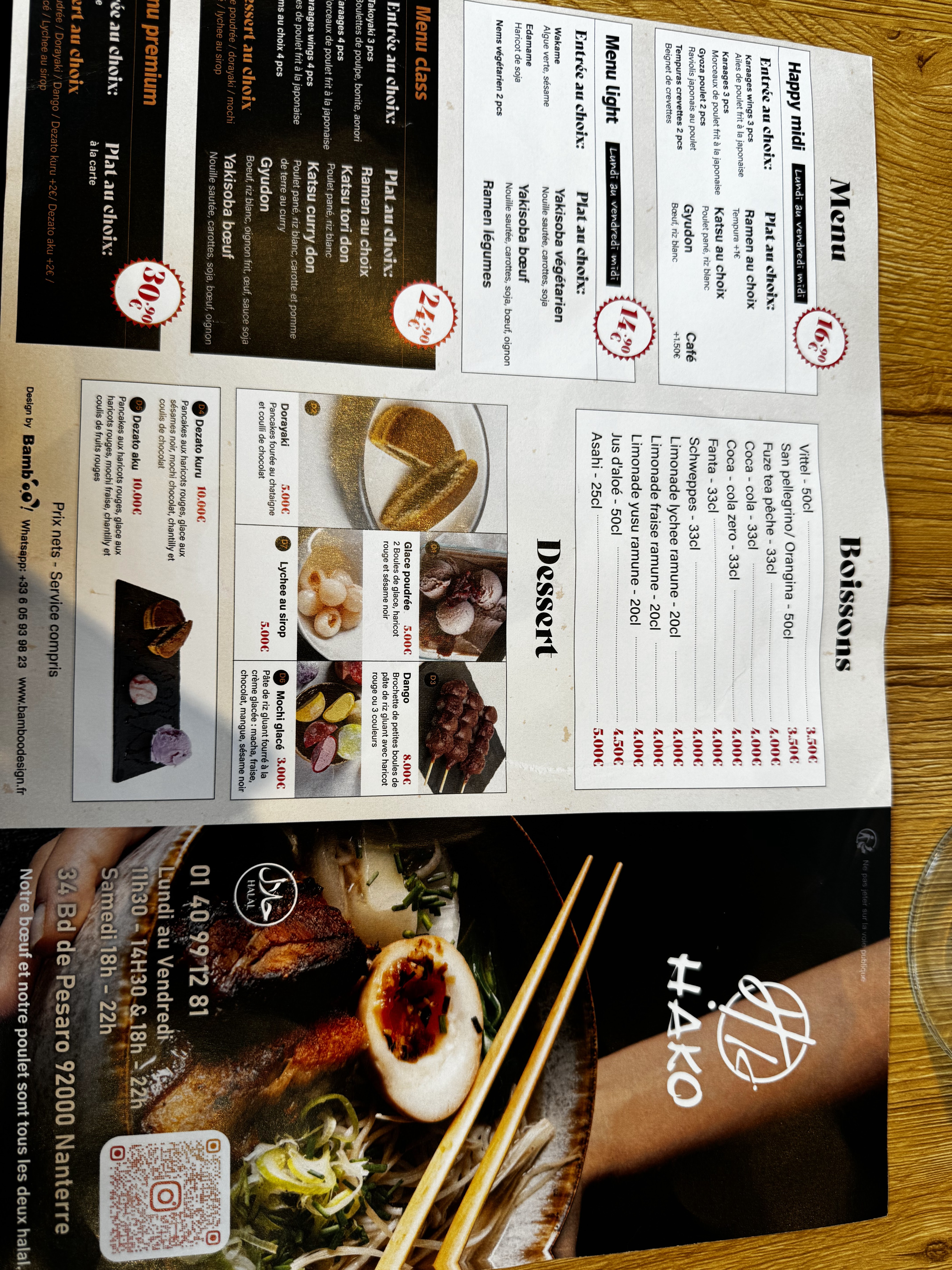 Étant un habitué de la rue St Anne je suis bien content d'avoir trouvé un ramen à Nanterre ! D'habitude les restaurants japonais de quartier sont des sushis/brochettes communs mais le hako a pris le pari d'être original, et de se spécialiser dans cet autre aspect de la cuisine japonaise. Idéalement situé près de la préfecture, c'est une adresse innovante qui mérite d'être encouragé !