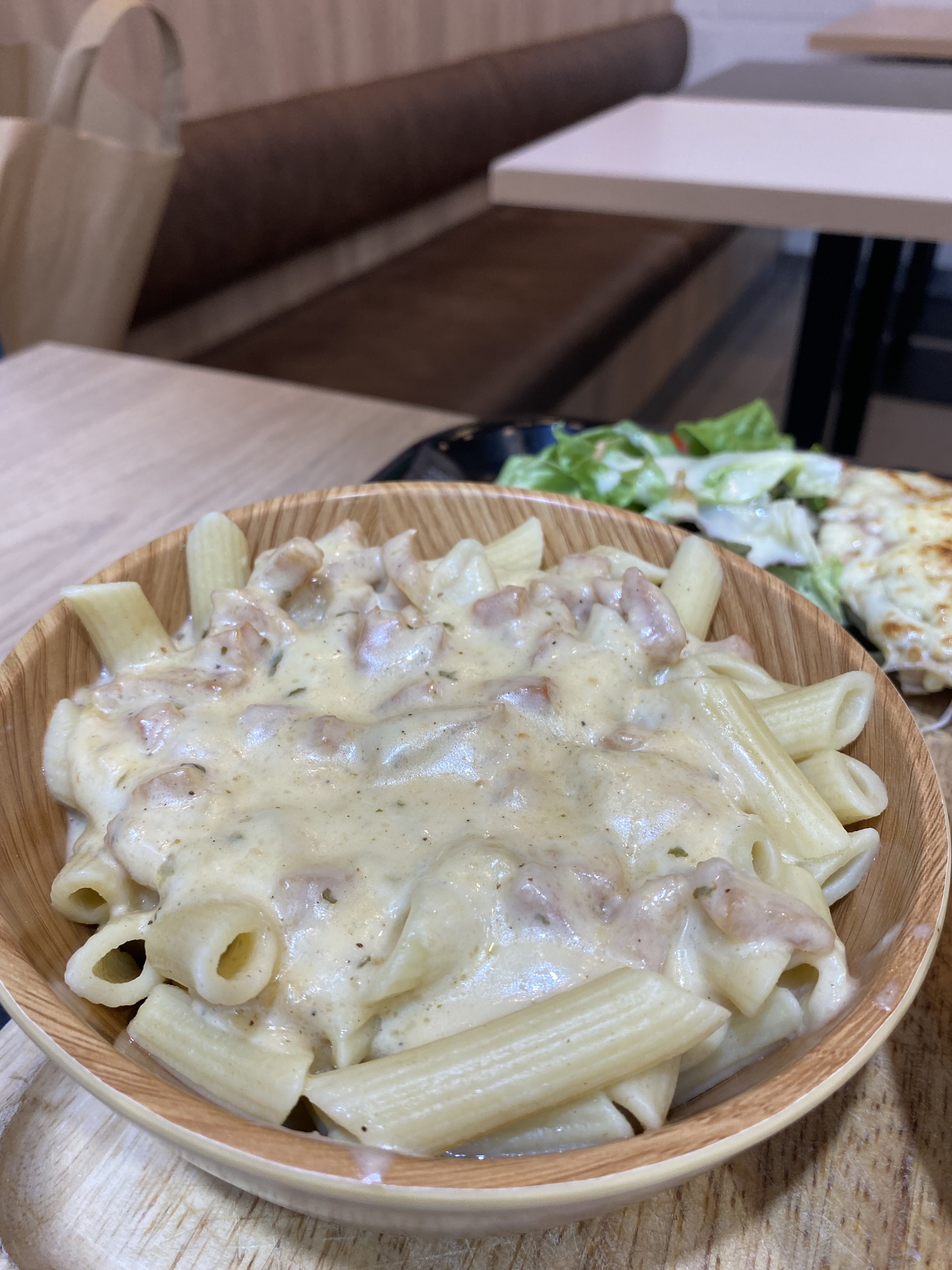 C’est un très bon restaurant il y a beaucoup de choix (bowl, sandwich, burgers, pâtes, escalopes) ils sont vraiment rapides on a pris 6 plats et on a été servis en même pas 10 minutes. Les pâtes sont bien crémeuses et les frites et les burgers ont beaucoup de goût. C’est propre et c’est halal aussi