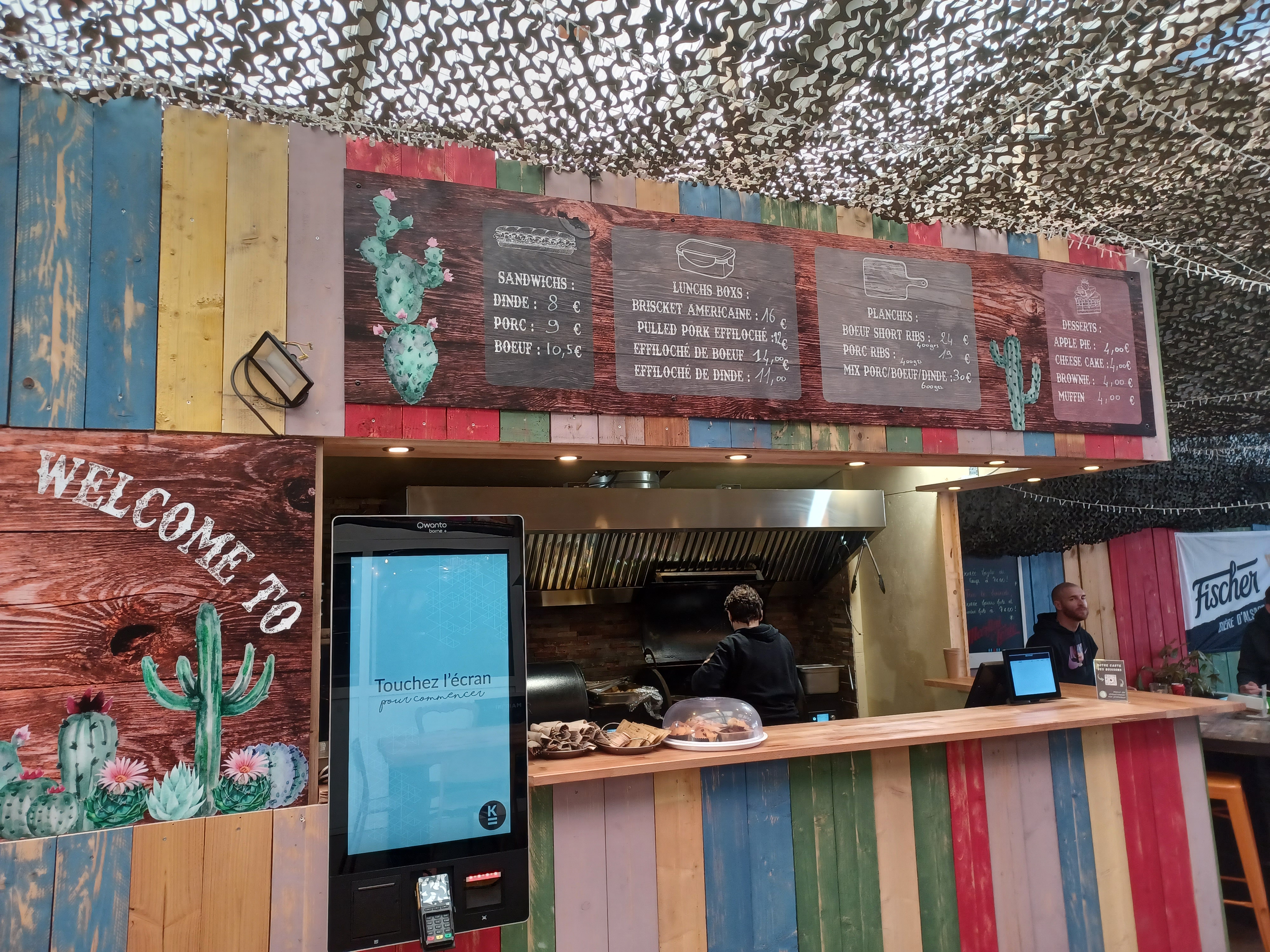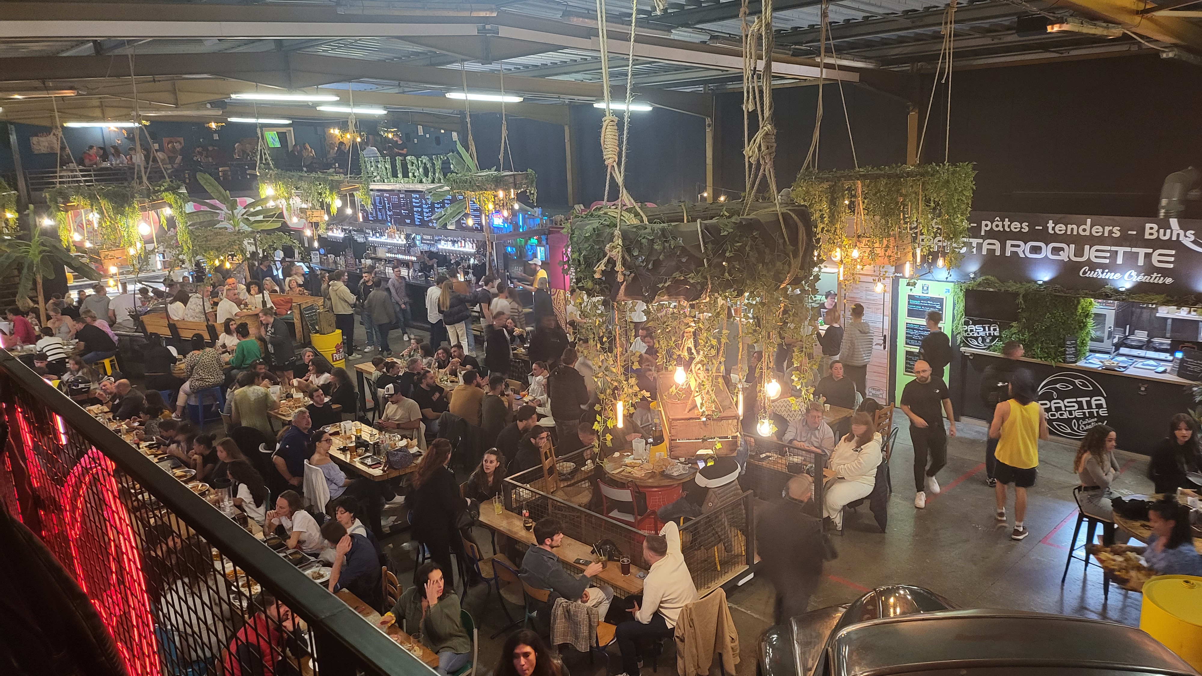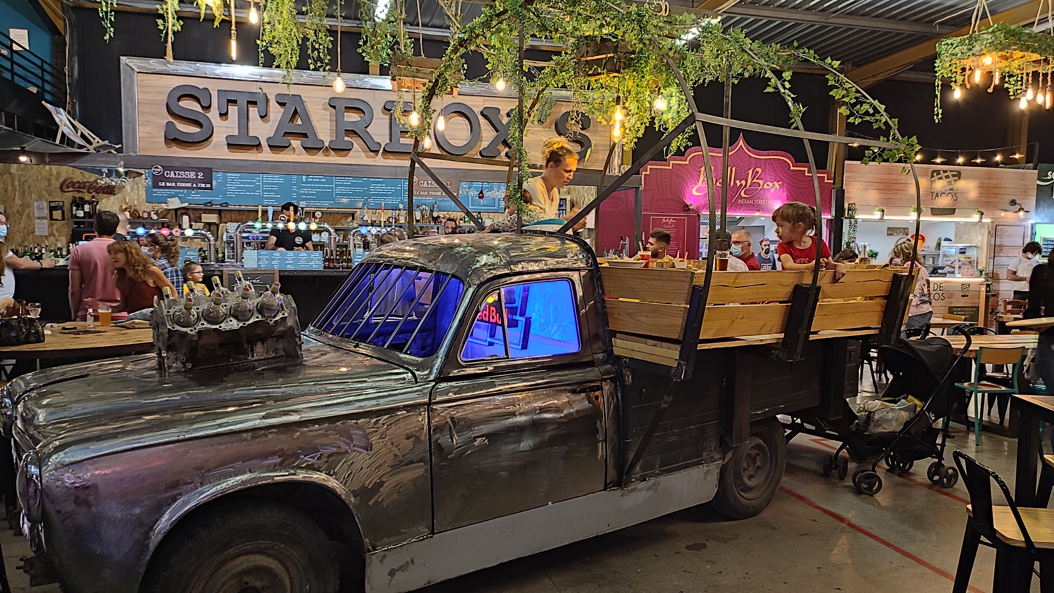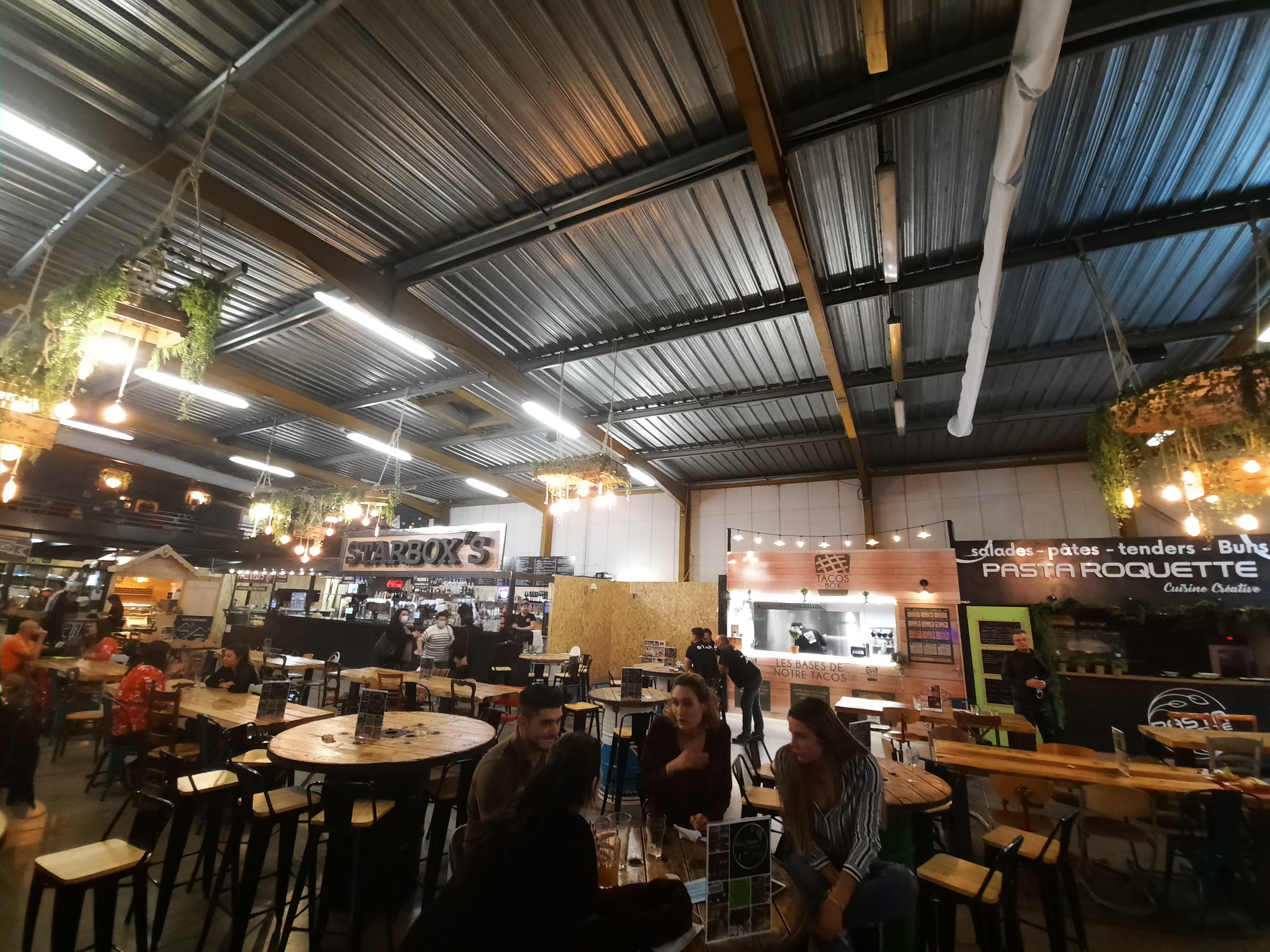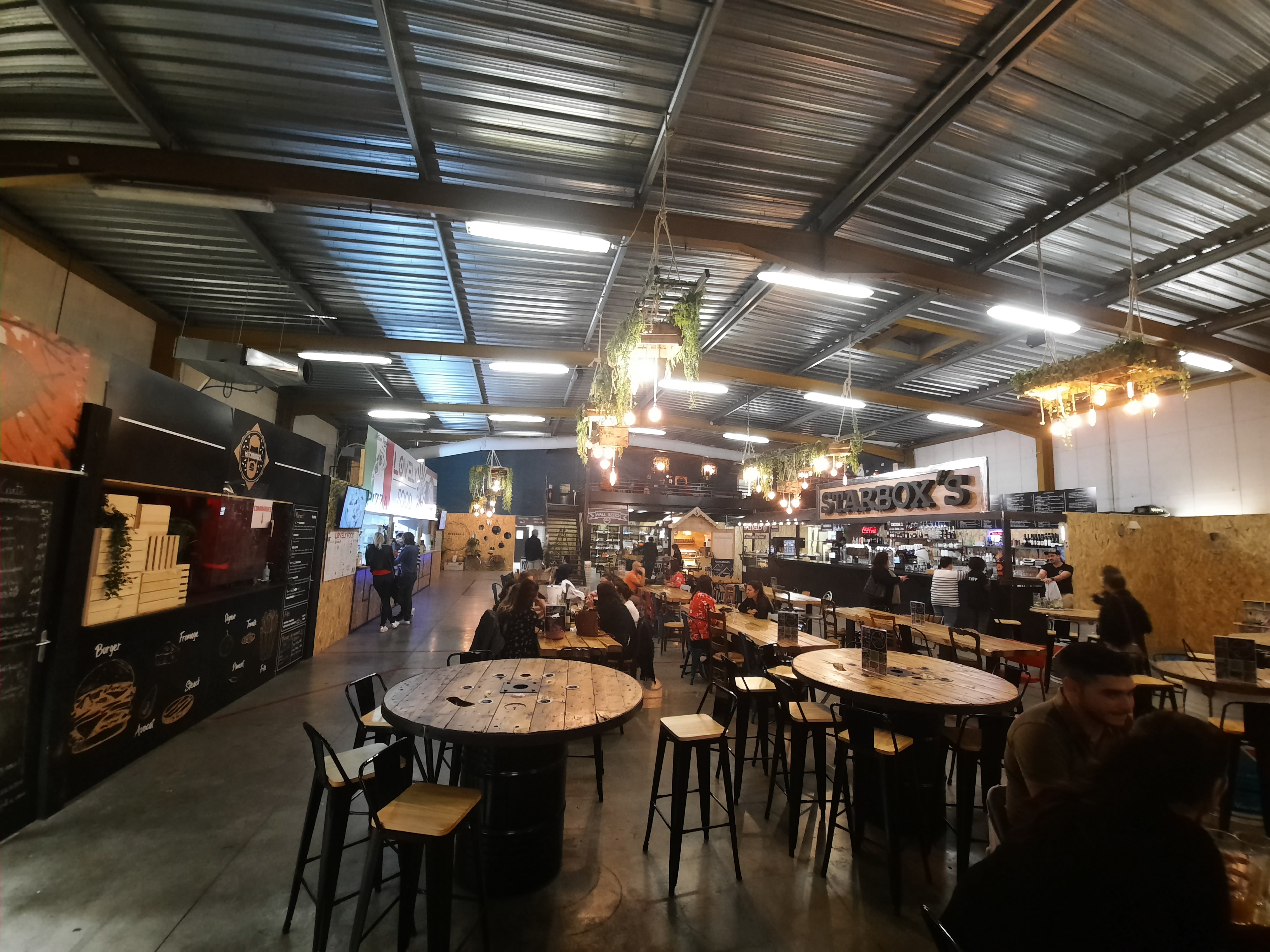 C'est un lieu très convivial. Une ambiance de marché avec une déco un peu américaine avec ces camionnette revisitées pour en faire des tables. très amusant. Idéal entre amis ou en famille. Belle variété de kiosques avec des cuisines françaises et du monde. De quoi trouver son bonheur. Une étoile en moi car tous les kiosques ne se valent pas. Mais ce lieu original vaut vraiment le détour et les tarifs sont très corrects.