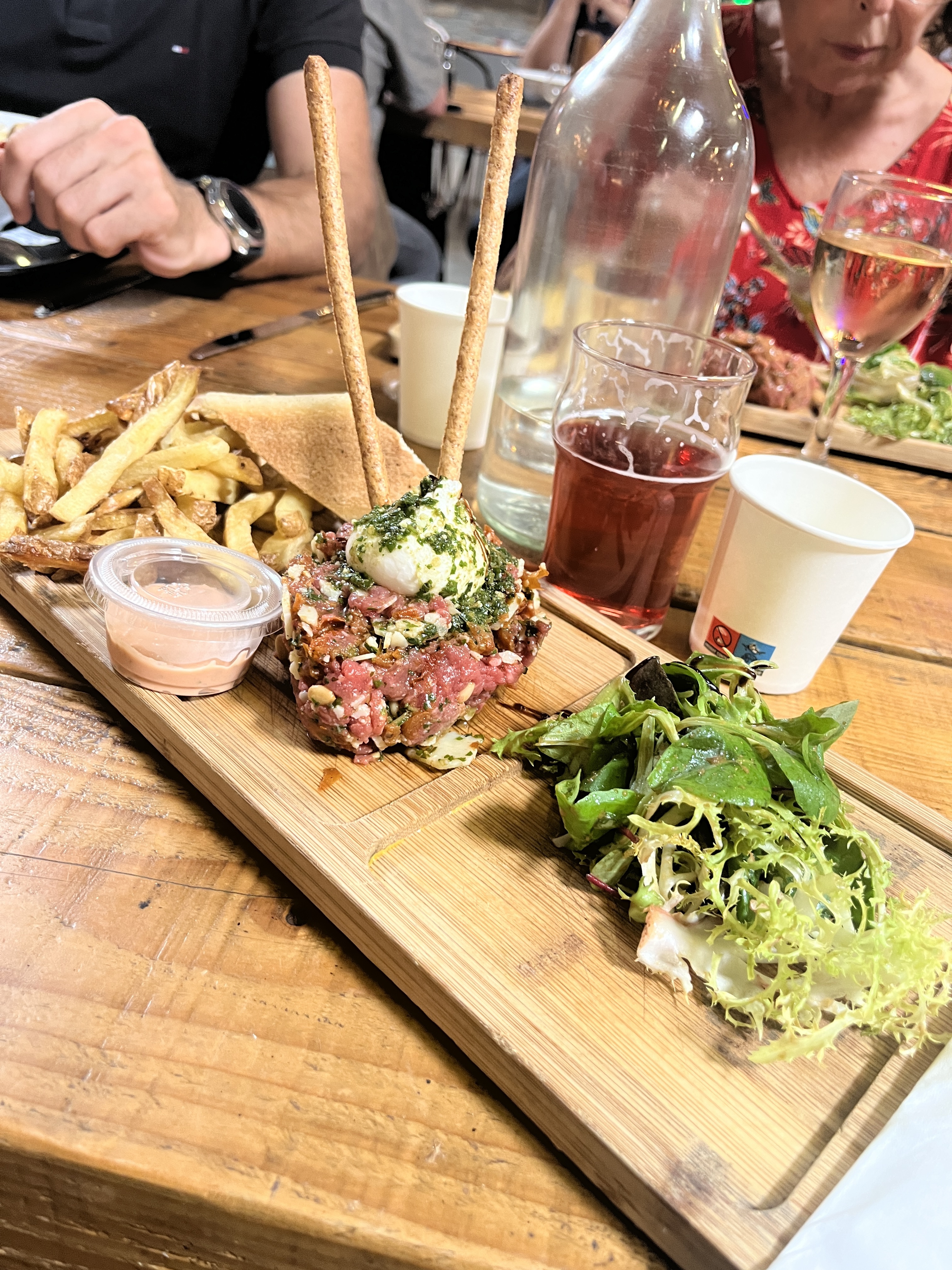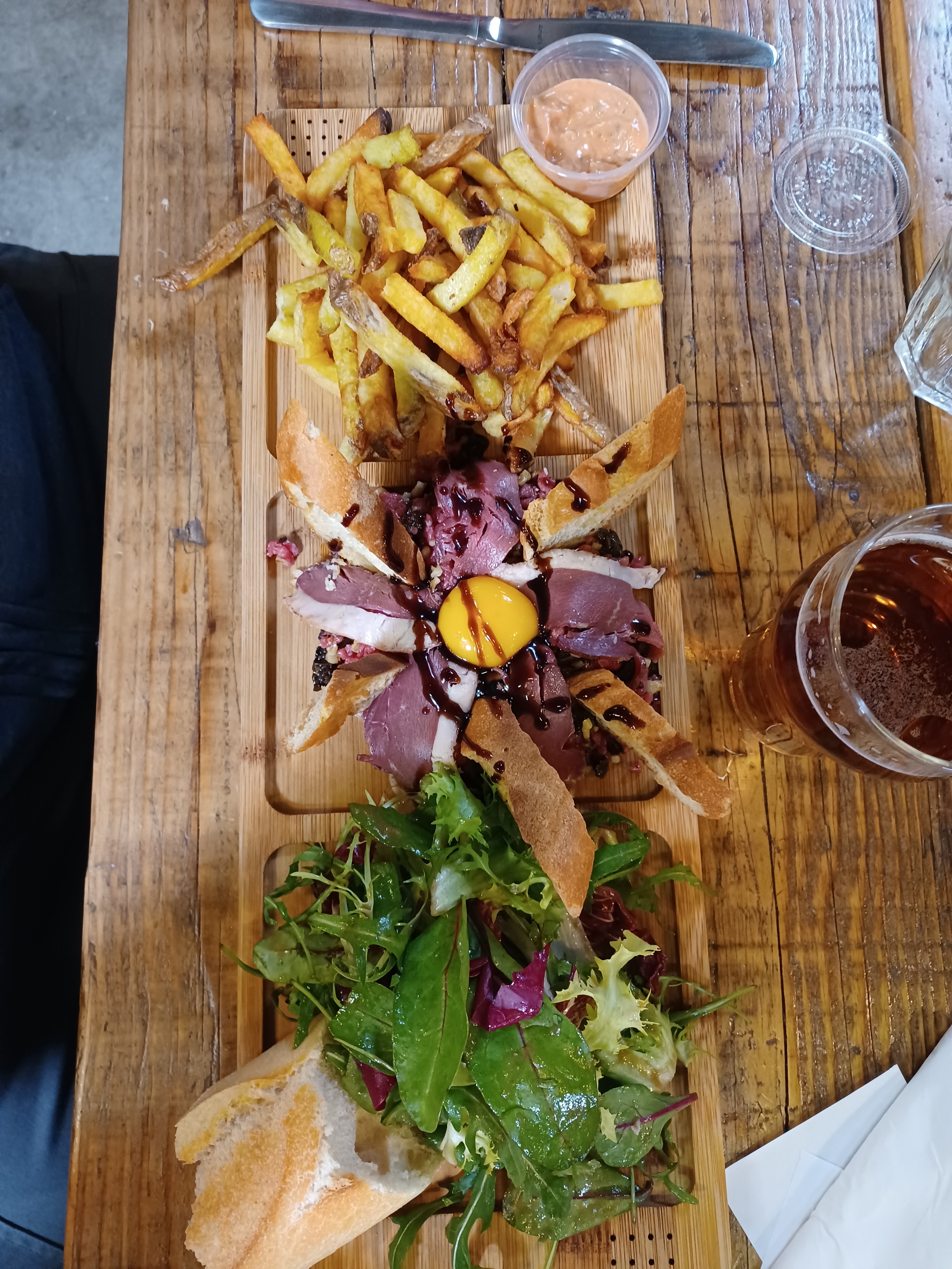 Tartare très bon , copieux , service rapide .. par contre 11,50 € un demi et un Virgin mojito contenant 4 gorgées c’est se moquer du monde ! Fuyez le bar , car ils ne savent pas que le client a le droit de s’en plaindre .. une étoile rien que pour ça malgré un bon repas ..