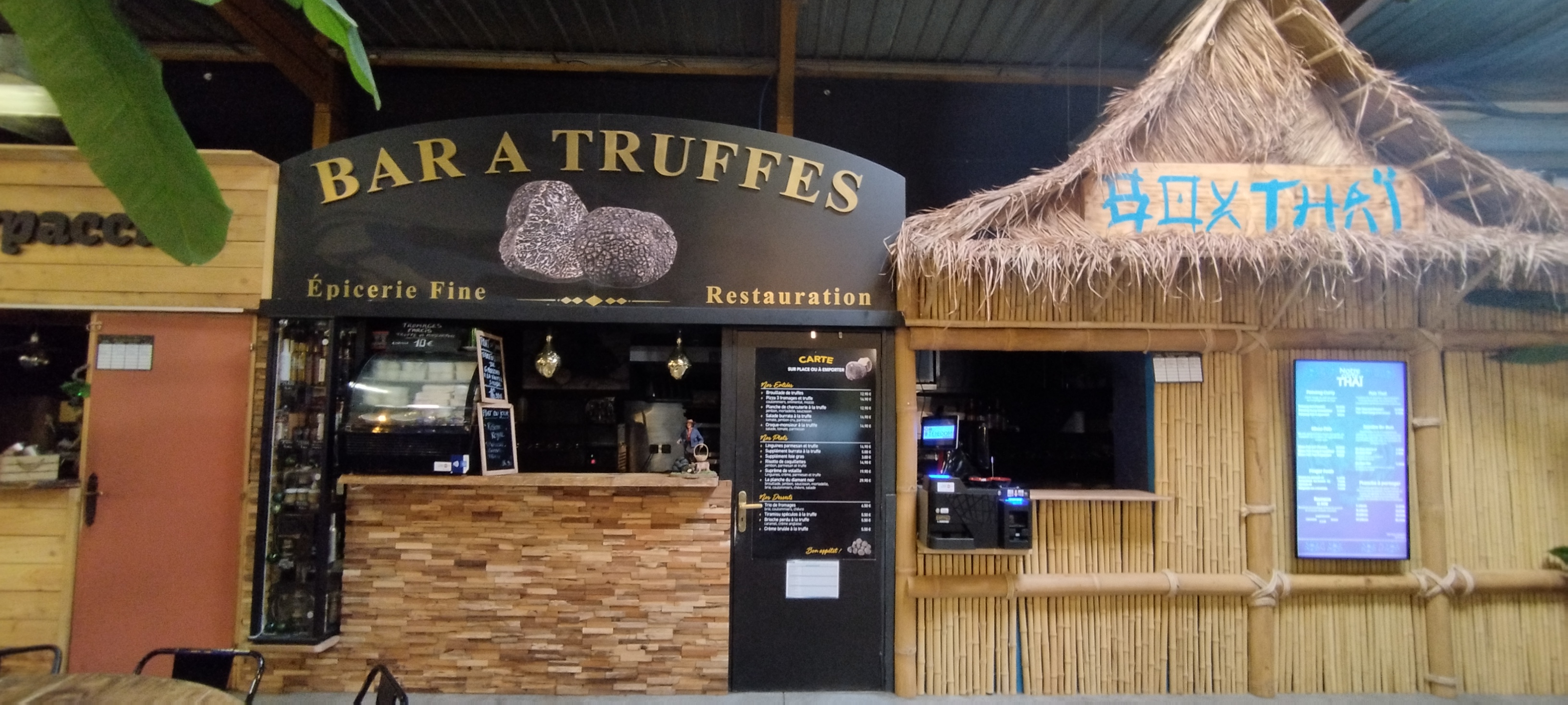 Un concept original. Parmi les différents types de restauration proposés, je conseille tout particulièrement le bar à truffes . Un régal des yeux et des papilles ! J'y ai dejeuné, difficile de faire un choix parmi les plats proposés, tout est tentant. L'accueil est fort agréable, le patron et son personnel sont souriants et sympathiques, les plats sont délicieux. A noter entre autres la rapidité du service. Je recommande vivement ce lieu pour son aspect convivial.