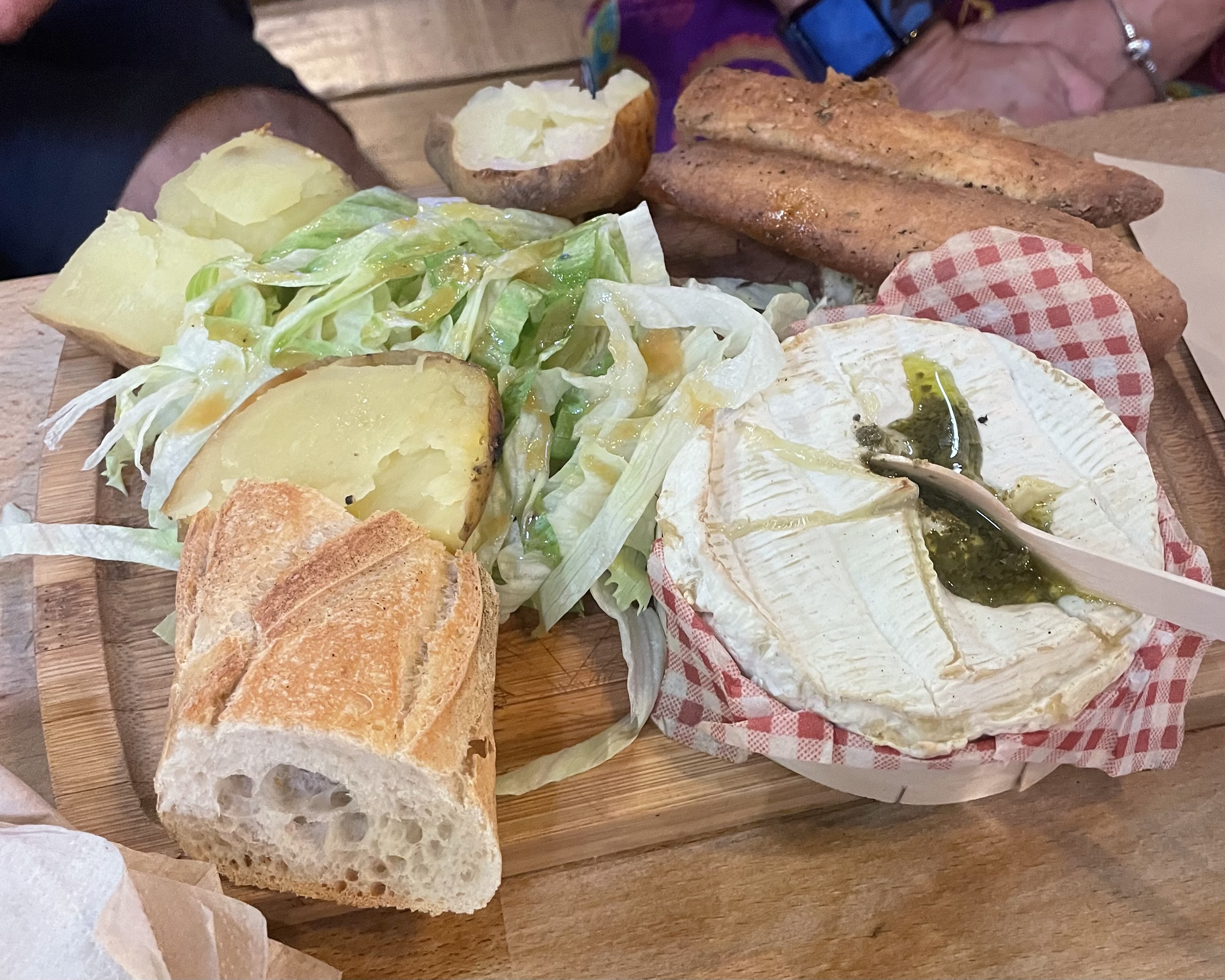Très bonne ambiance et accueil par contre réserver pour avoir une place 🤔🤗différents restaurants pour choisir ce que vous voulez manger nous indien vraiment bon 🤗sinon camembert saucisse pomme de terre salade un régal et tiramisu crème brûlé en dessert 🤗👍