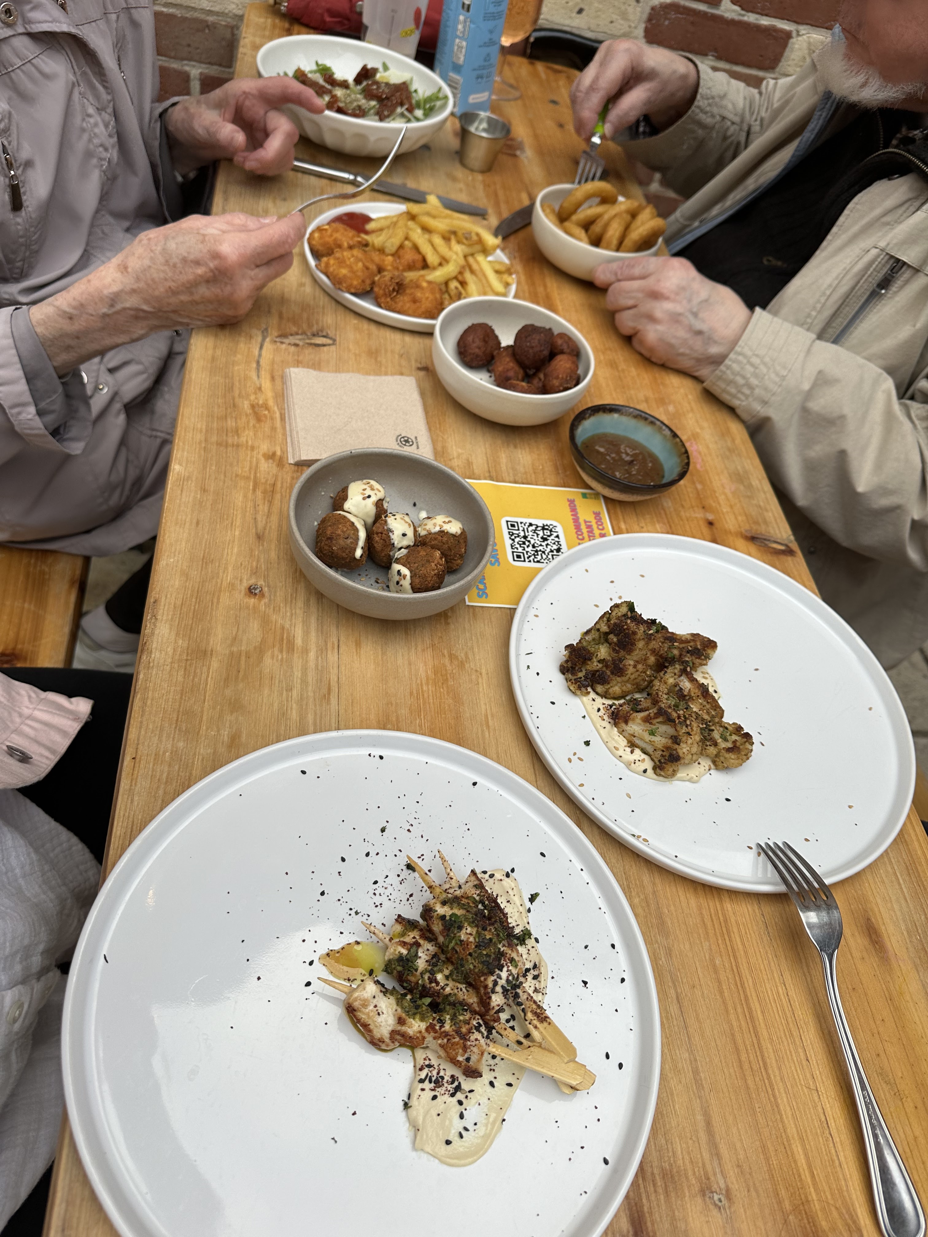 Super endroit, kids Friendly mais aussi pour tous! Super cuisine, simple mais avec des produits frais. Ambiance vraiment sympathique pour un bon moment en famille ou entre amis. Bravo ! Je modifie mon commentaire suite à deux nouvelles visites! Ambiance toujours très sympathique et cuisine bonne pour la plupart des plats (Houmous, crème d'aubergine, falafels, nuggets, frites...) mais moins bien pour d'autres (Salades peu généreuses, gauffres sèches...). Surtout, service peu aimable. Dommage!