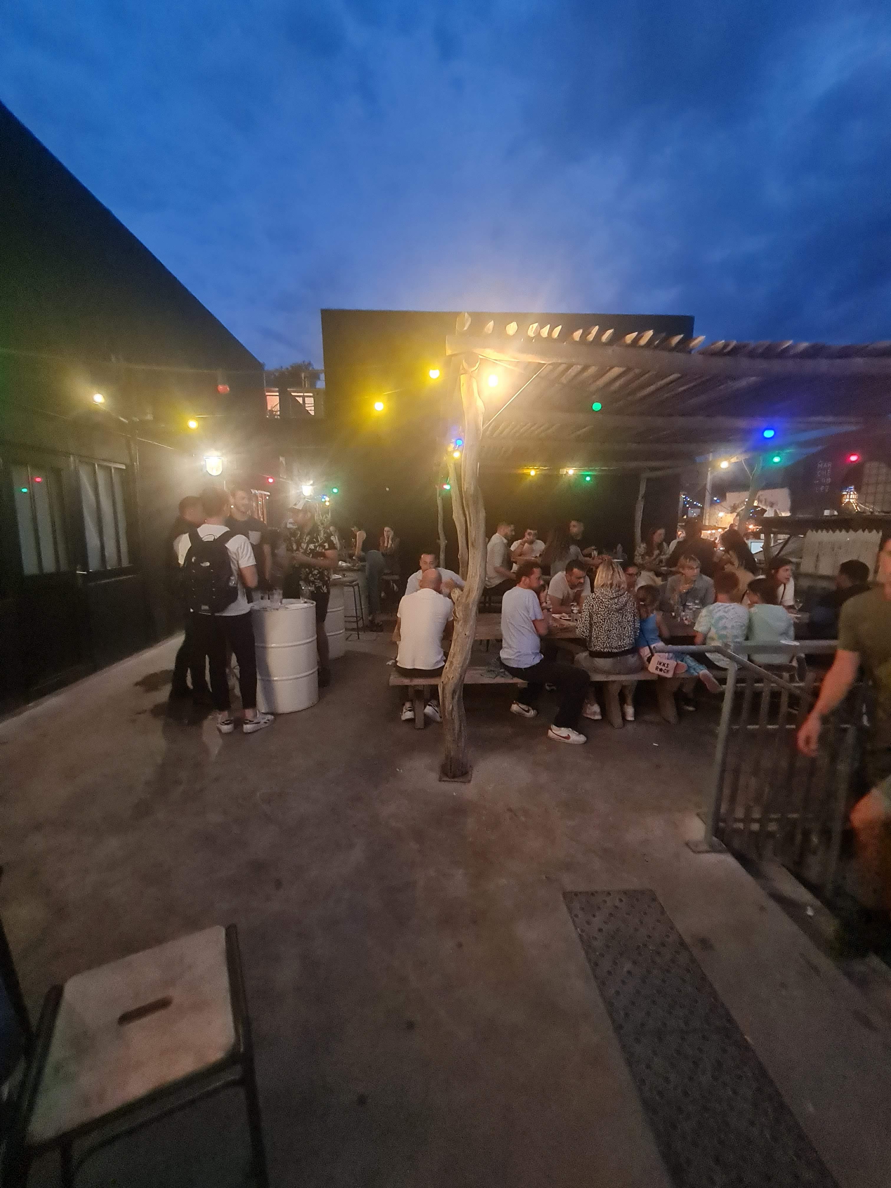 Lieu très sympathique pour passer une soirée à plusieurs. Plein de petits stand pour manger, asiatique, burger, etc... Plein de différents bars avec différentes ambiances. Musique et terrain de pétanque pour les amateurs.