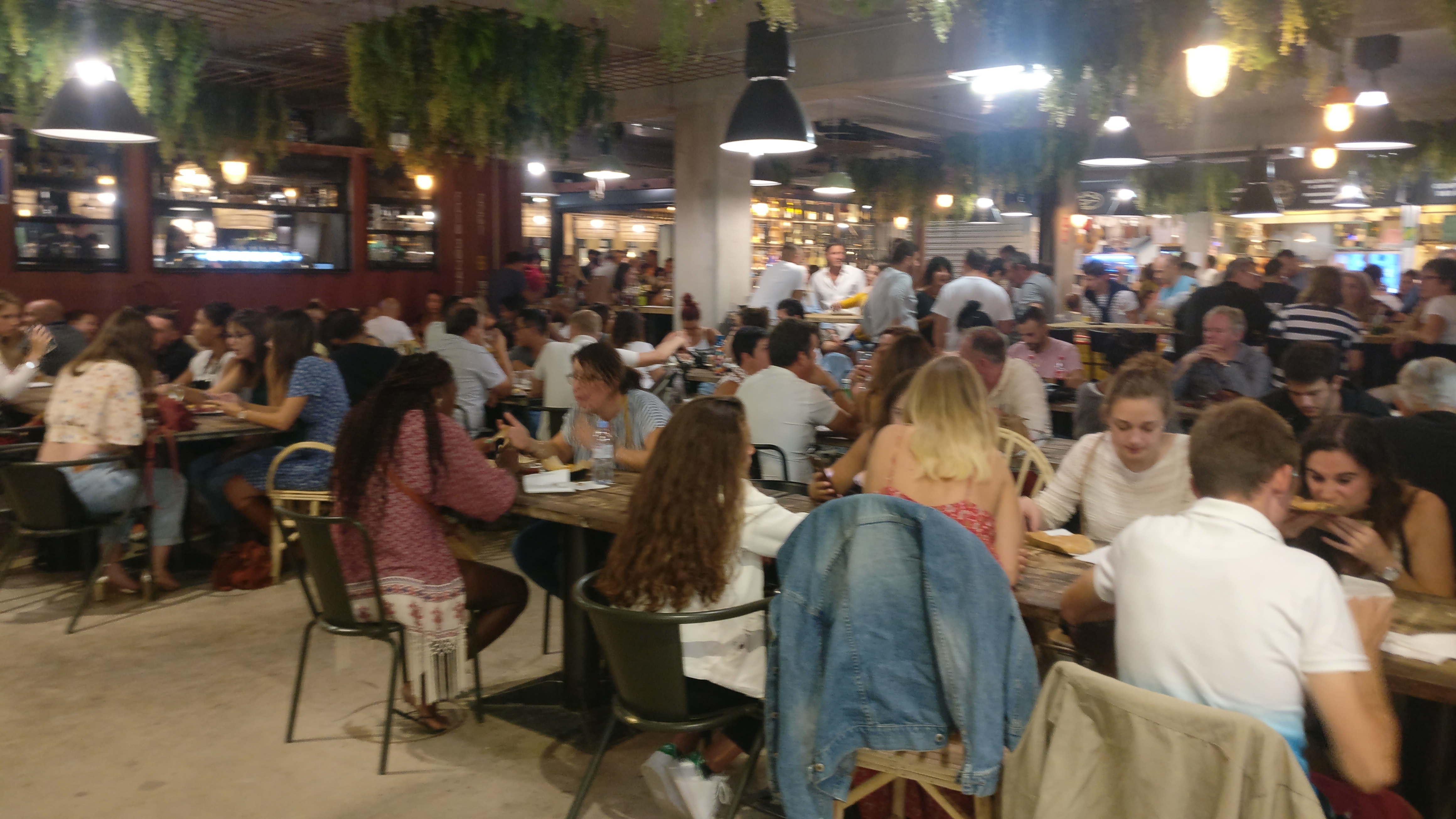 Le concept est génial. Chacun prend un petit plat dans l'un des stands ( hamburger, tajine, sushis, pizza, mexicain, japonnais,...) et on se retrouve tous autour d'une table. Tellement bien réputé qu'il y a un monde de fou donc un peu de bruit.