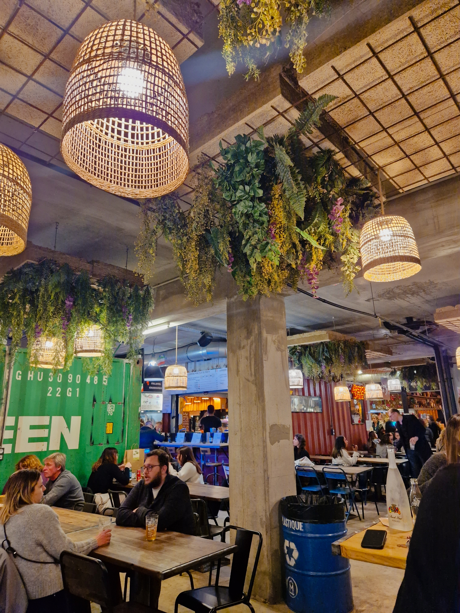 Dans un cadre appelant à la convivialité (grandes tables, commerces attrayants, décor soigné), vous pouvez venir déjeuner, dîner, grignoter ou prendre l'apéritif dans la cinquantaine d'établissements qu'abrite ce lieu. Le lieu est chaleureux mais bruyant. Vous y trouverez toutefois votre bonheur en matière culinaire (beaucoup de street food y est présente cependant). La nourriture et les boissons y sont assez chères (compter pas moins d'une quinzaine d'euros minimum pour un plat et une boisson). Pour les étrangers, il s'agit ni plus ni moins d'un food court mais à la Française (beaucoup (trop ?) d'établissements mais très peu de places assises...). Venez-y profiter occasionnellement mais vous pourrez difficilement en faire votre cantine si vous travaillez à proximité. Petit conseil, la friterie belge à l'entrée du food court côté parking.
