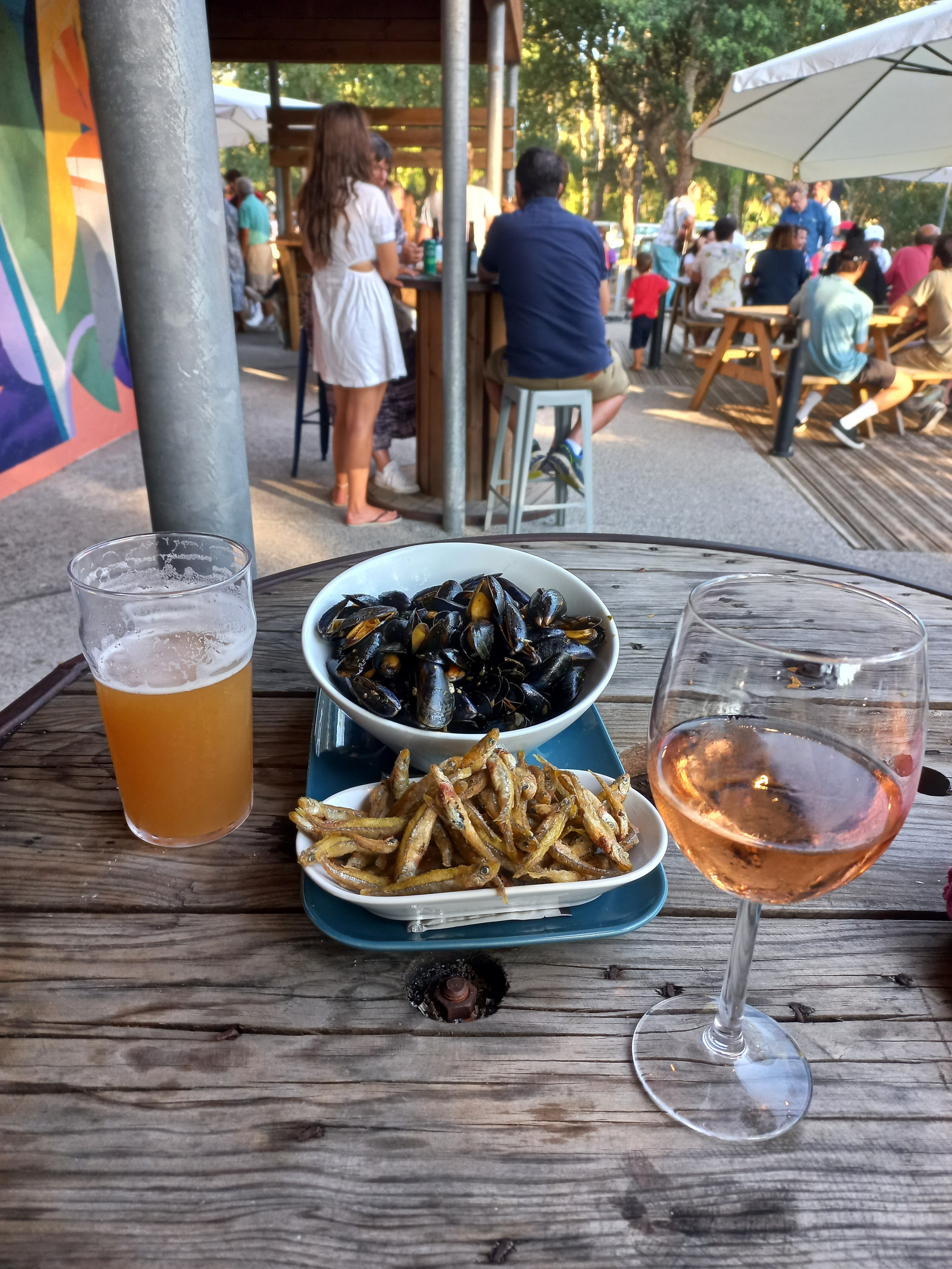 Super halles, ambiance génial sous les pins. Composé d'un restaurant brésilien, restaurant landais, un coffee shop et un mini bar local