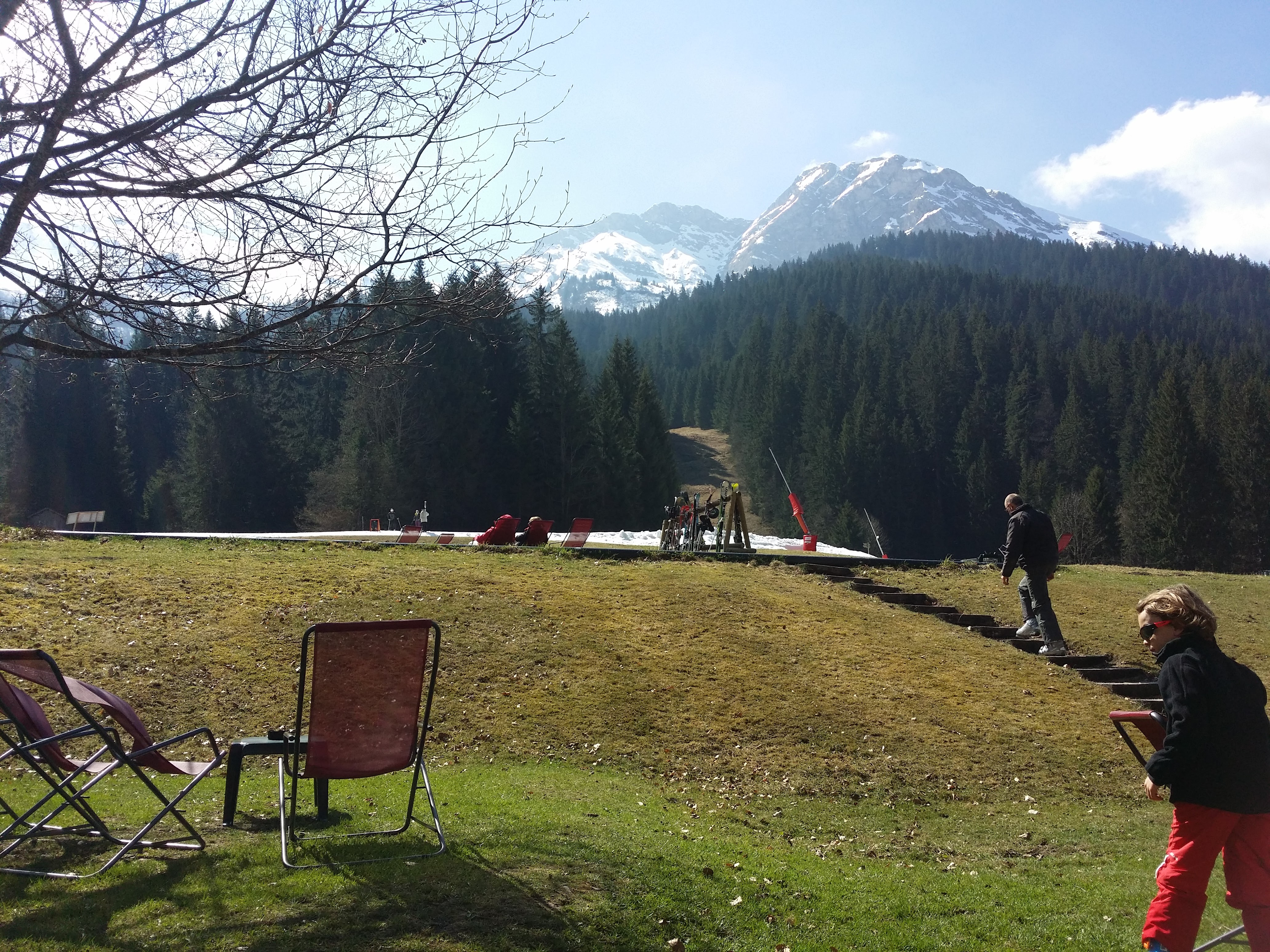 Nous avons pris quelques verres au soleil, bel emplacement au pied des pistes. Bonne façon de terminer une journée de ski