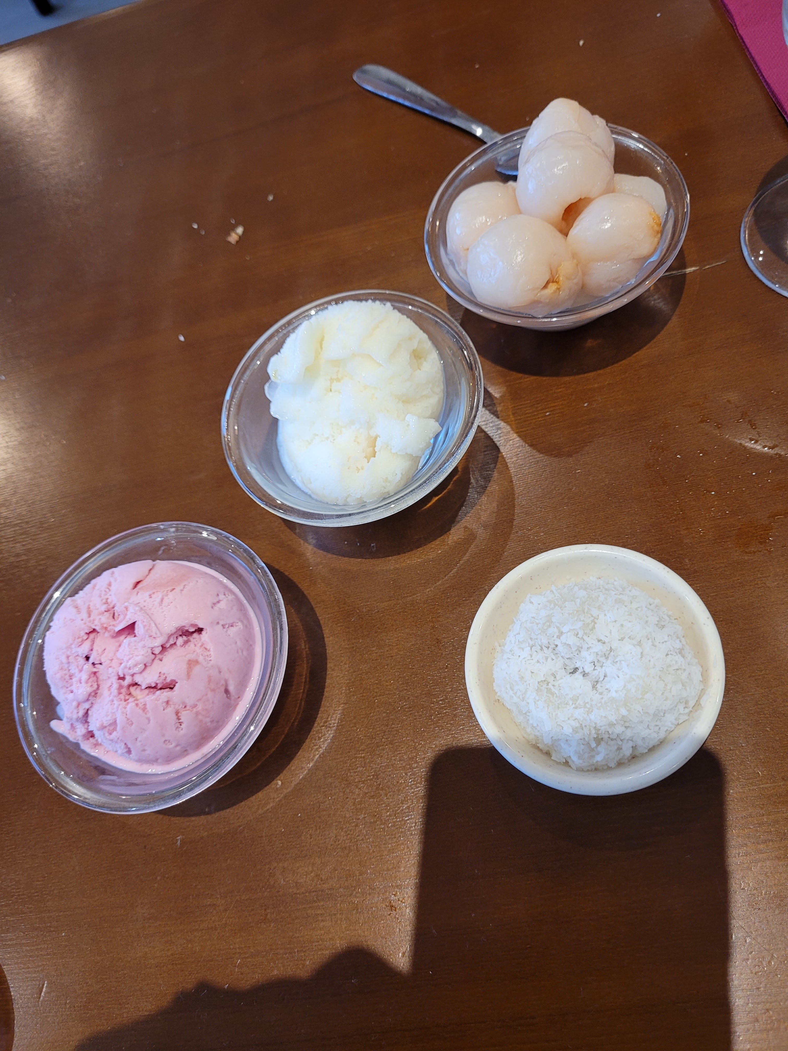 Je précise que je consomme souvent asiatique ..... Les diabolos pris à l'apéritif étaient chauds et sans glaçons... Je n'ai pas apprécié la prise de commande à table par papier, les items commandés sont arrivés au compte goutte, résultat ou l'on mange une partie froide ou au détail... Tous ce qui est frit est trop cuit.... Sourire en option.