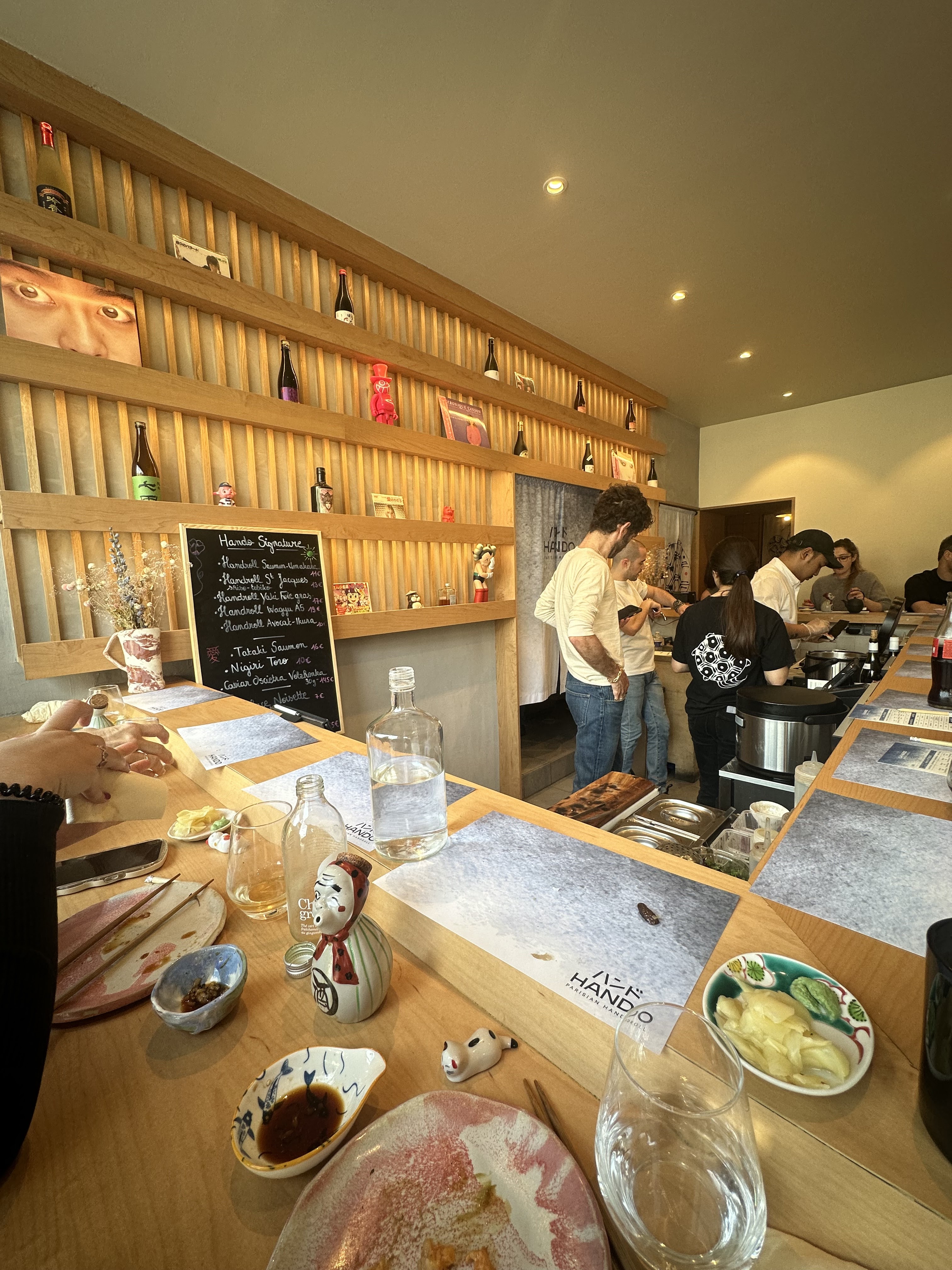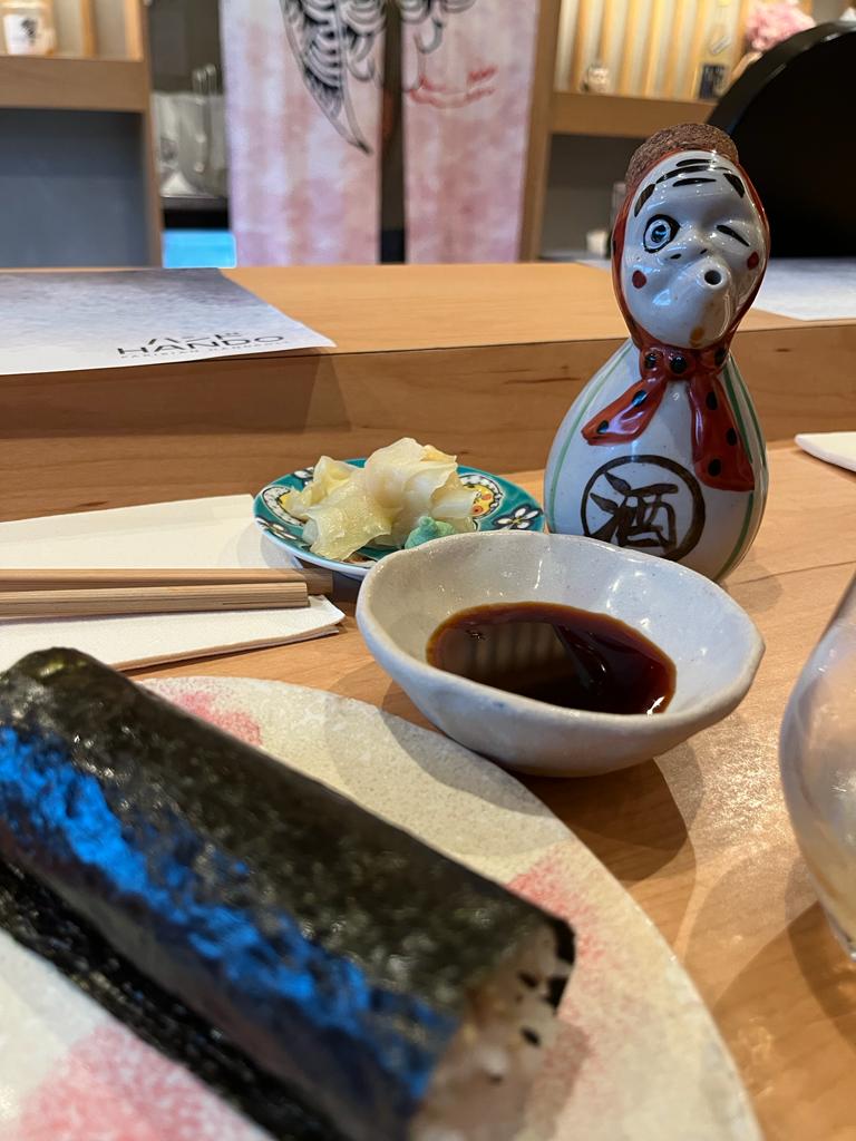 Super soirée passé à Hando. Si vous pouvez, préférez le comptoir (sans resa) car les cuisiniers vous donne directement les rolls. Ils étaient très sympathique et c’est top de pouvoir les regarder faire. On s’est régalé. Pour info, nous avons pris 3-4 rolls par personne + 3 plats à partager à deux.