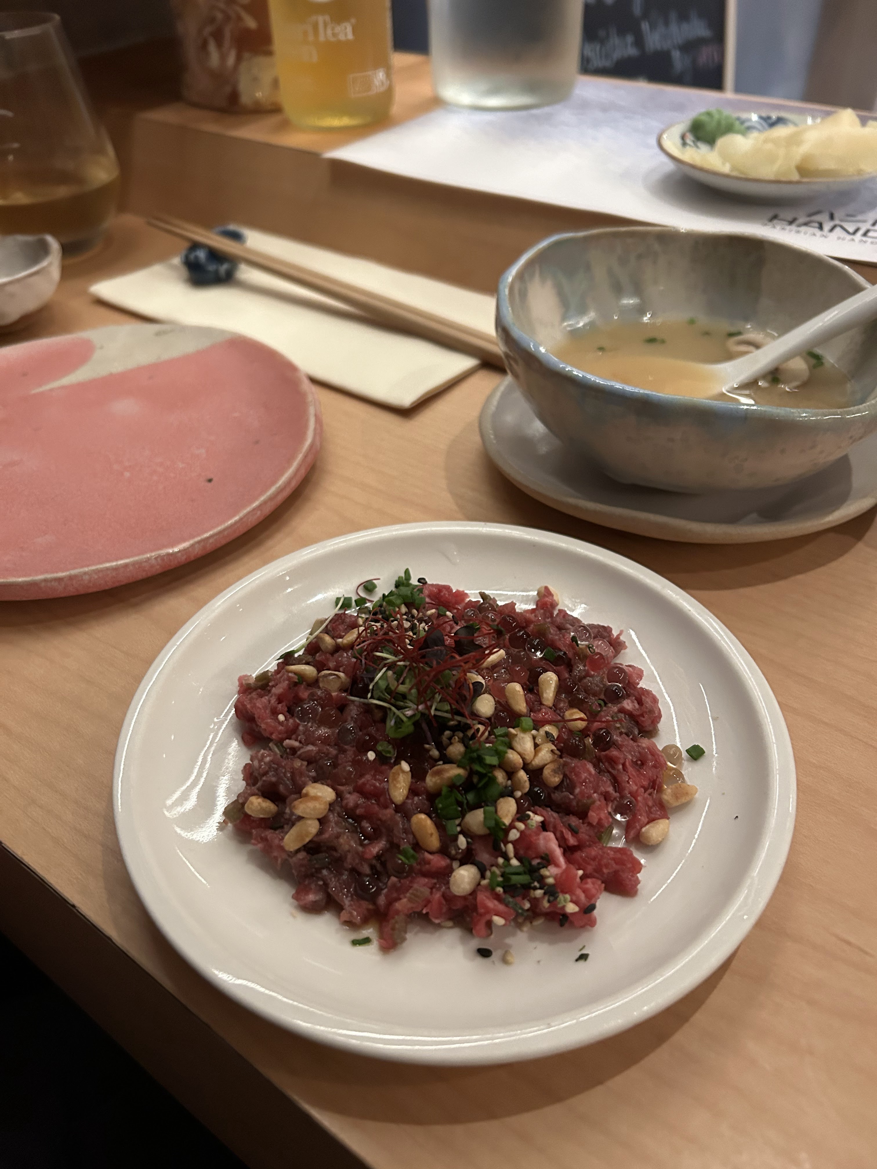 Le lieu est super et ce qu’ils proposent est excellent ! Certes, un petit peu cher mais vaut vraiment le détour si vous voulez manger de la bonne cuisine japonaise !!!! Et les handrolls sont faits à la minute devant vous si vous êtes au comptoir Une très belle expérience et un dîner délicieux