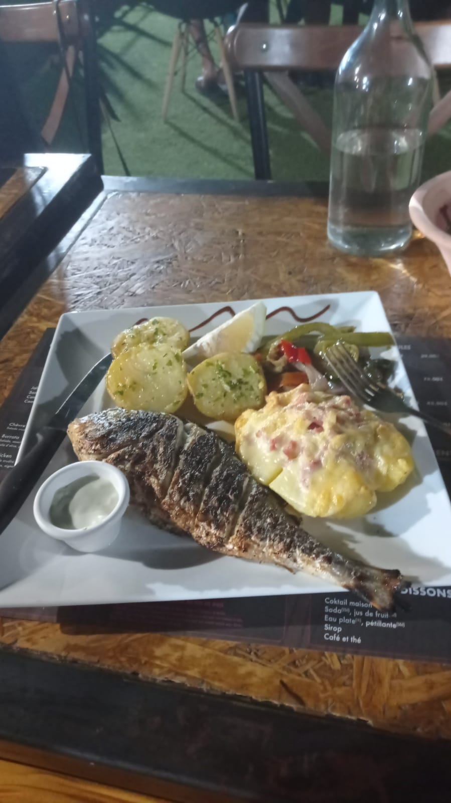 terrasse très agréable personnel aux petits soins j'ai pris la daurade, excellente, les accompagnements aussi rapport qualité prix très intéressant
