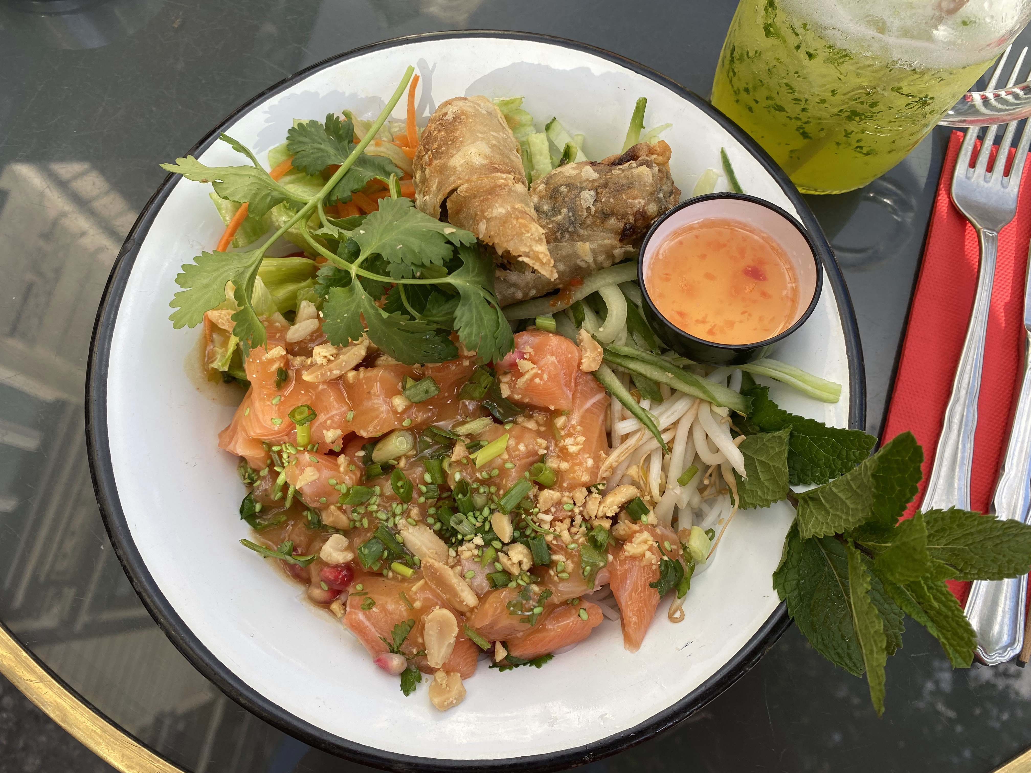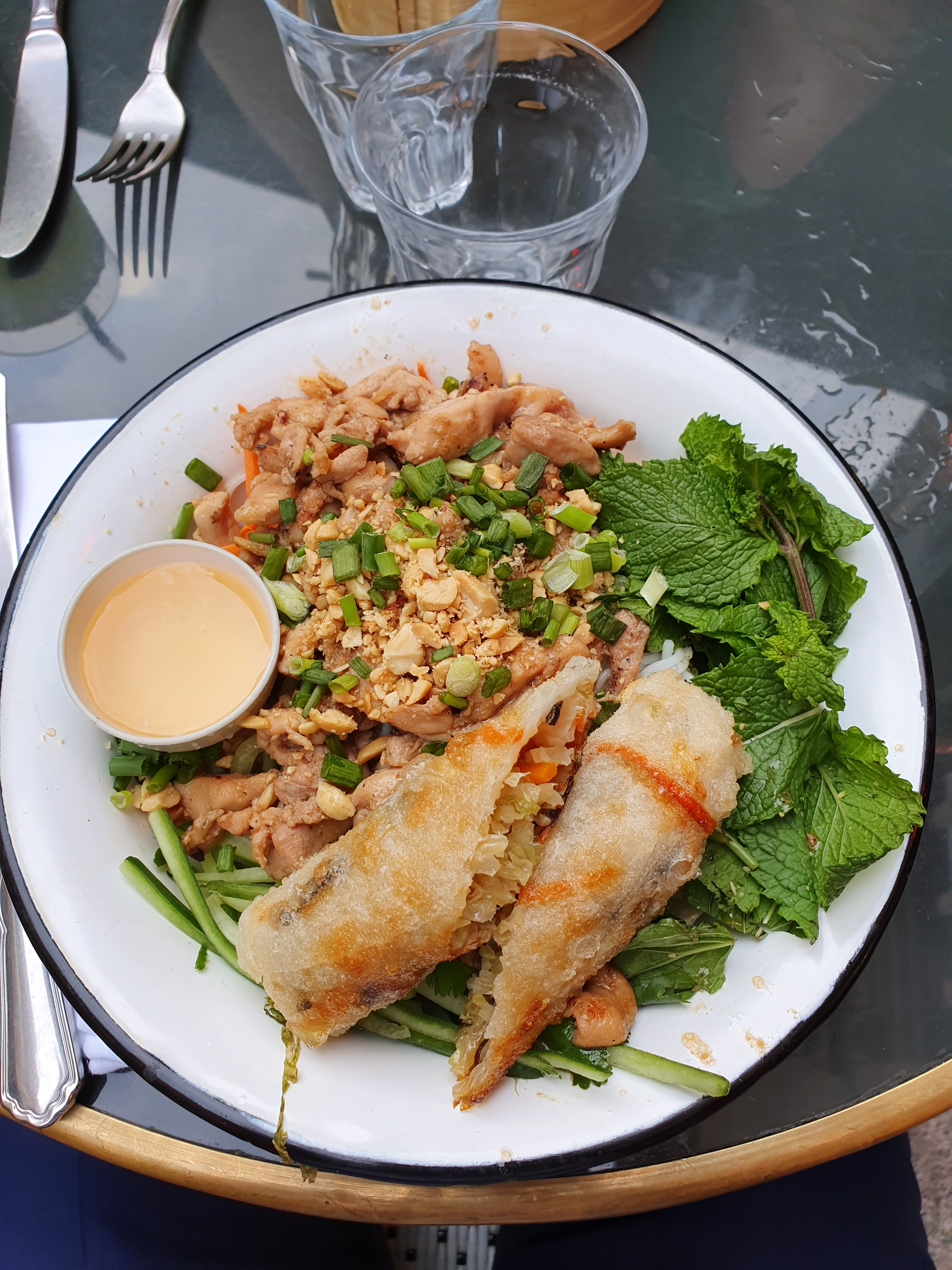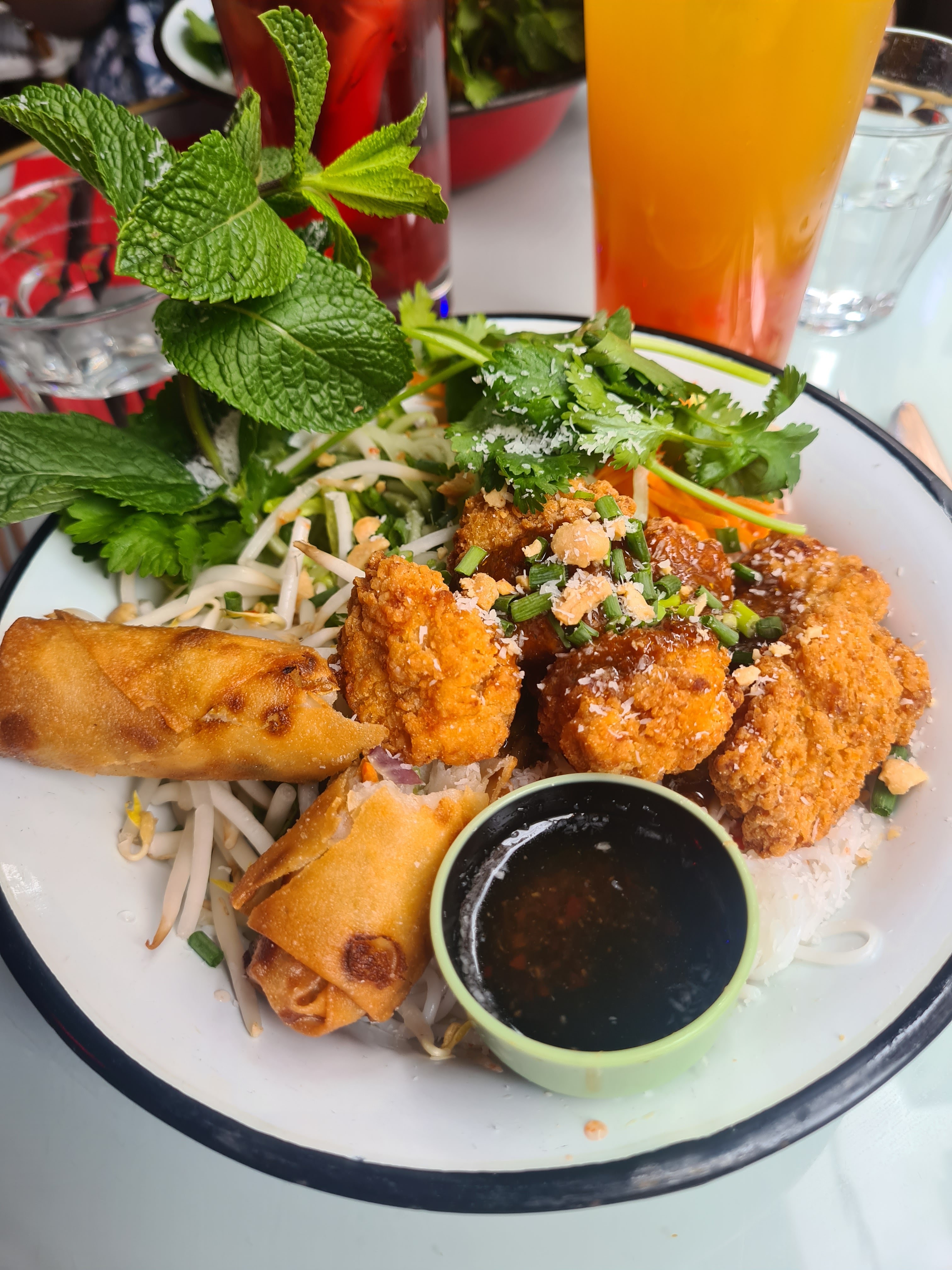 Repas sur place, déco très sympa et accueil au top. Les plats sont très bons. Pour la sauce nems, peut-être proposer la sauce nems classique.