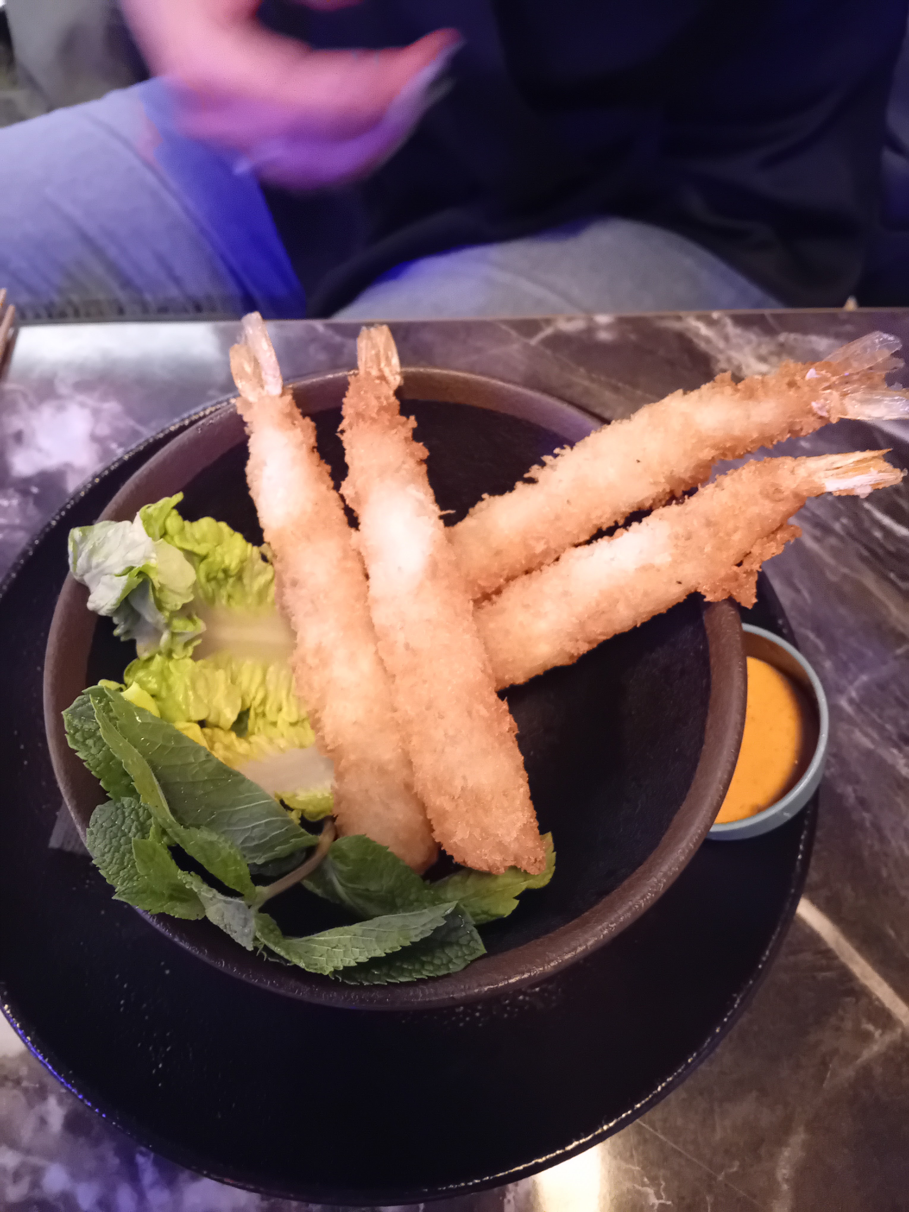 J'ai pris des crevettes en tempura en entrée et le poisson du mois en plat principal. Les tempura crevettes sont surgelées, ce sont les tempura classiques donc très peu de goût. Le plat était insipide, pas de saveurs asiatiques: pas de coriandre, pas de citronnelle, ni d'échalote, ni de sauce poisson...rien qui relève le plat . Triste expérience, je n'y retournerai plus ! Toutefois, le service était très agréable et le personnel très volontaire.