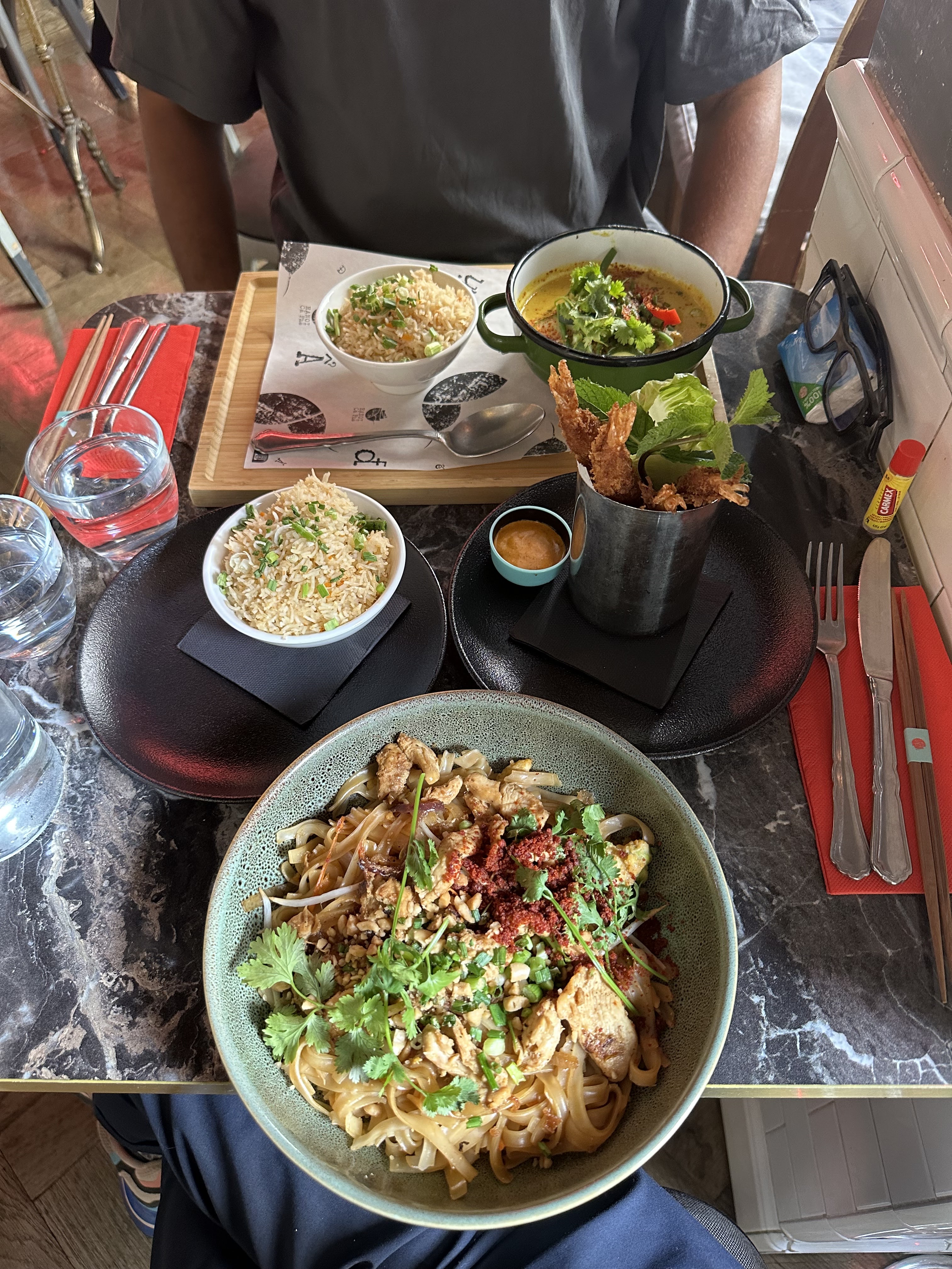 Très déçue de mon plat (nouilles au bœuf) que je n’ai pas pu mangé car piquant (ce n’était pas indiqué), et la viande avait beaucoup de gras. De plus j’ai fait une allergie, grosses plaques rouges qui sont apparues après avoir goûté mon plat… Le lieu est joliment décoré mais les prix sont trop élevés, j’ai vraiment été déçue de mon repas, et mes amies l’étaient également (pad thai au poulet, bo bun…). Par ailleurs , 2 d’entre nous avons été malade le soir même…