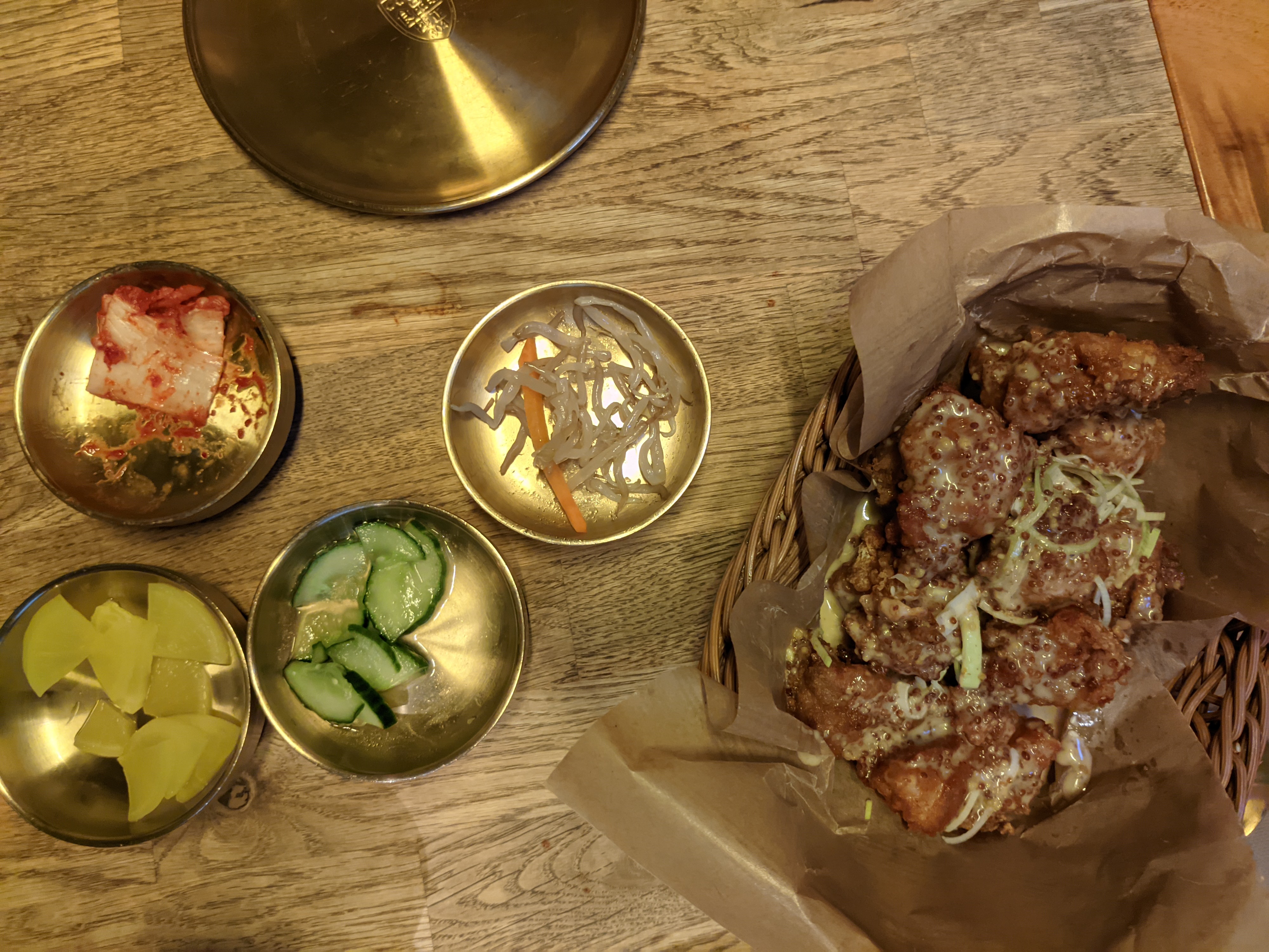 Beau restaurant coréen, qui permet de manger rapidement même en fin de service (22h!). Les bibimbaps étaient délicieux, tout comme les accompagnements de légume fermentés qui vont avec. Le poulet frit signature est top à partager avec ça. Bravo aux cuisines et merci pour l'accueil.