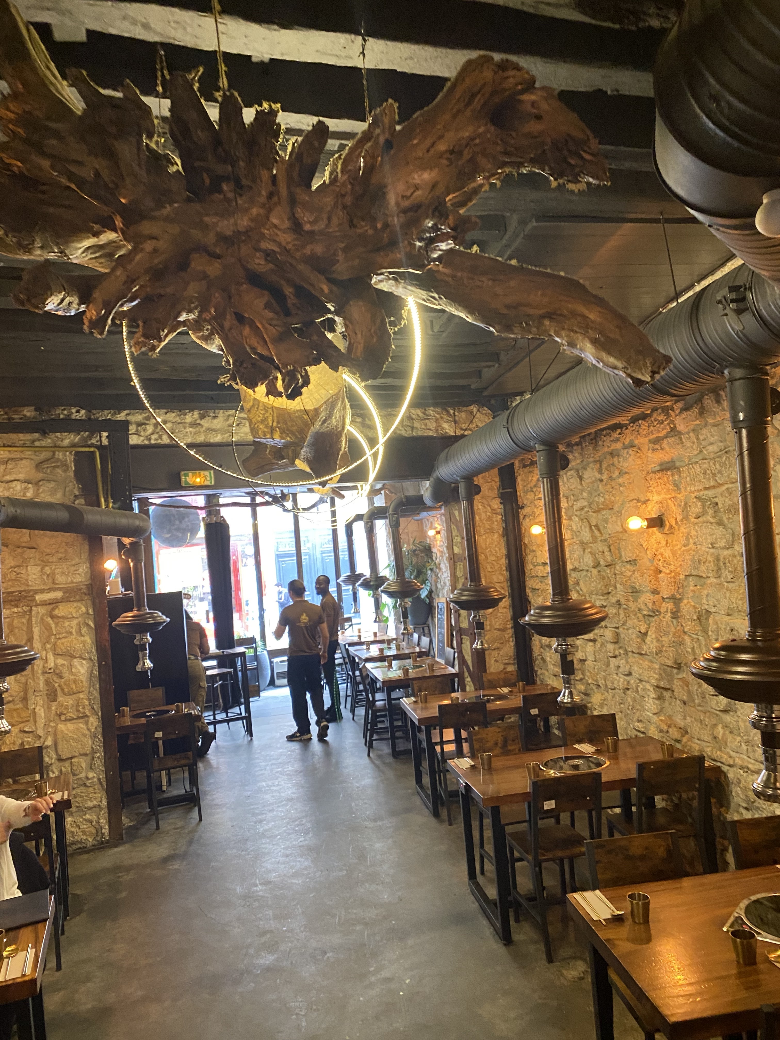 Belle surprise! Petite devanture mais grande salle cathédrale. Ambiance typique très agréable. Sobre et spacieux. Nous étions les premières donc le service a été ultra rapide. Repas typique et délicieux!! Dépaysement assuré! Merci à Loulou et son acolyte tatoué :) Une adresse à retenir!