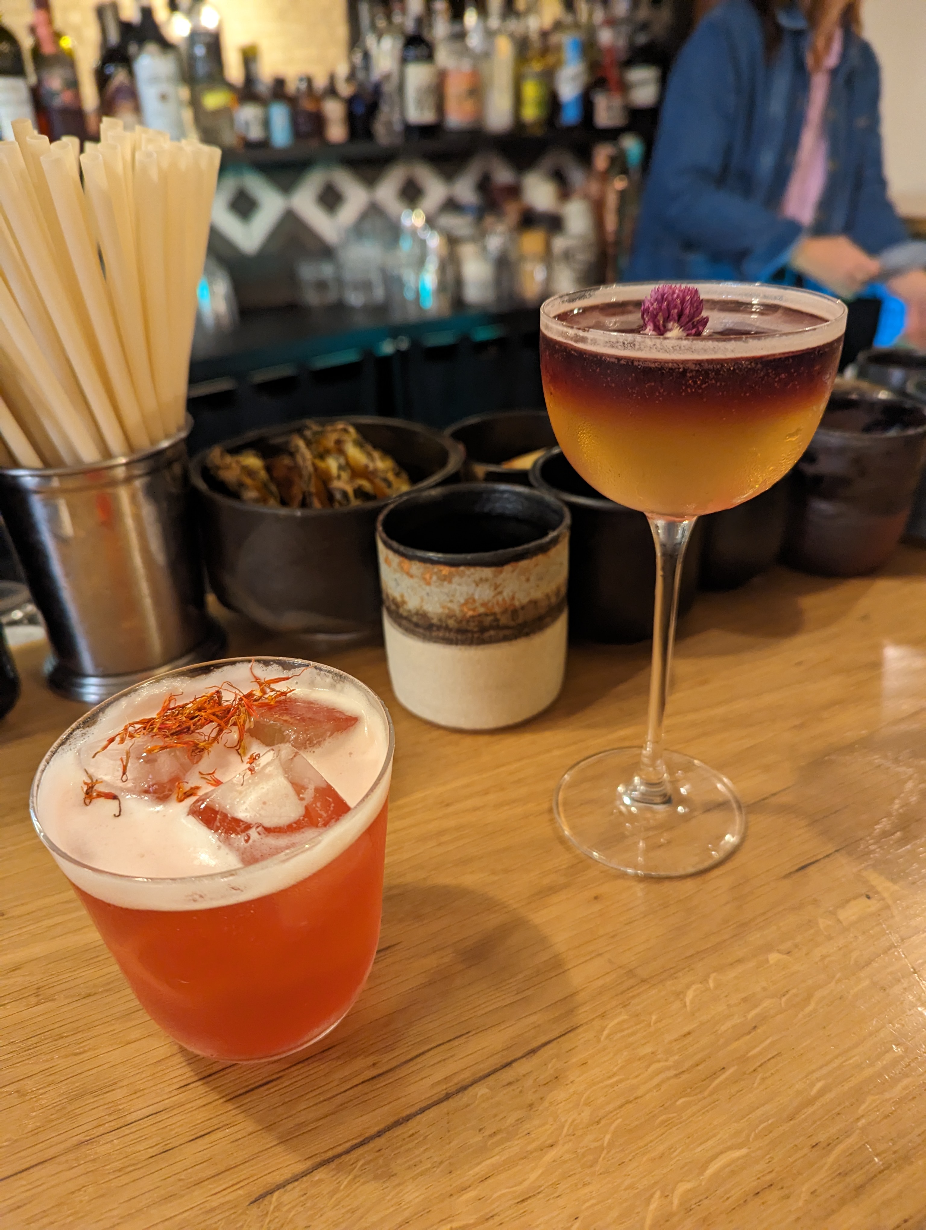 Fantastique . Nous avons passé une merveilleuse soirée. L’ambiance est chaleureuse, le personnel souriant et aux petits soins. Les cocktails sont délicieux et raffinés. Si vous êtes assis au comptoir, le barman vous offrira un véritable spectacle. Les plats sont parfaits également. Une carte courte, mais sans faille. Bref, c’était parfait, nous reviendrons !