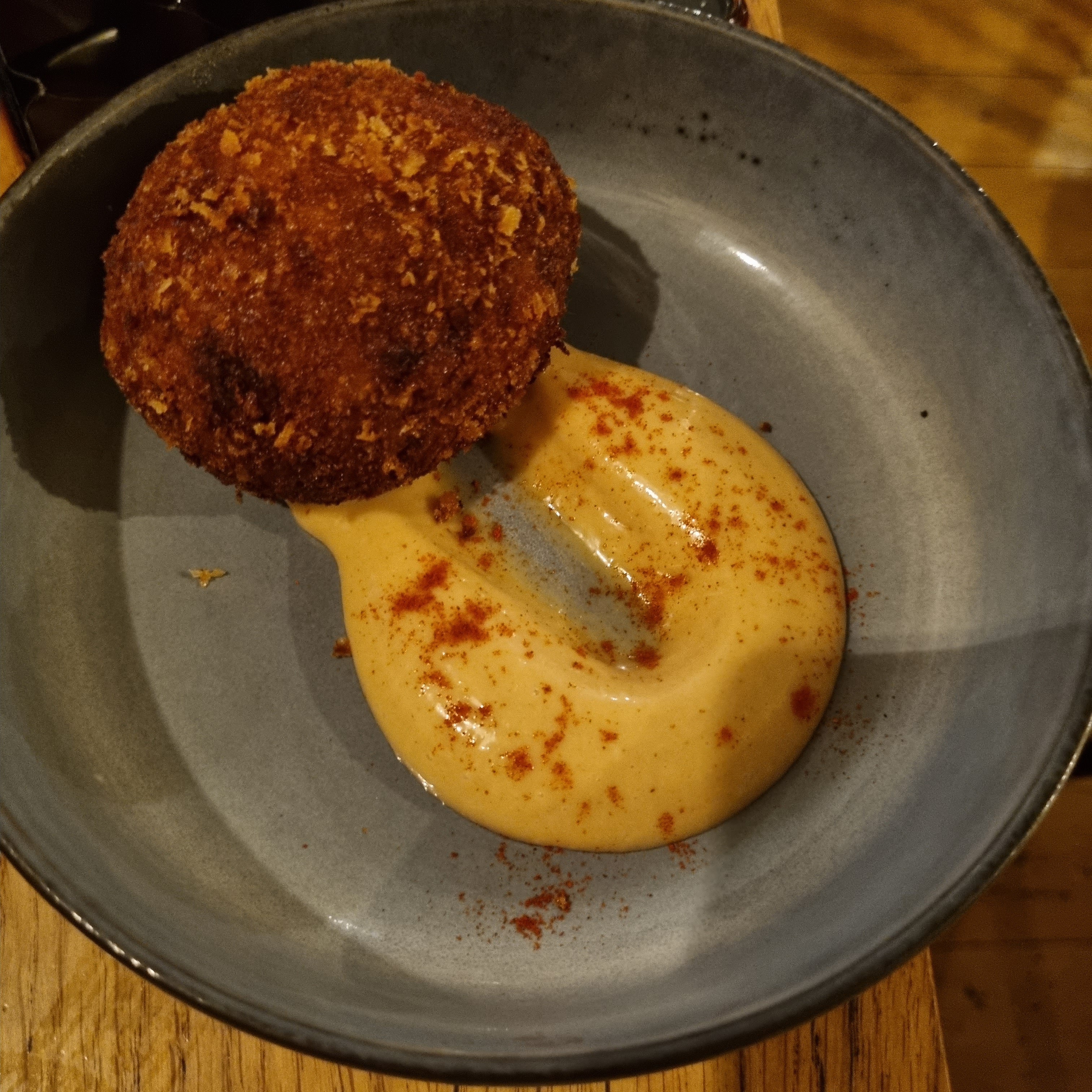 Délicieux arancini et côtes levées. Le poulet au curry était bon et l'œuf écossais était correct.