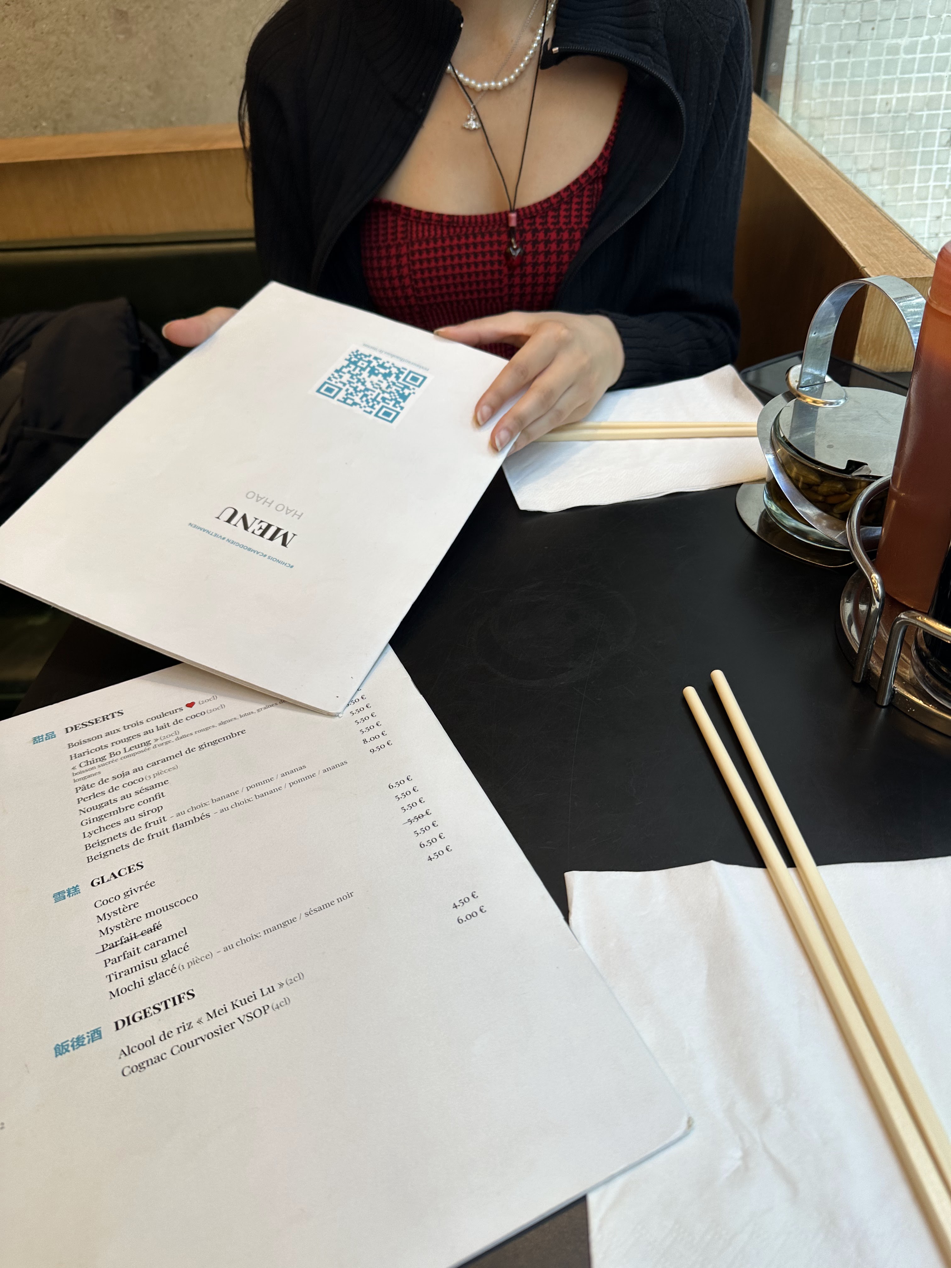 Cliente régulière, ça faisait longtemps que je n’étais pas venue. Bon service, plutôt rapide. Les plats sont bons notamment leur grand classique Bœuf Lôc Lac. Coté dim sum c’est plutôt moyen : les hakao n’ont pas l’air fait maison, les pattes de poulet ne sont pas assez parfumées, et pareil pour les rouleaux de printemps au bœuf grillé et mangue. Petit 4 étoiles si l’on compare avec les autres restaurants du quartier. Cela reste néanmoins une bonne adresse. + : le cadre et le le bouillon de viande servi à la demande, très bon et réconfortant. -: le pichet de thé glacé parfumé est presque aussi cher qu’un plat (8,50€) …