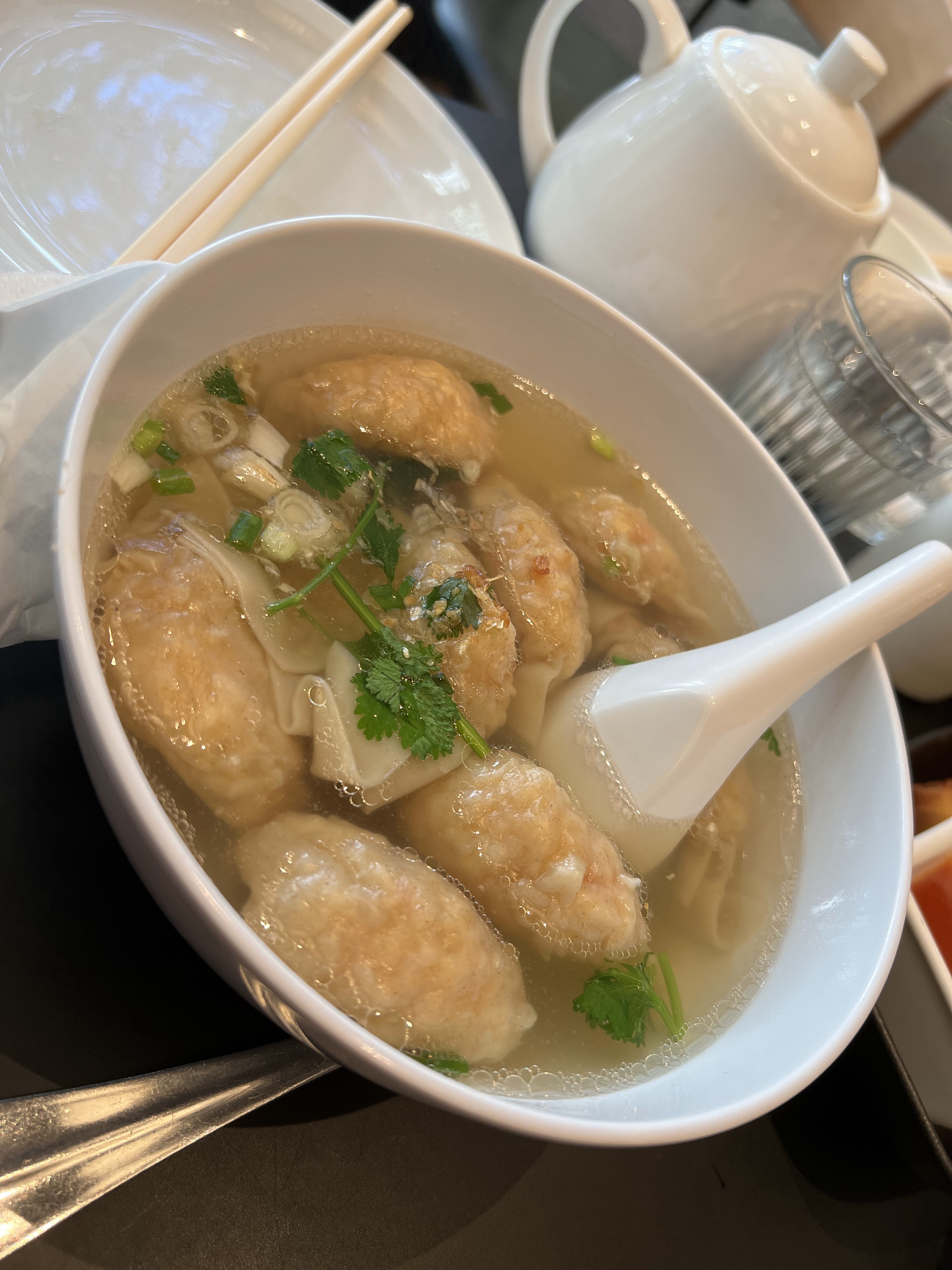 Depuis le changement de décor, le cadre est beaucoup plus agréable et la cuisine est toujours aussi bonne . Mon plat favori la soupe aux ravioli crevettes et porc avec des nouilles .... un petit régal ! Je vous conseille grandement . J y ajoute une sauce saté et huître qui donne cette couleur orange !