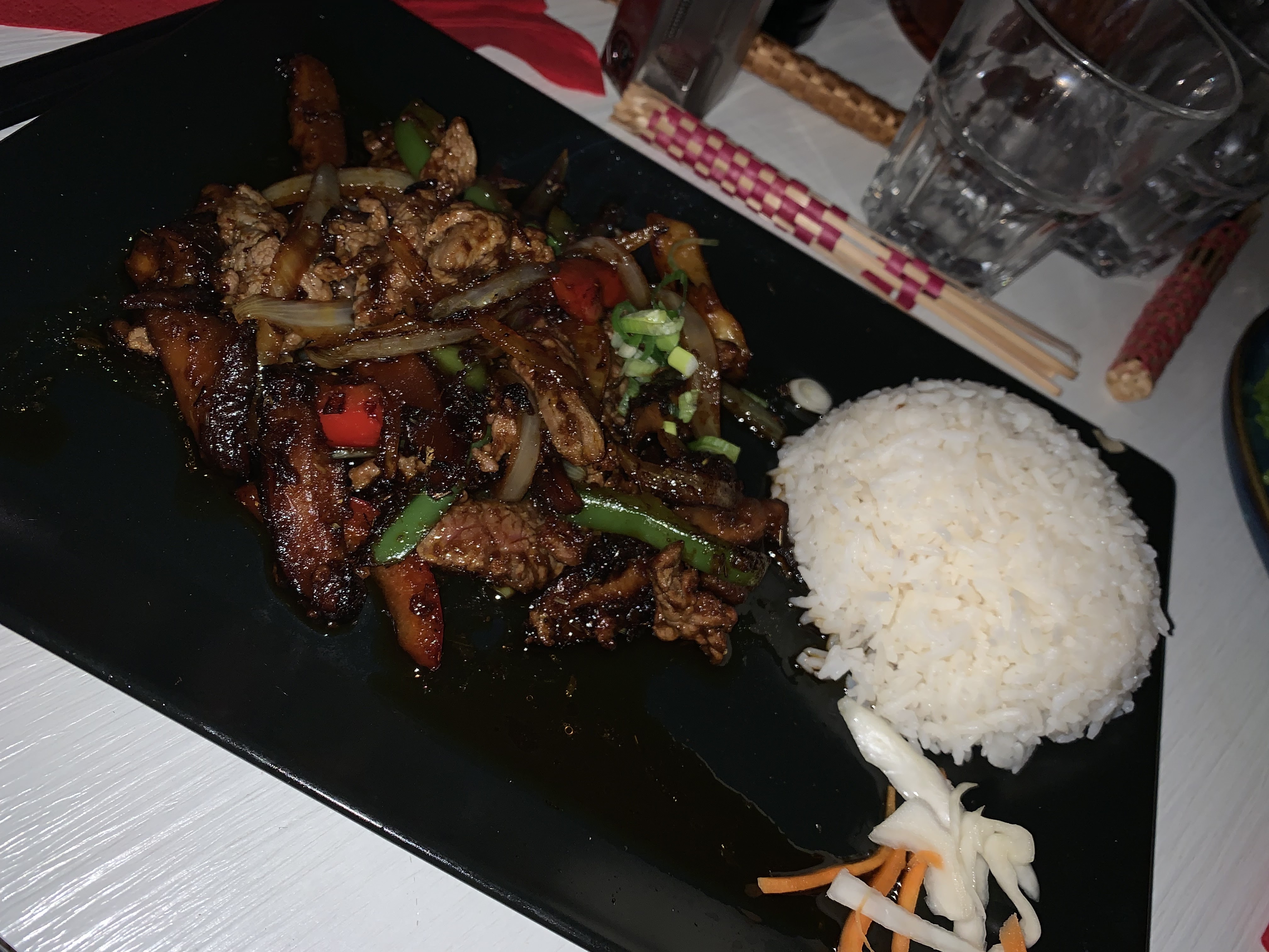 Le meilleur bœuf aux oignon que j'ai mangé. La cuisine est un régal. Et contrairement à des avis lus, le service est agréable et souriant