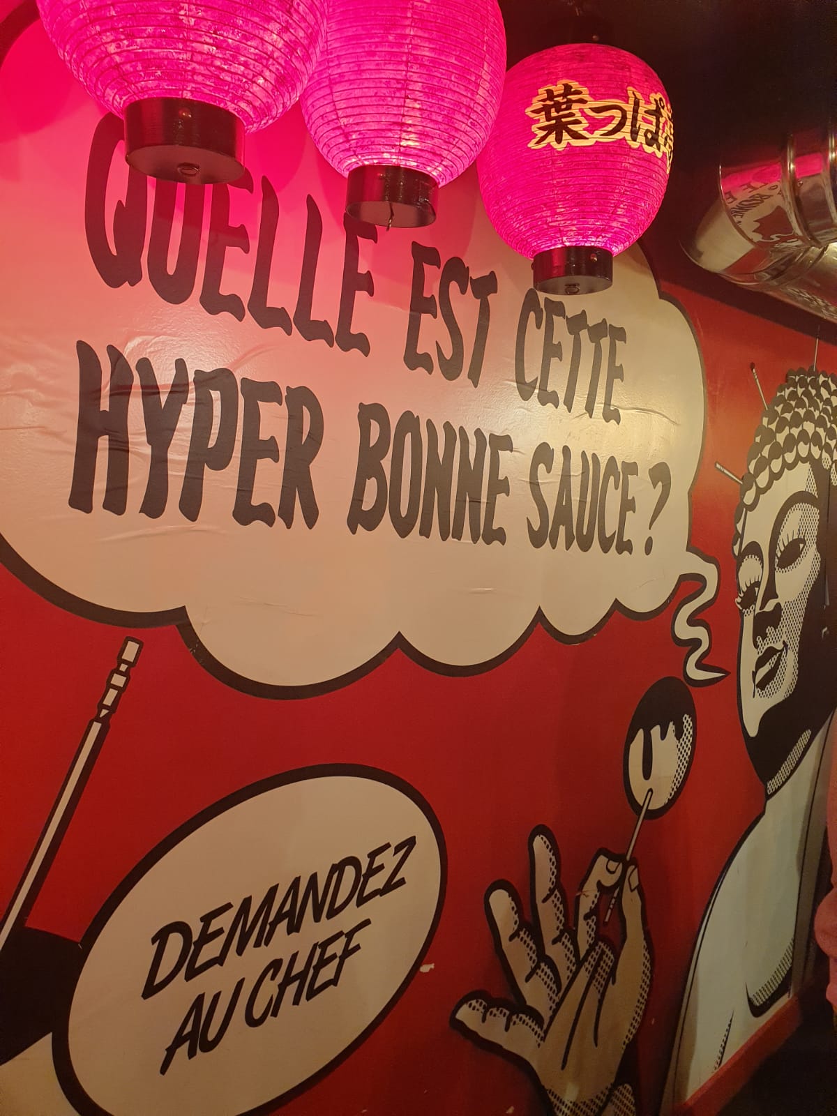 Japon en ligne de mire, un restaurant presque comme là-bas .. on peut voir les cuisiniers à l’œuvre et la bonne ambiance est de mise. (33 euros pour 2 personnes) Entrée Takoyaki( boulette de pâte fourré au poulpe) j’ai adoré ! A suivre : okonomiyaki une crêpe de choix complète et dense. 15 euros ça peu faire cher mais: c’est un repas complet et bien servi ( pas radins sur les crevettes ou le porc.. ). Sorti de ces deux plats partagés à 2, on a plus faim, mais un petit dessert maison ça se refuse pas:.Taiyaki aux haricots rouges( petite gaufre bien consistante) pour s’achever. Résumé? FONCEZ ! TOUT EST DÉLICIEUX !!! Seul bémol : il y à foule au portillon , choisissez vos heures ( tôt) et votre journée !