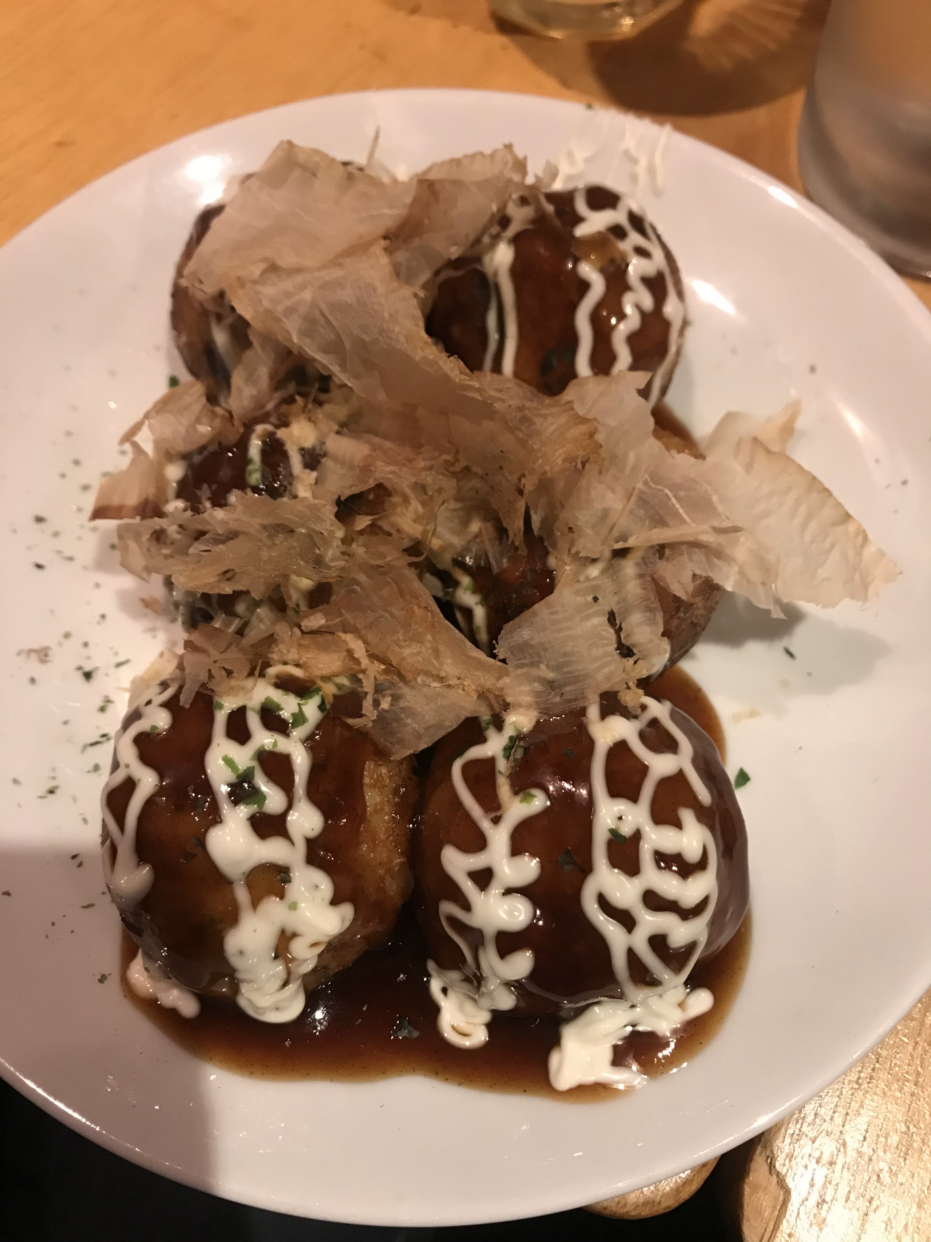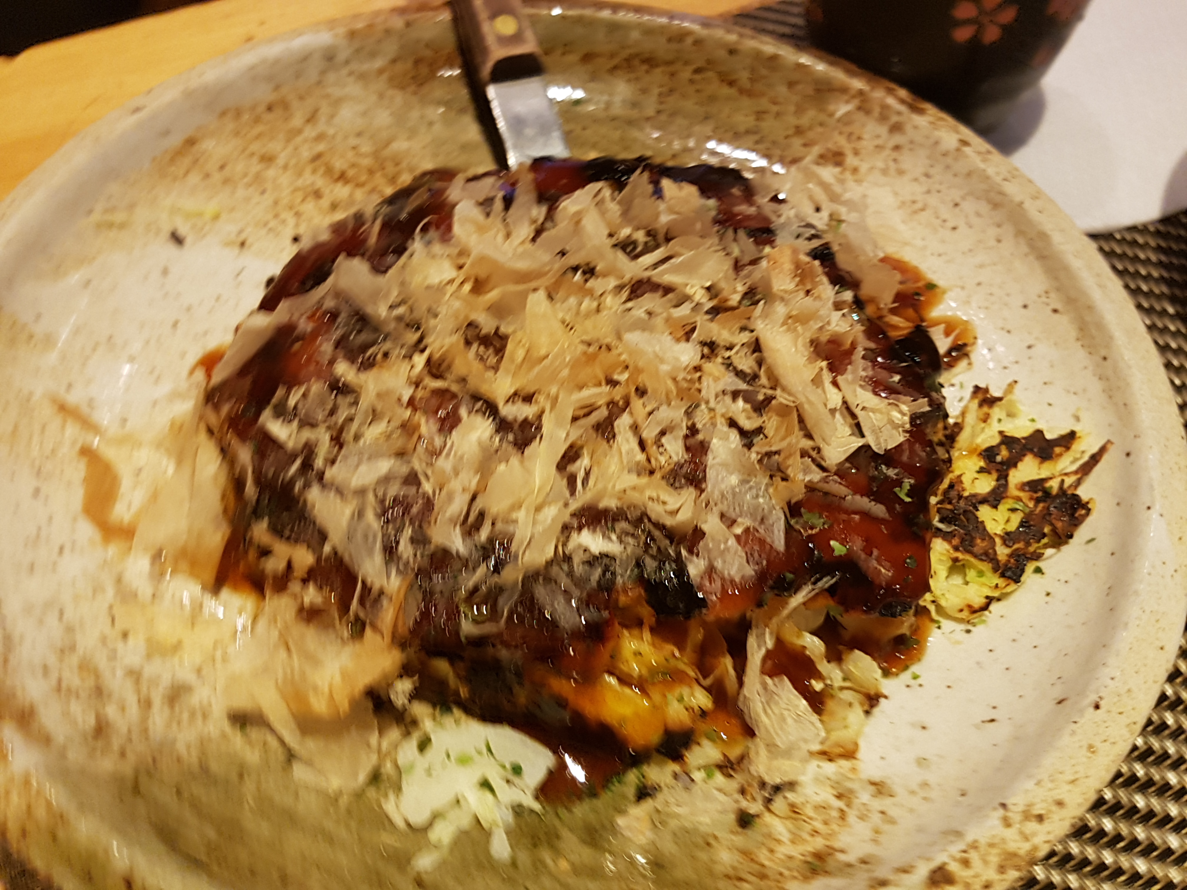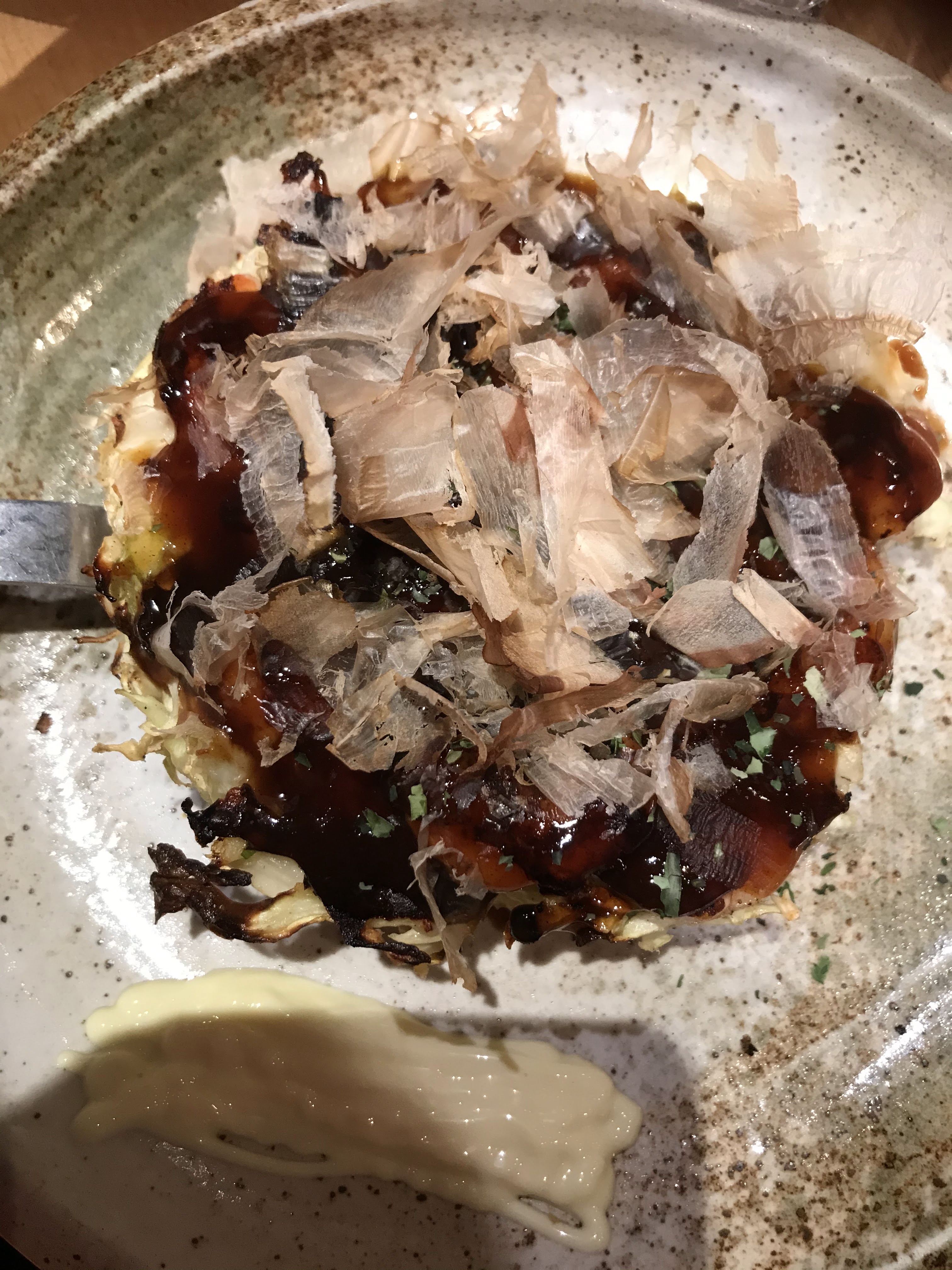 L’okonomiyaki crevette était bonne, cependant déçue des Takoyaki: très très peu de poulpe à l’intérieur.