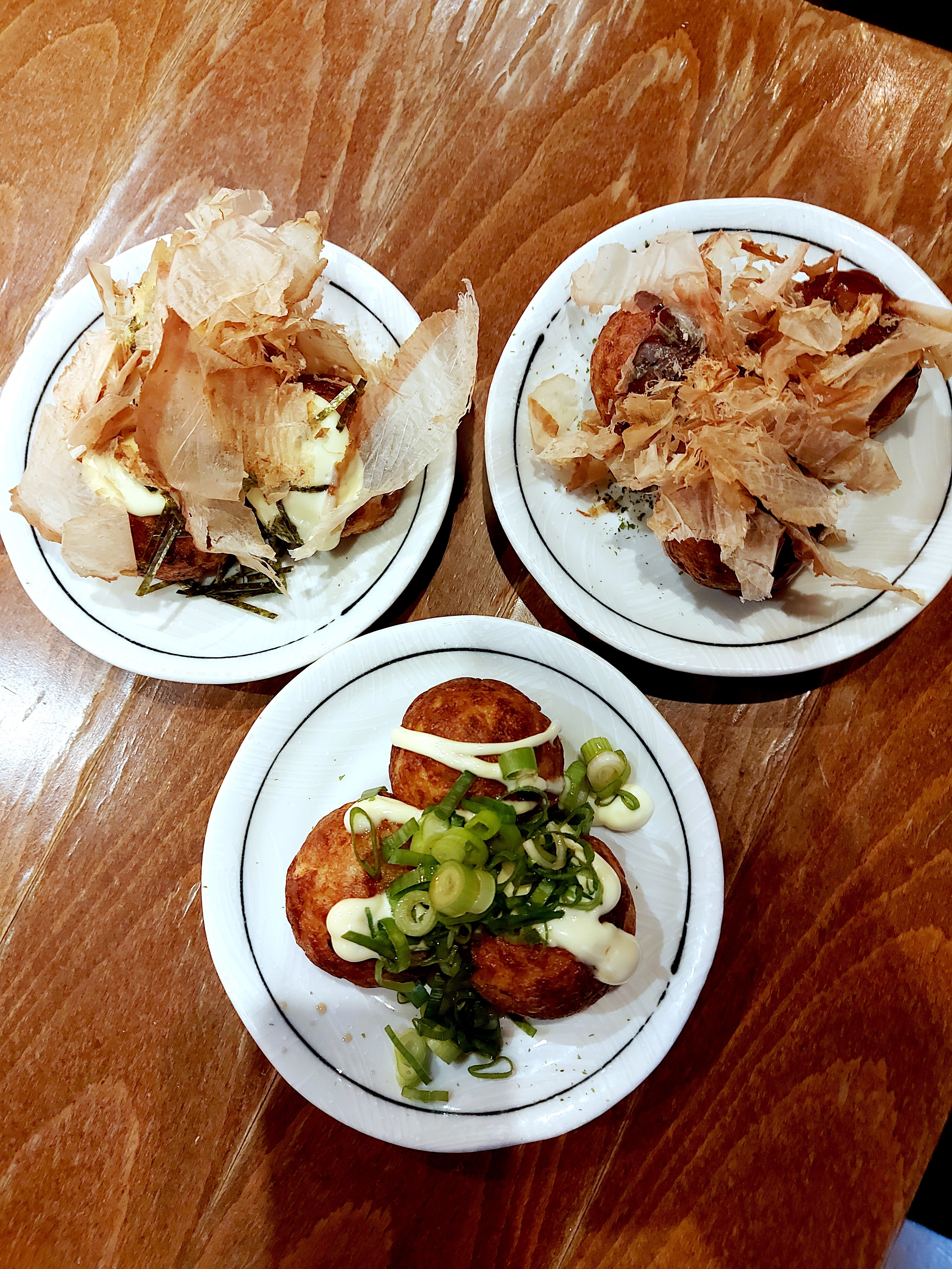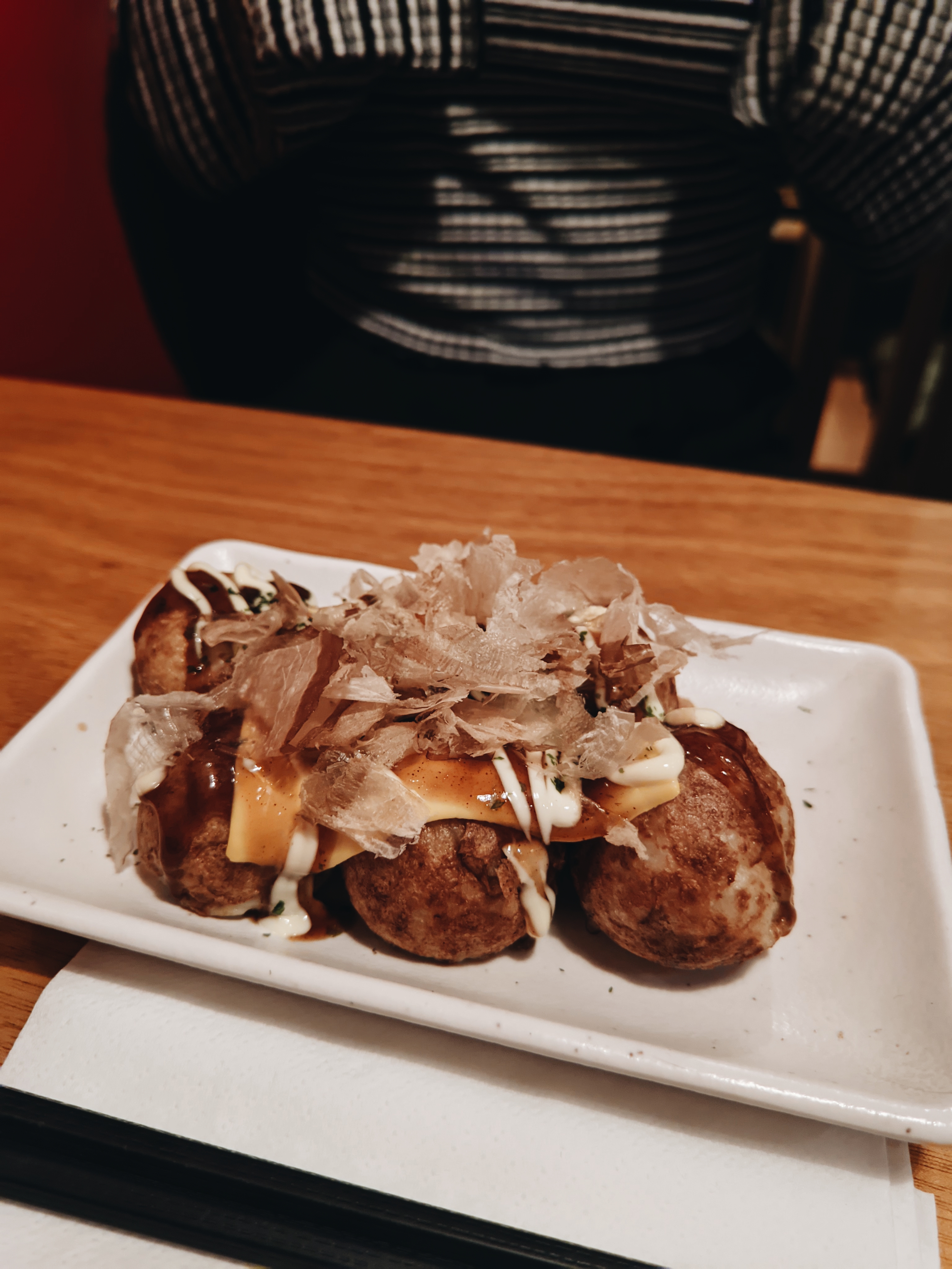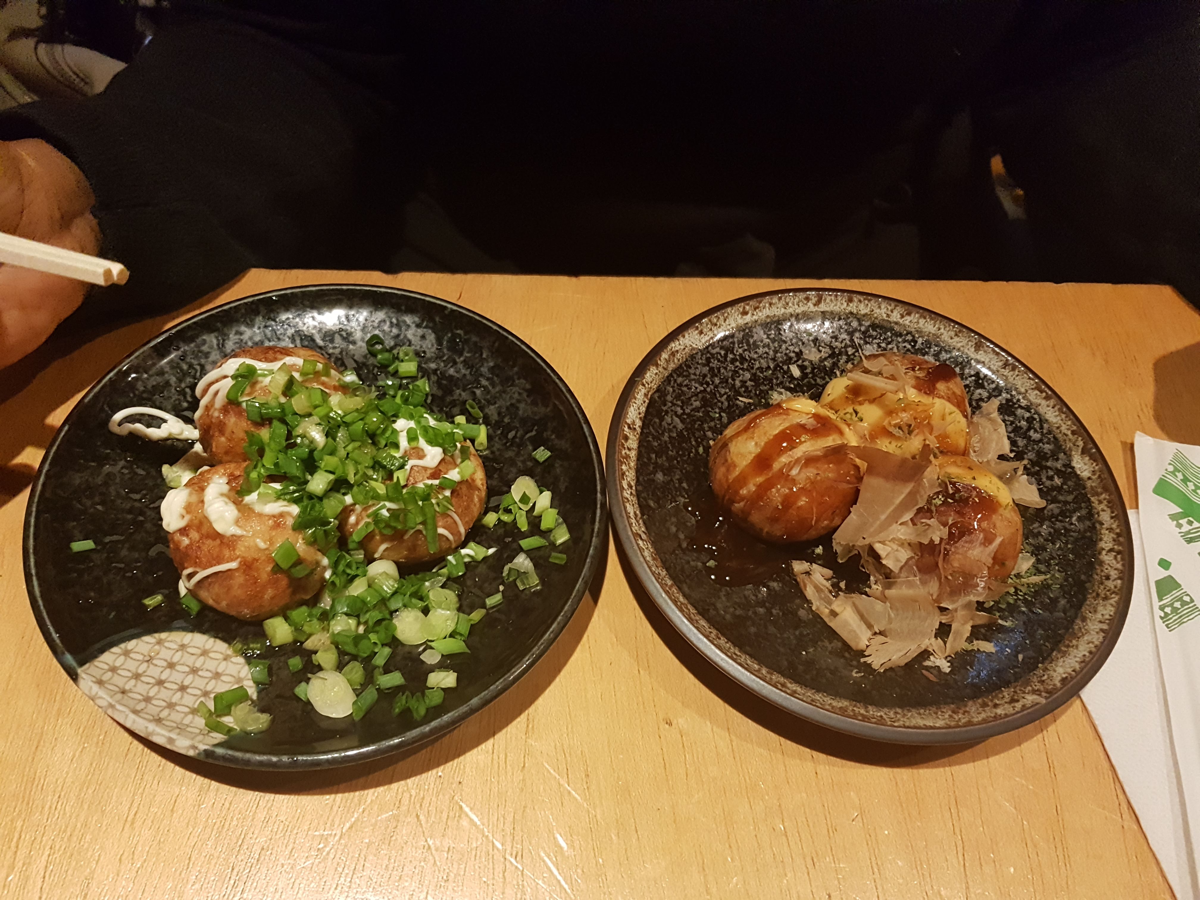 Je vous recommande, si possible pour vous, d'y aller à l'heure du déjeuner en semaine : il y a des prix beaucoup plus attractifs avec des menus avec takoyakis et okonomiyakis et il y a moins de monde et de queue que les soirs et weekends. Je trouvais que c'était trop cher le soir. Si vous ne connaissez pas ces boules de poulpe, attention à ne pas vous brûler lors de la première bouchée car c'est très chaud et un peu liquide à l'intérieur.