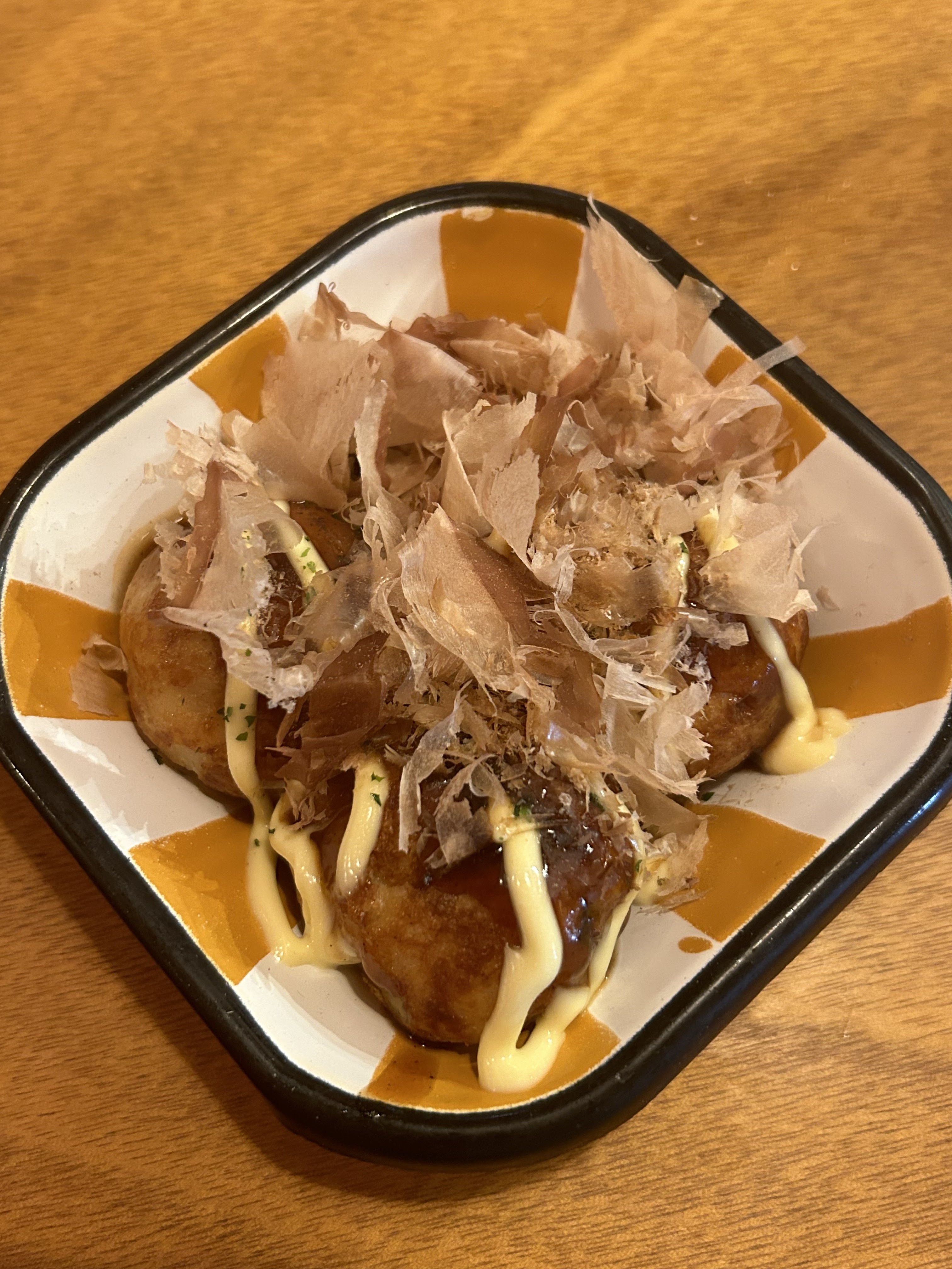 Délicieux Takoyaki, avec beaucoup de variété au choix ! Ce restaurant met à disposition des petits paniers pour pouvoir mettre leur sac et vêtement. Comme le restaurant est petit, cela reste très pratique. En tout cas, les sauces et les poulpes sont vraiment un régal !