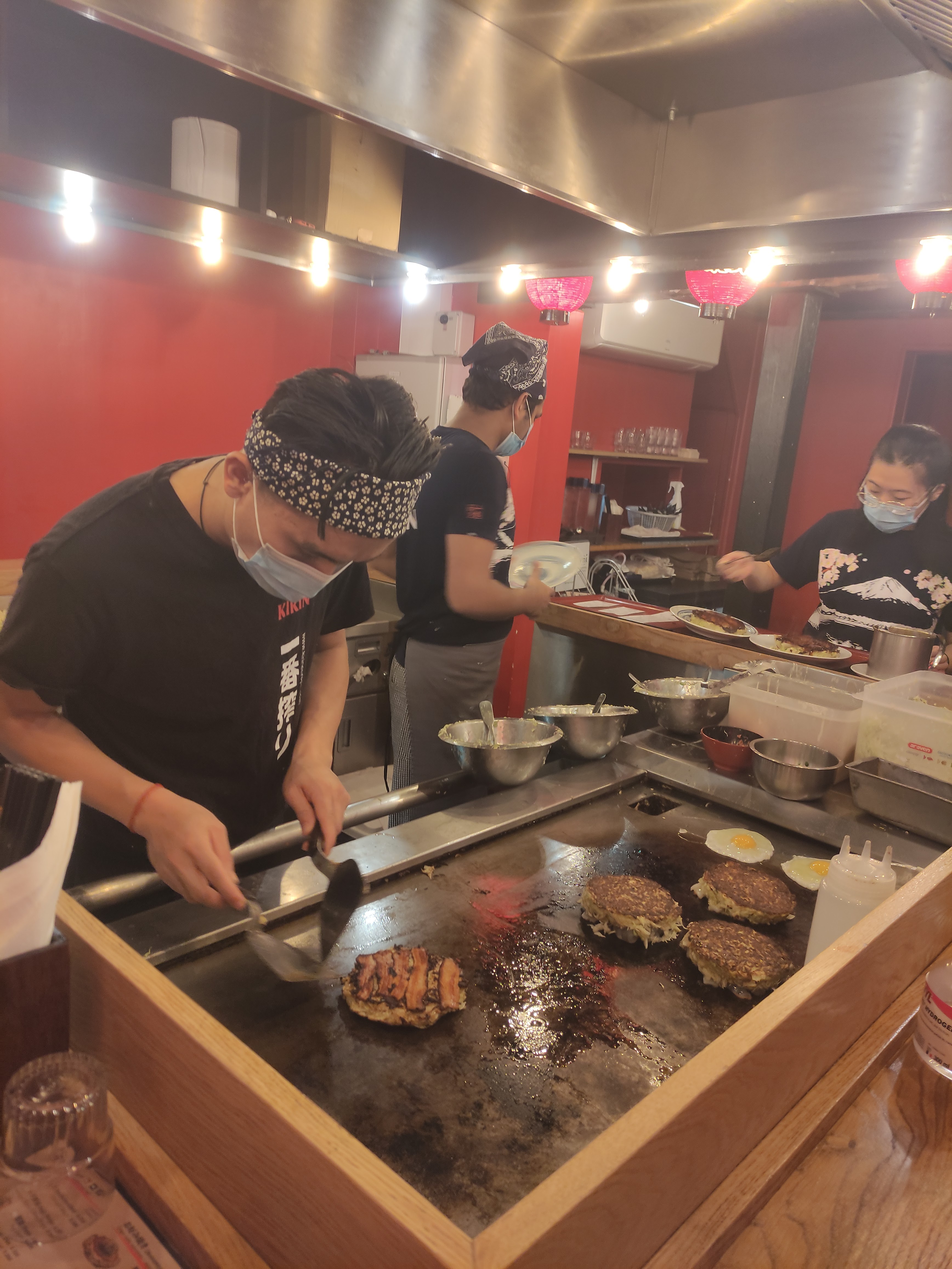 Bonne découverte, un restaurant trouvé par hasard ou j'ai pu déguster la fameuse omelette japonaise OKONOMIYAKI aux crevettes ! C'était très bon, je recommande ce restaurant. Le service était très rapide et le personnel réactif. L'ambiance est sympa, tout est cuisiné en face de vous, une immersion totale en cuisine haha ! À faire 🇯🇵