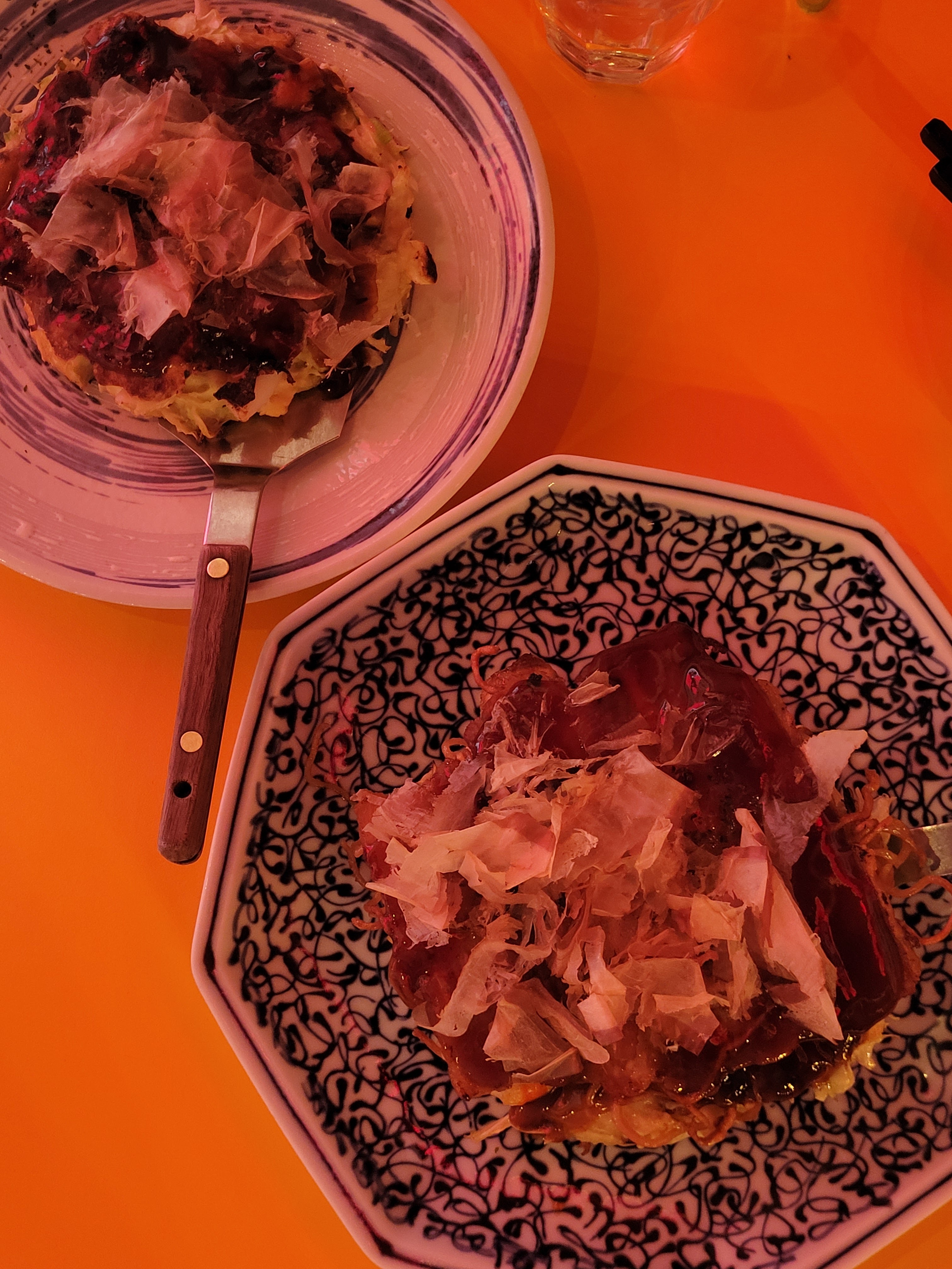 Une pause sympatique et bien typique d'okonomiyaki et de tacoyaki. Je le recommande 🤗