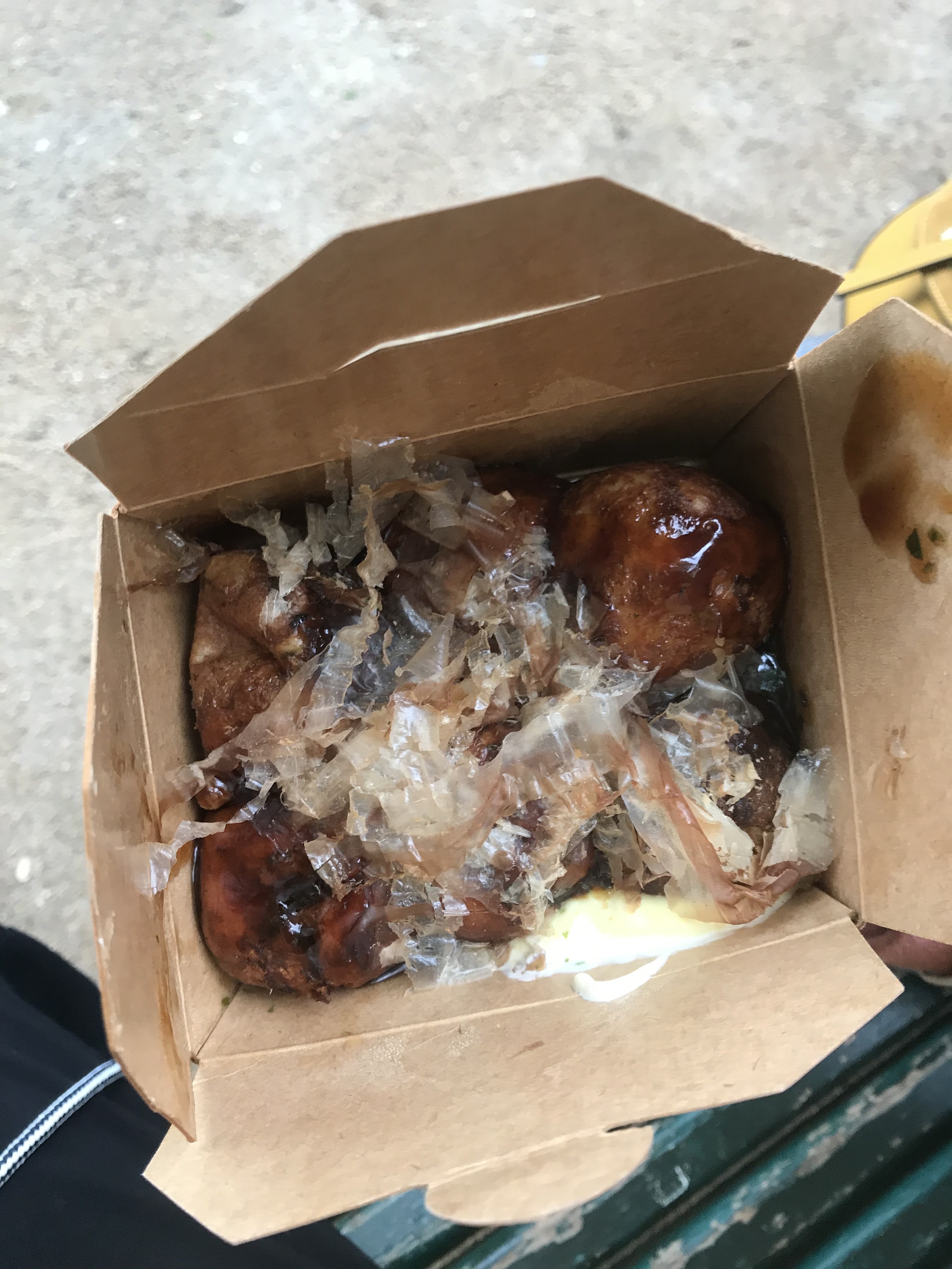 Les takoyakis à l'emporter étaient malheureusement très fades, froids , et le tayaki au matcha, était complètement cru et froid. Quel dommage et quelle déception