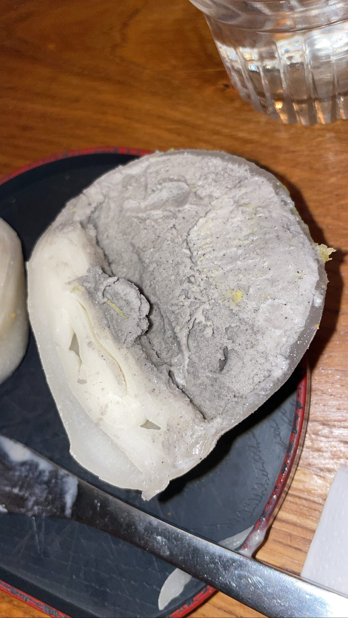 Les takoyaki étaient vraiment très bons 😋 Nous avons toutes les 6 beaucoup aimé. Nous avons pris des taiyaki au matcha et des mochi au sésame noir en guise de dessert. J'ai trouvé le taiyaki bon mais je trouve qu'il n'y avait pas suffisamment de pâte au matcha à l'intérieur, c'est dommage. Celles qui ont pris le mochi l'ont trouvé bon. Aucune de nous ne s'attendait à ce que les mochi soient aussi gros, rien à voir avec ceux qu'on a l'habitude de voir dans les restos coréens.