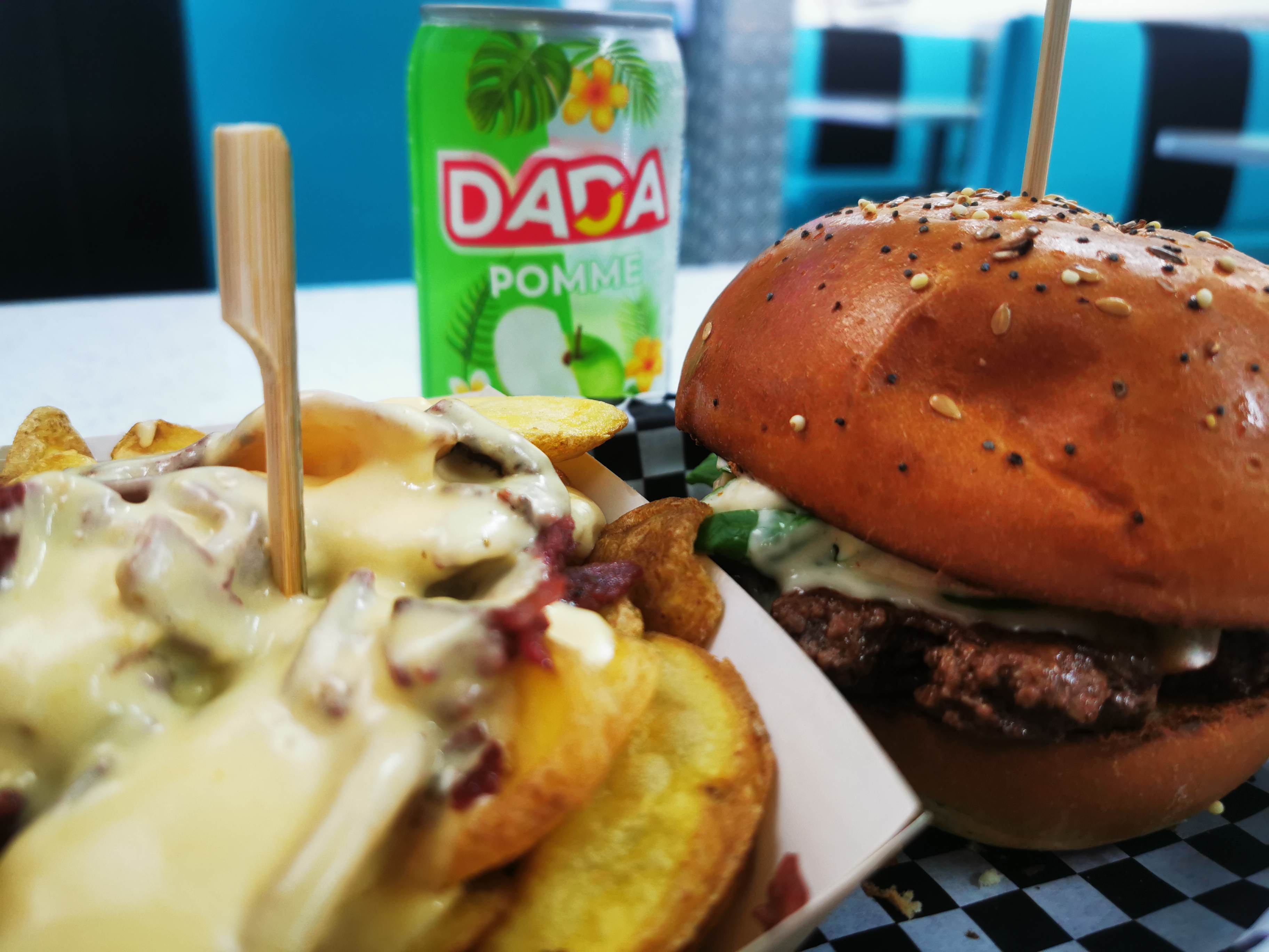 Les burger sont copieux, mais le cheddar des frites laisse à désirer. Par ailleurs, l'intérieur est assez sombre.