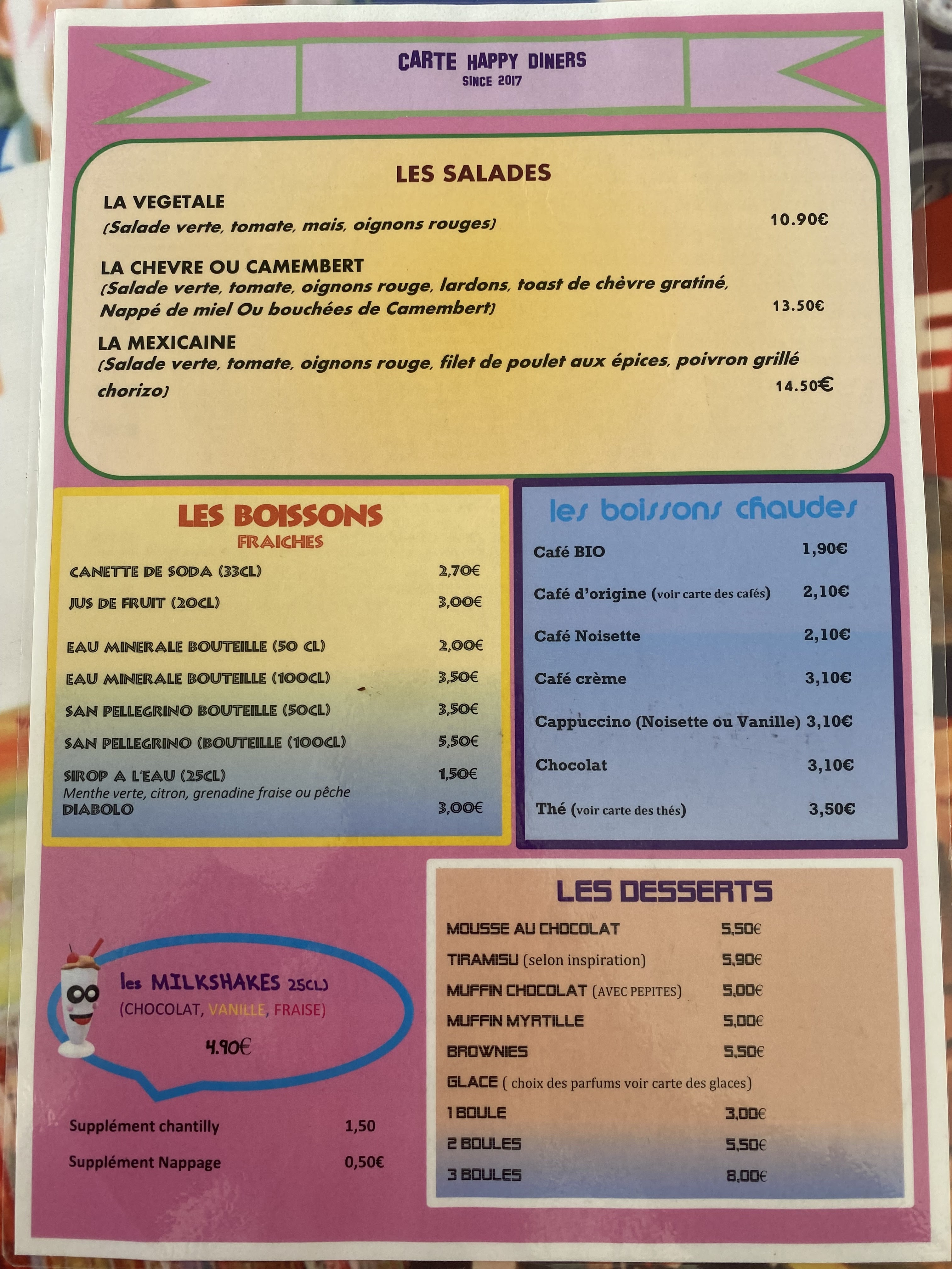 Quelle SURPRISE , l accueil est chaleureux , les plats généreux et bon . Produits frais ,frites fraîche bonne, en quantité .Hamburger un vrais régal. Oublié le MAC et foncé à HAPPY DINER ,vous ne serez pas déçu.