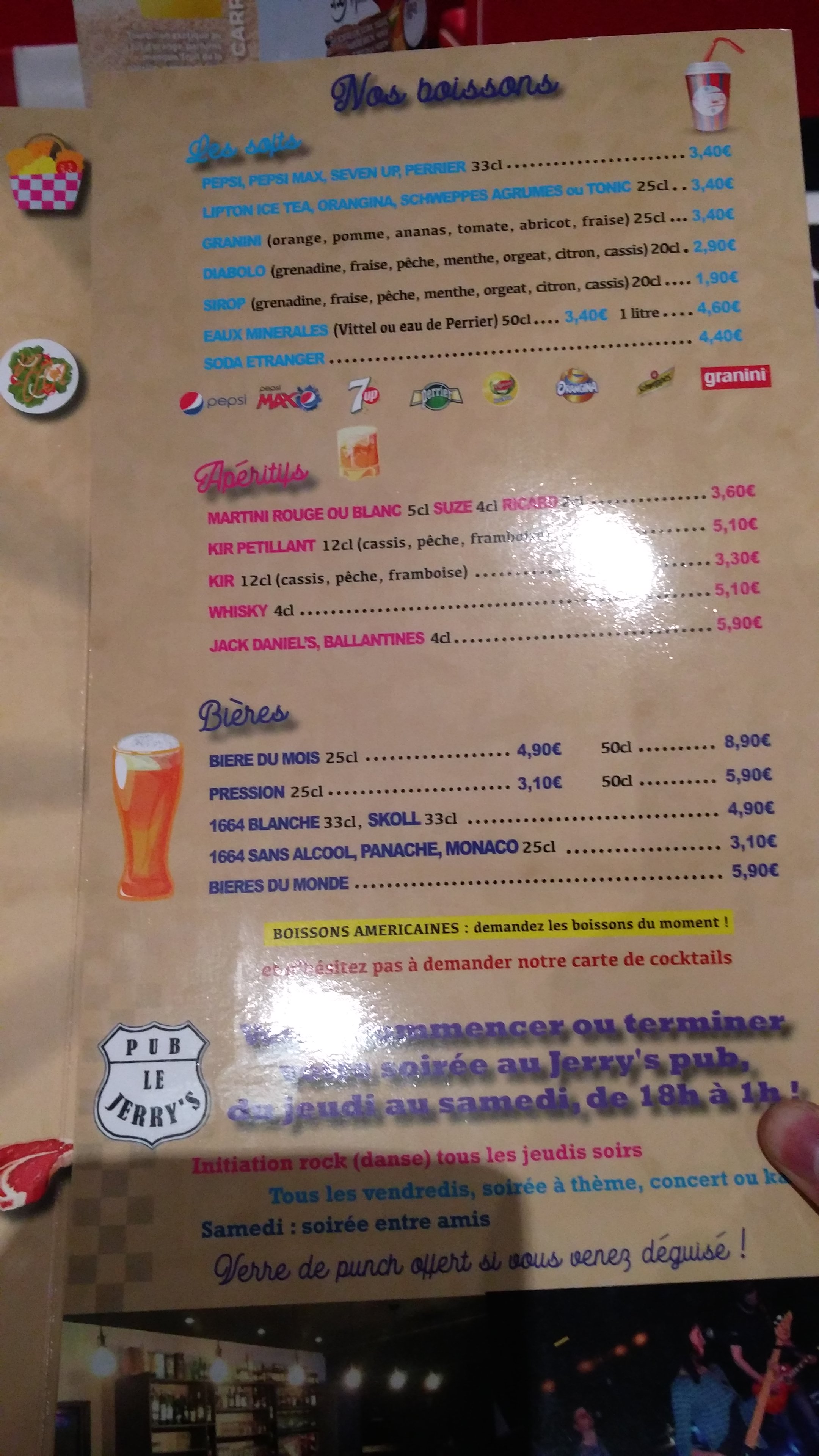 Repas excellent , le personnel et professionnel. Le Jerry's Pub et l'un des meilleurs Pub des environs avec des espaces et des jeux sympas pour passer une bonne soirée.