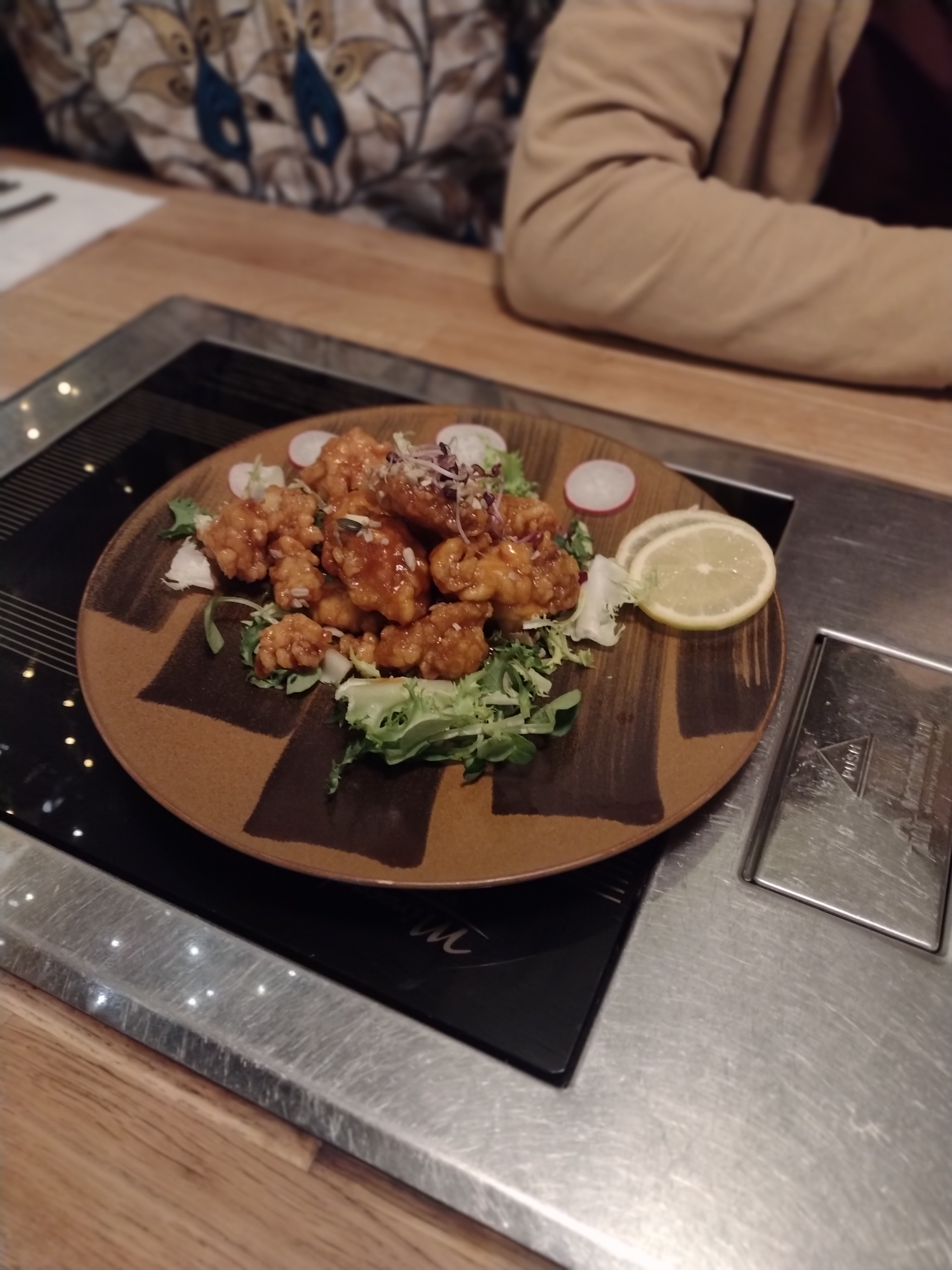 Parfait, Nous avons passé un très bon moment ! Le service est parfait, souriant, rapide, efficace 👌 Le poulet frit coréen en entrée est top, fondant, facile à manger, idem pour les raviolis au porc 👌 Le barbecue est super, la quantité de viande est très bien, il y’a beaucoup d’accompagnement, c’est très appréciable ! Je recommande, nous reviendrons 🥳