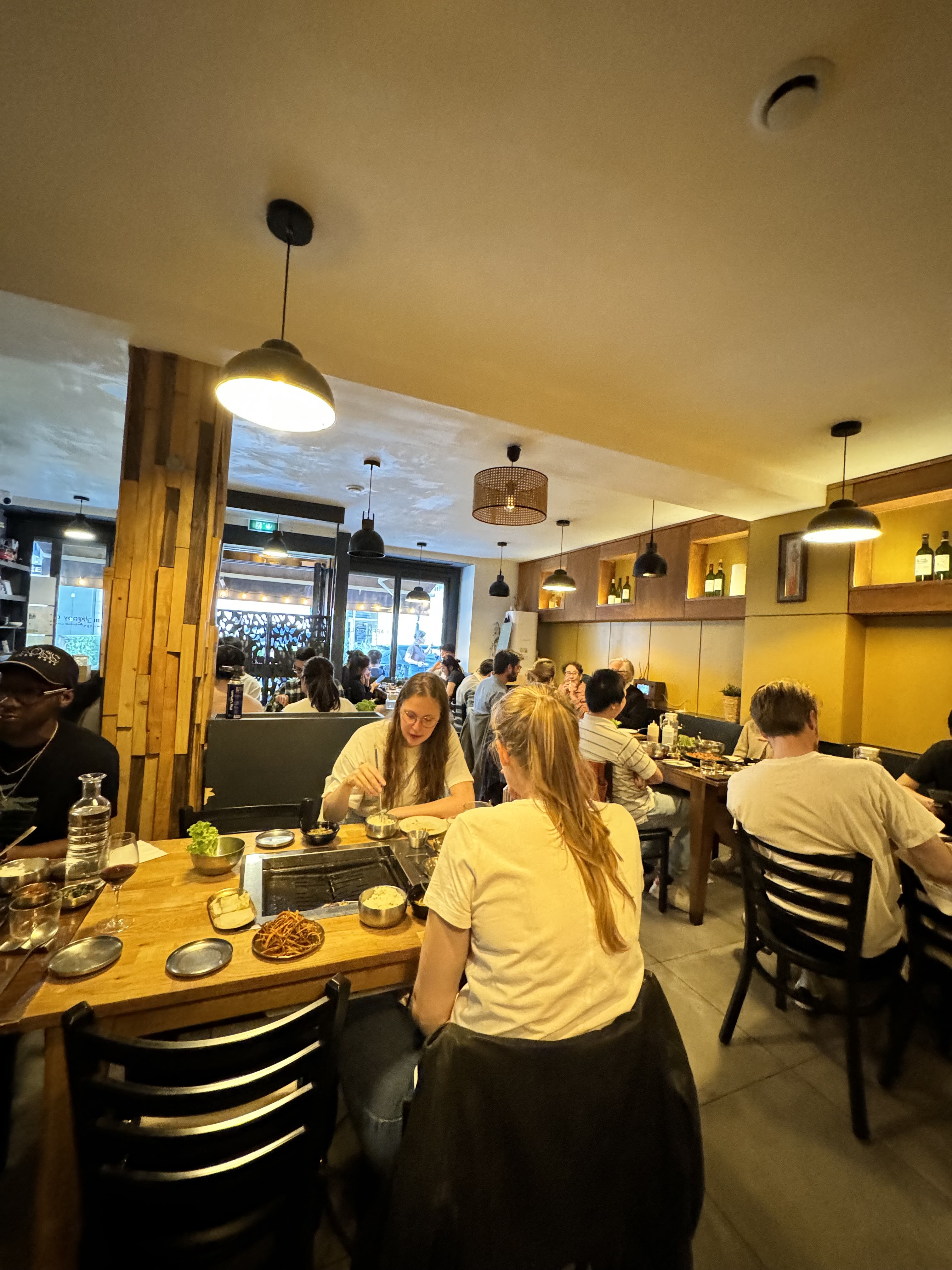 Un très beau restaurant , très bonne ambiance chaleureuse . C’est le meilleur Barbecue Coréen que j’ai pu manger sur Paris ! C’est à l’identique qu’en Corée et même meilleur . Les portions sont généreuses les accompagnements sont variés . Gros coup de cœur pour la boisson à la cannelle qui était incroyable. Le poulet en entrée était vraiment étonnant ! Merci pour tout à bientôt ! Les prix sont un peu élevés 79€ pour tout ce qu’on a pris soit 2 viandes bbq 1 bière 1 boisson et une entrée poulet et 1 dessert mais ça vaut le coup !